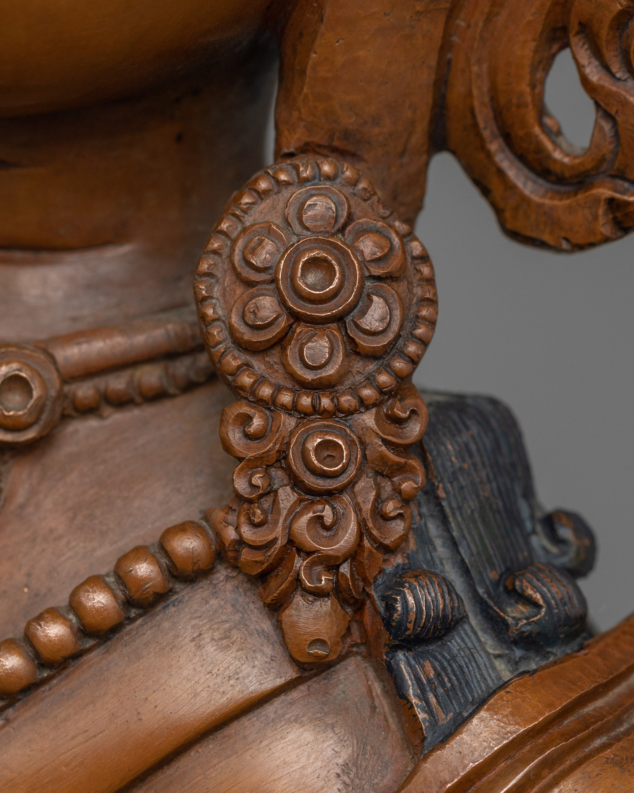 Vajrayogini is stunning. The details are amazing. It's easy to make out her facial expressions, skulls, feet, and the ring of fire around her. You can tell she's handmade. There is a consecration hole in her back.