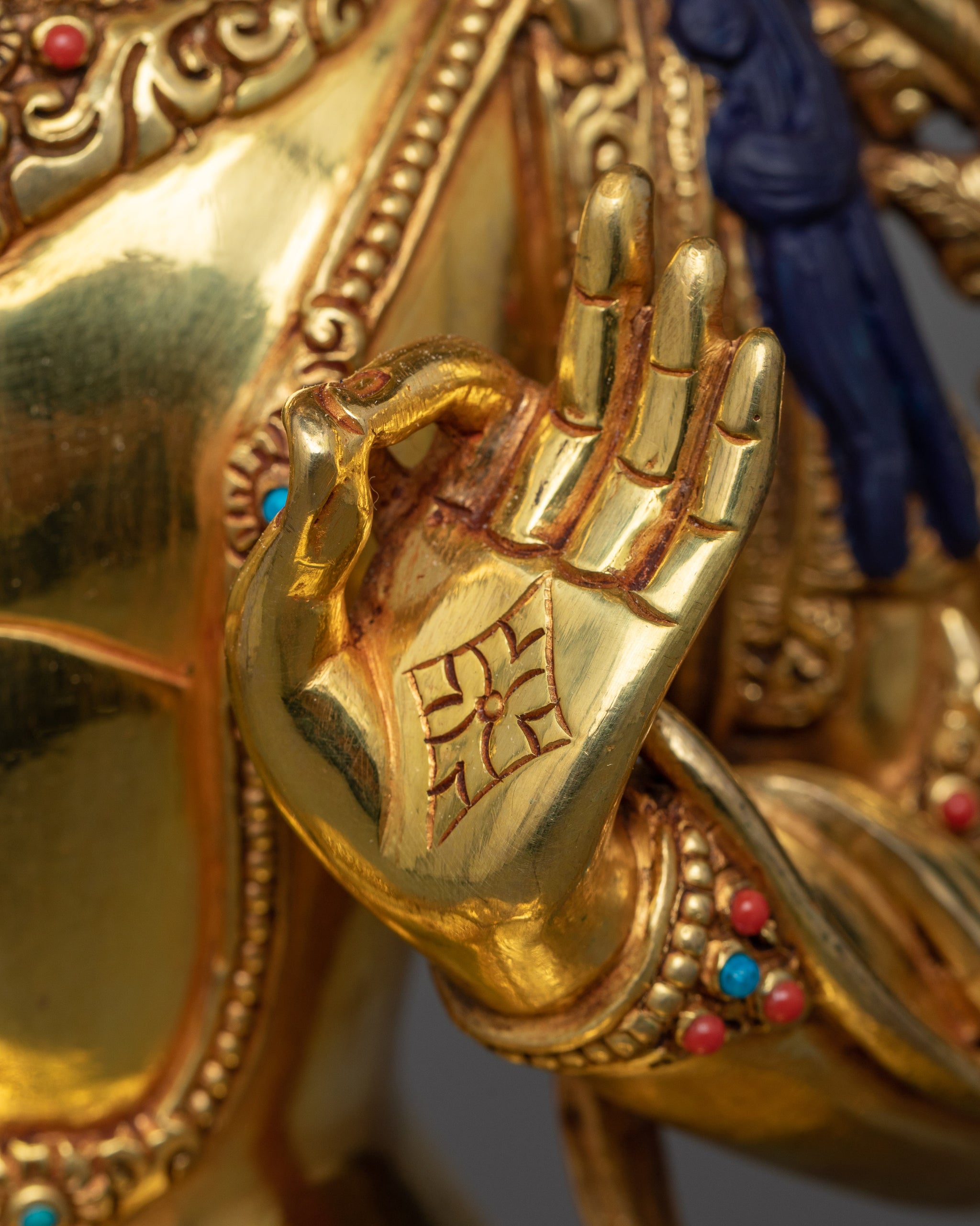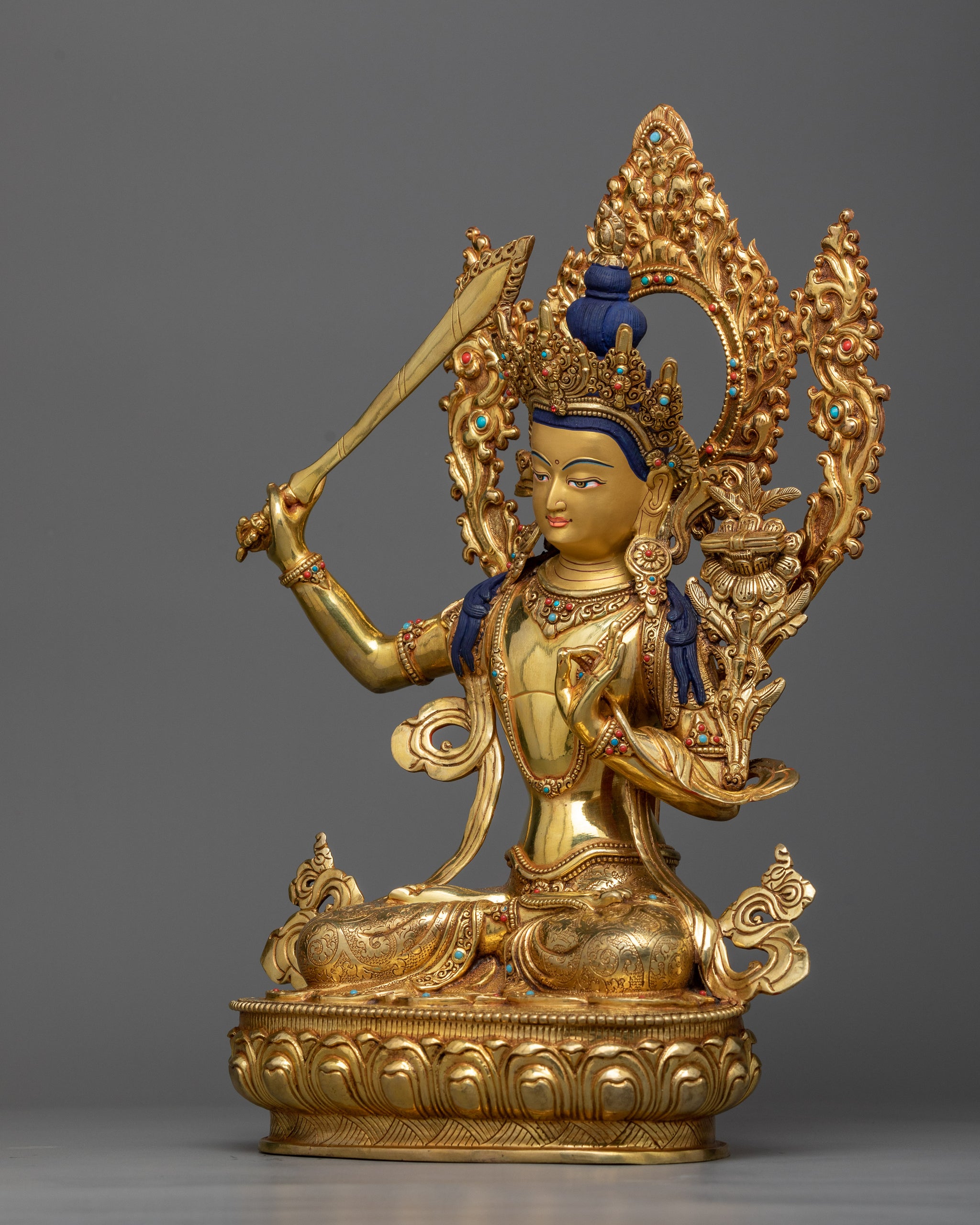 Buddha of Wisdom Manjushri Statue | Gleaming 24K Gold Gilded