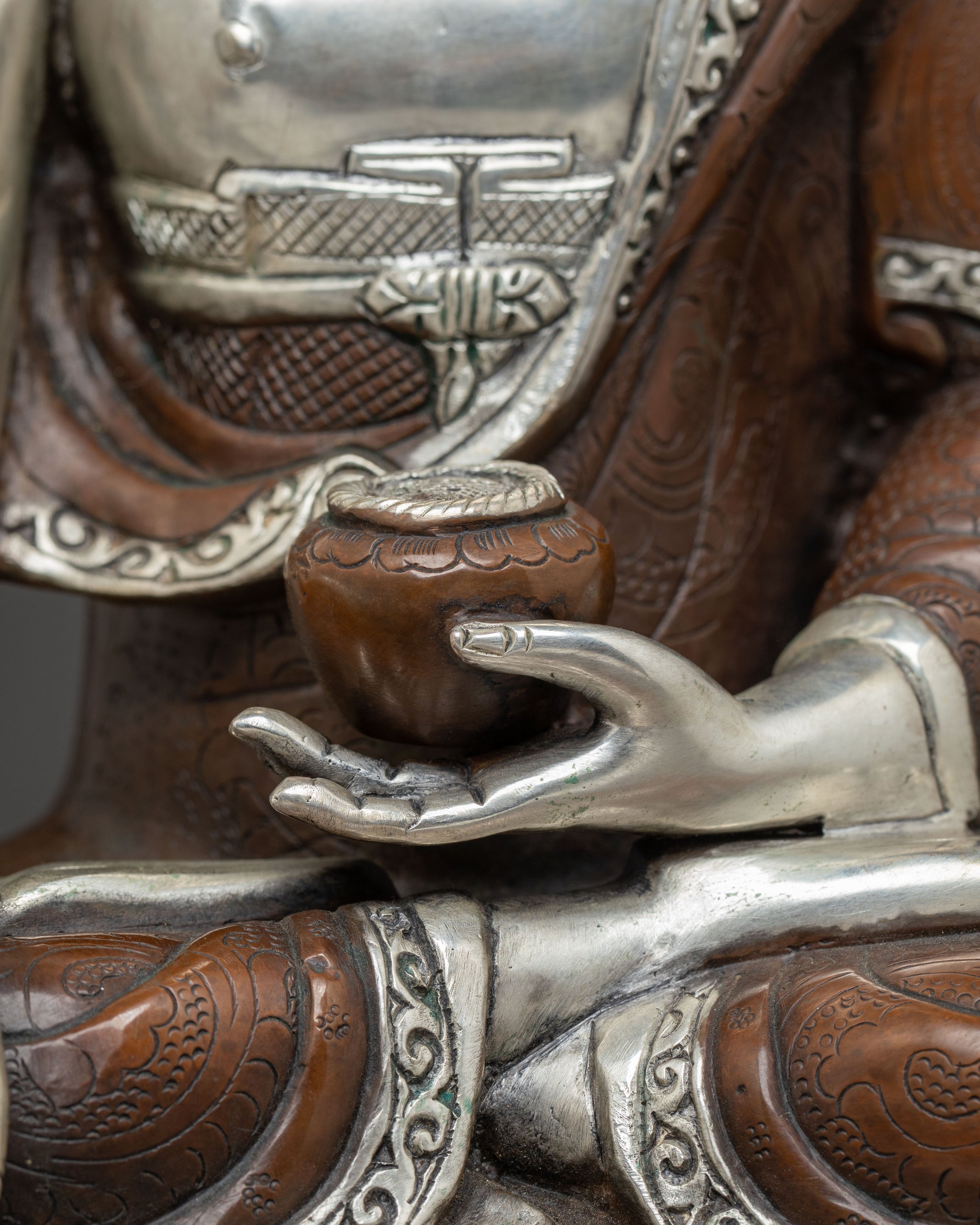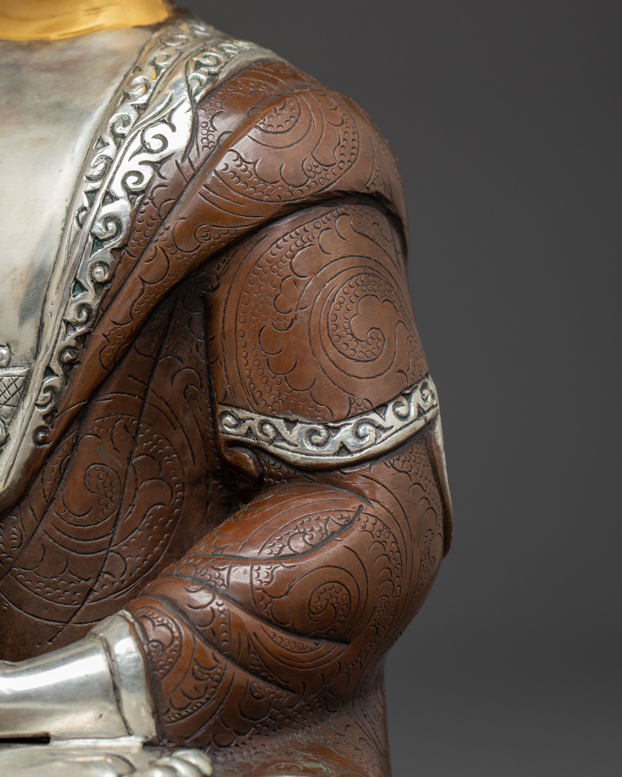 Serene Buddha Shakyamuni Oxidized Copper Statue | Traditional Artwork