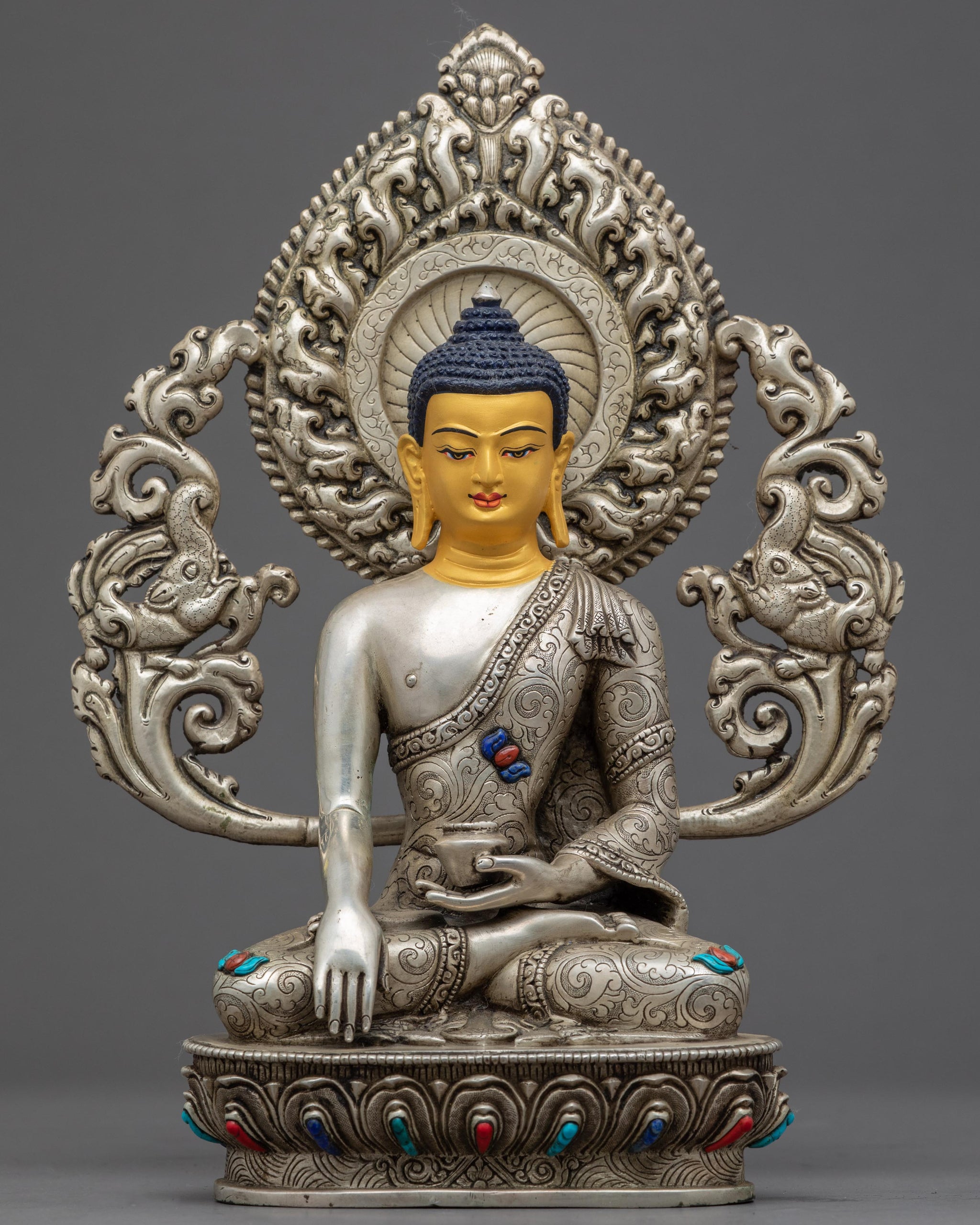 The Buddha Siddhartha Gautama Statue was traditionally hand-carved in our studio using Himalayan art. In the statue, we have gilded the face of the deity with genuine 24K gold. The statue's body has been meticulously hand-carved from pure copper. The brilliantly created halo illuminates his face, and the exquisitely woven robes engulf his presence. We have silver-plated the deity except for the face. The craving for intricate design patterns took us months and months of hard work to complete. Your yoga or meditation practices will be much improved by the presence of a deity who is perched on a moon disc lotus and has a calm countenance. The statue may be significantly used in various fortunate Buddhist rites and celebrations. We can tell you that this statue was made using high-quality materials that will last very long.