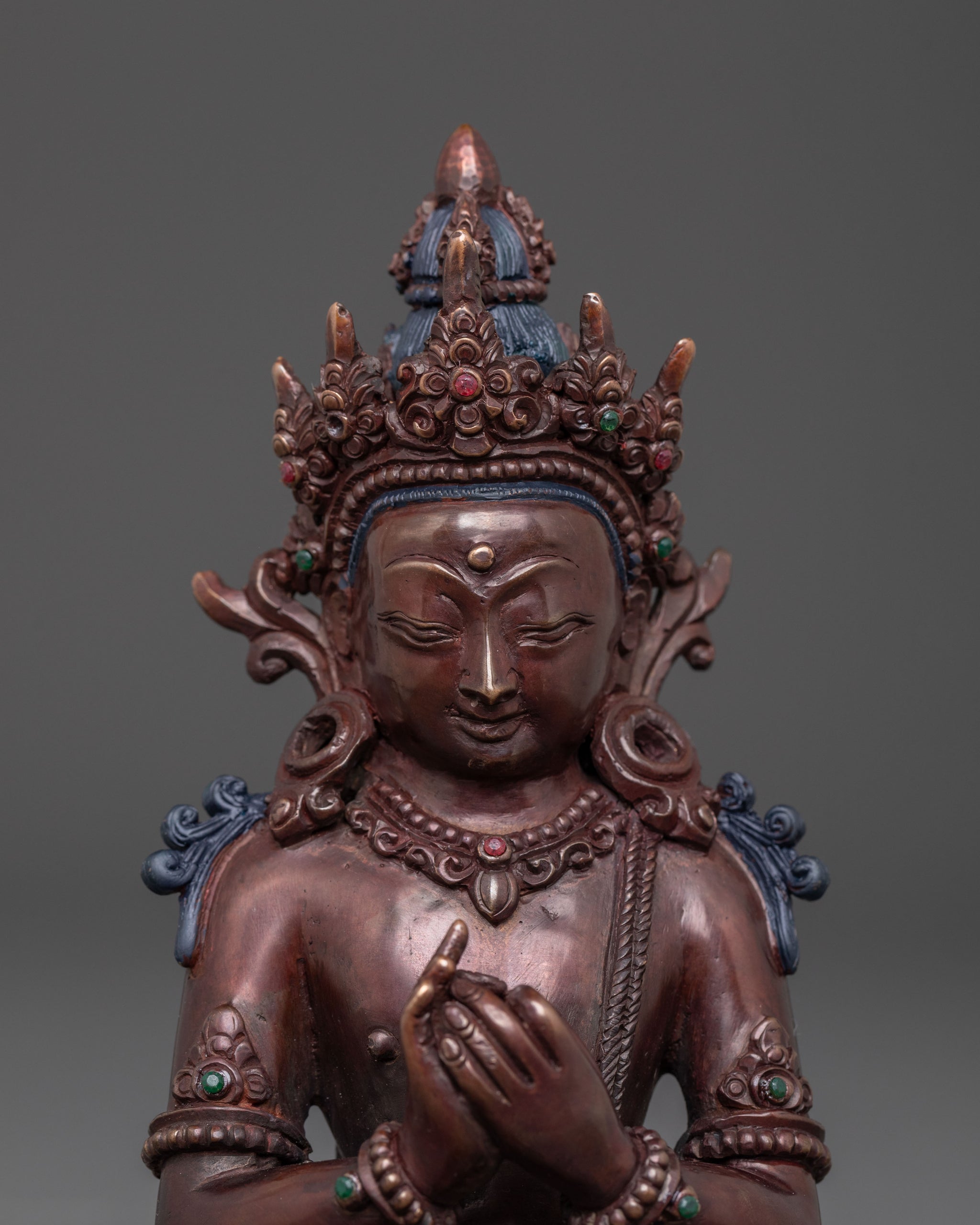 A tranquil Buddha Vairocana Copper Statue | Oxidized Finish