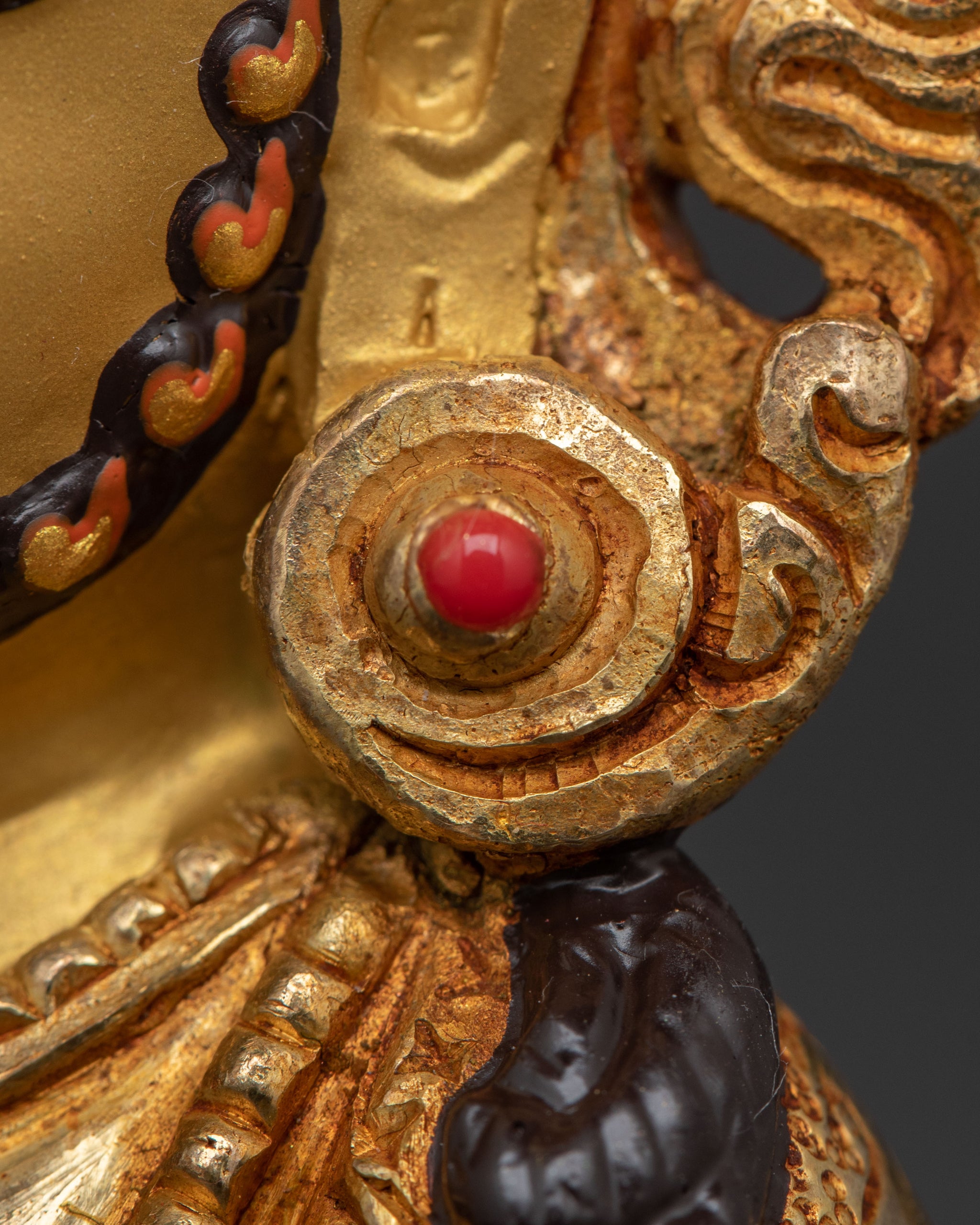 Vajrayogini is stunning. The details are amazing. It's easy to make out her facial expressions, skulls, feet, and the ring of fire around her. You can tell she's handmade. There is a consecration hole in her back.