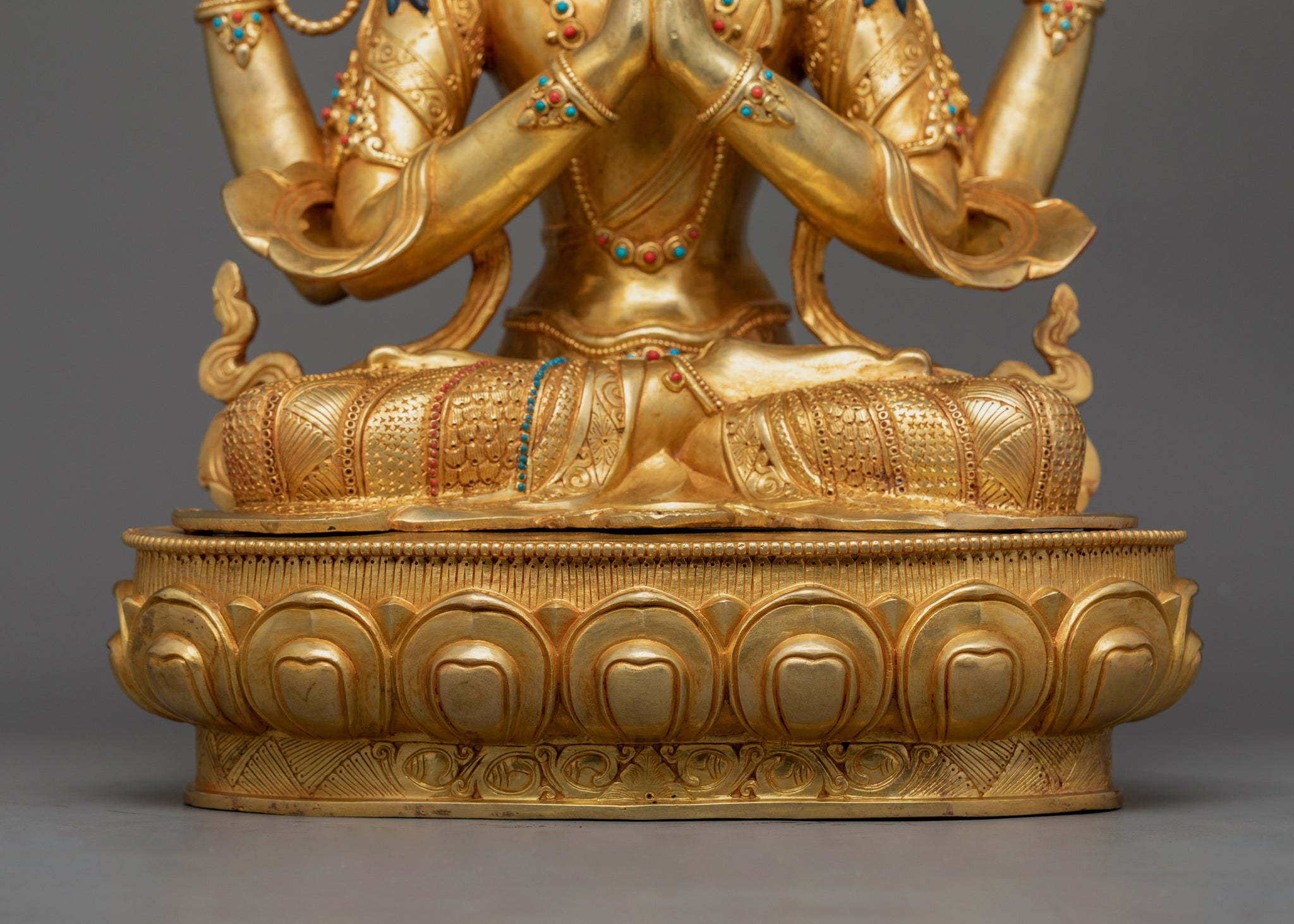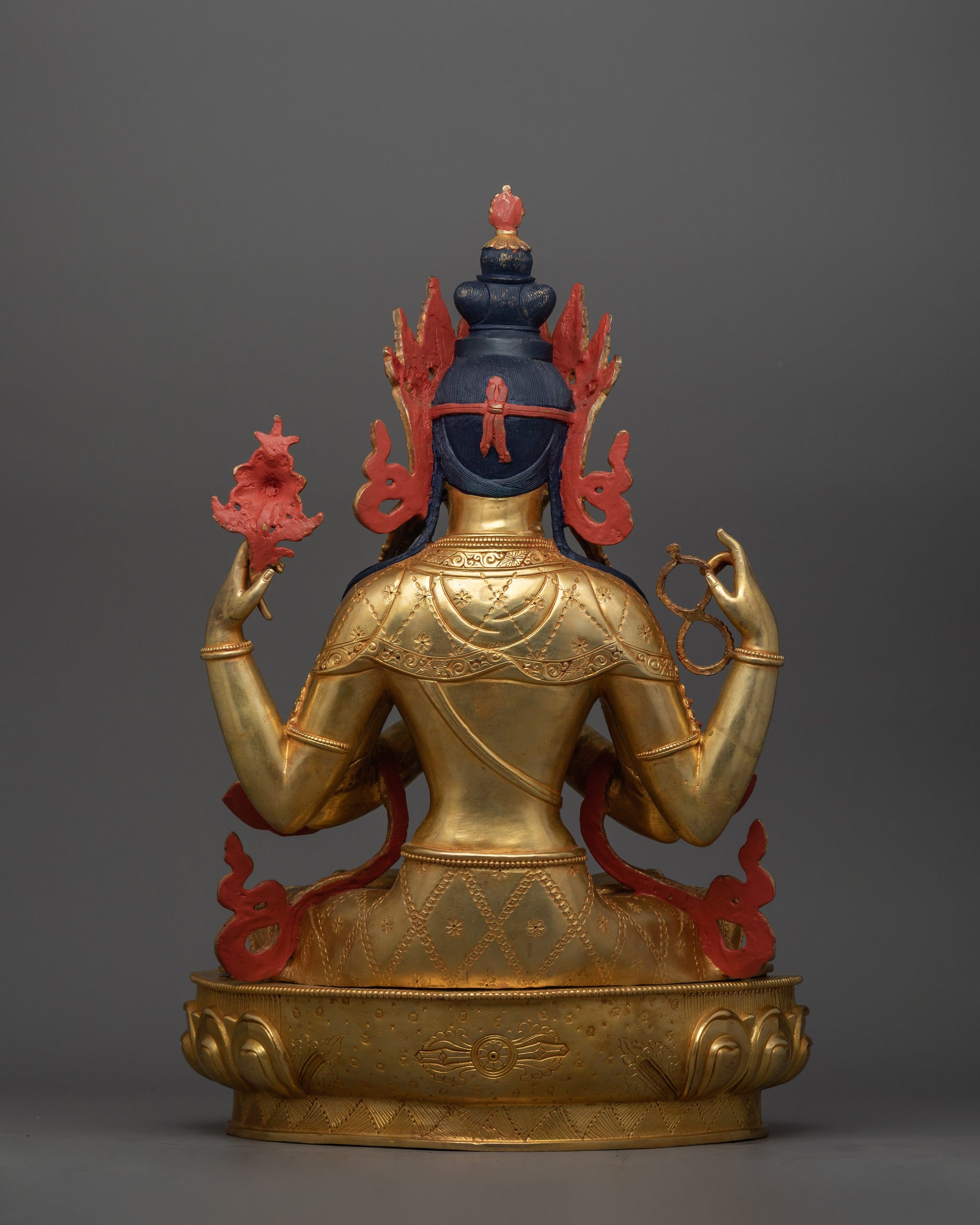 Tibetan four-Armed Buddhist Chenrezig Statue | Bodhisattva Deity of Compassion