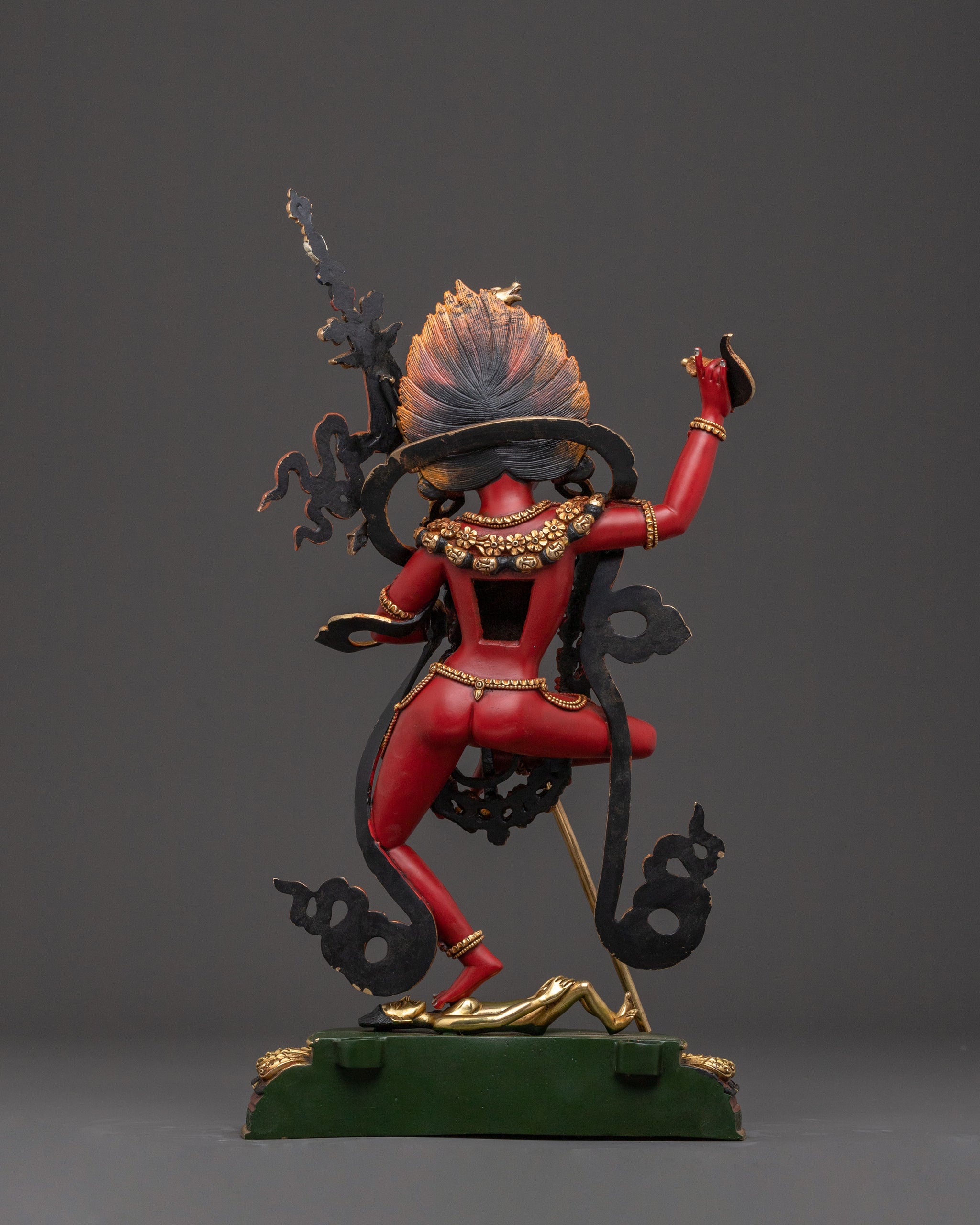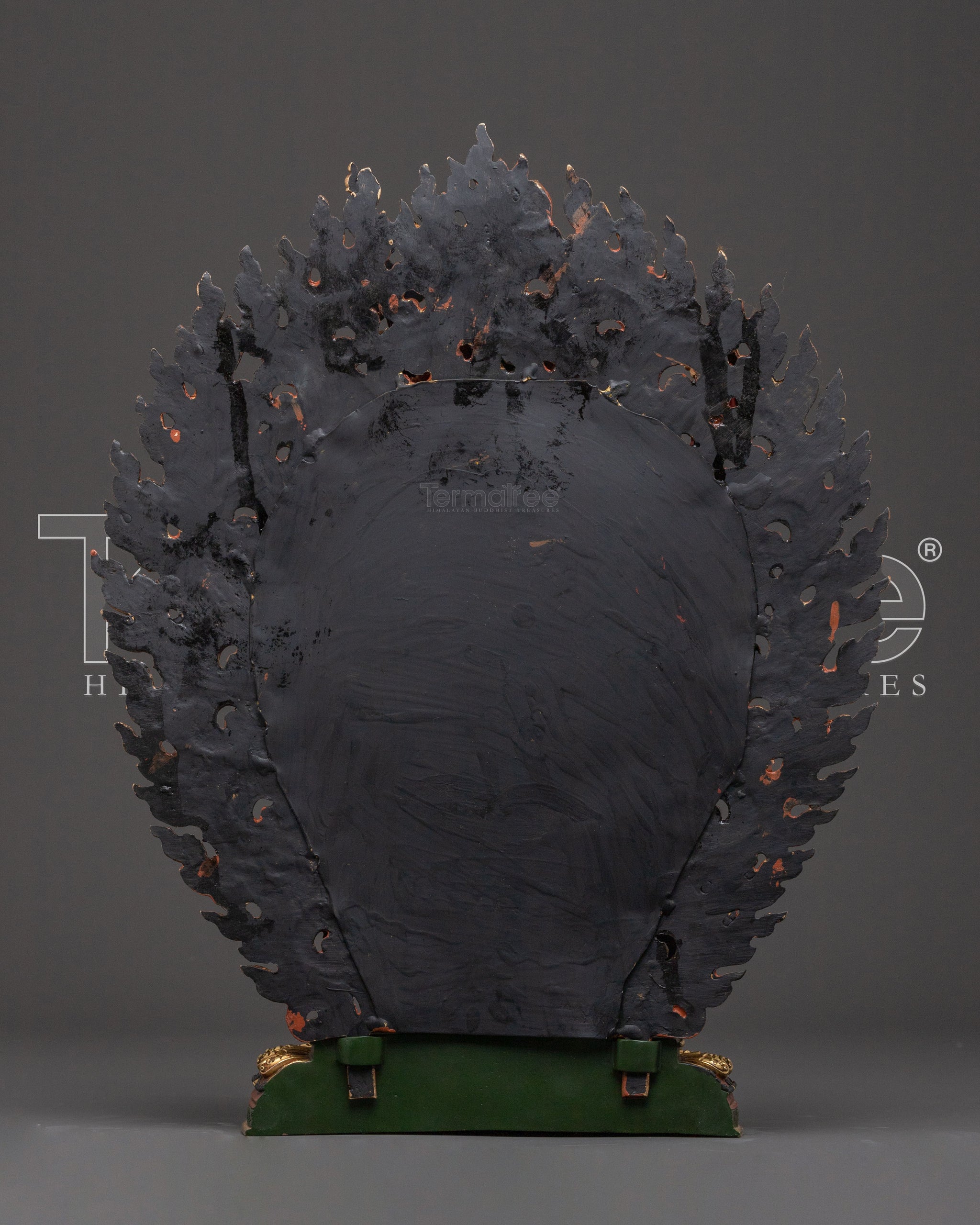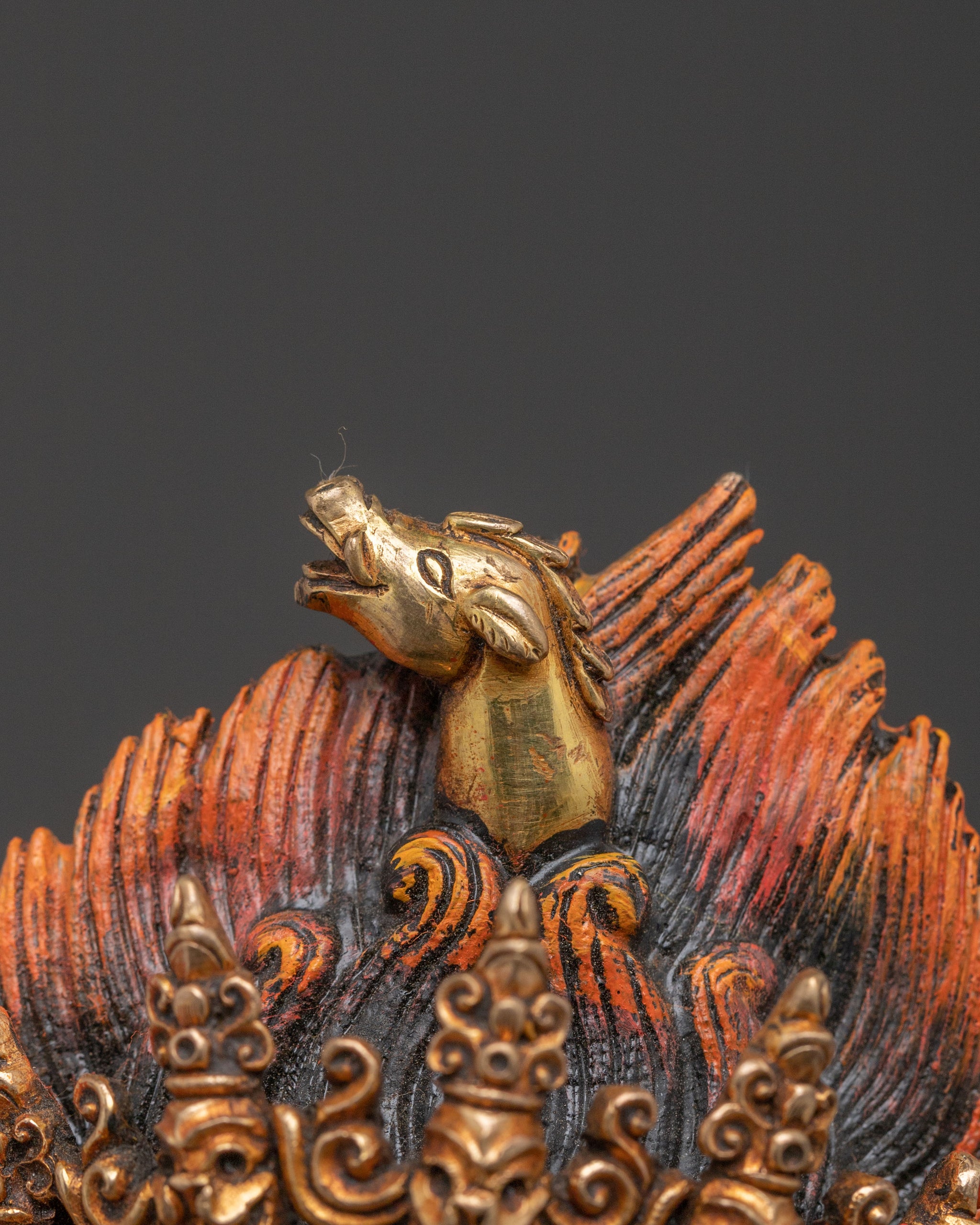 Emerging from Nepal's sacred artisanal traditions, this exquisite Buddhist deity, the Dorje Phagmo statue, embodies the vibrant spirit of the dakini. Standing at 40 cm, her powerful form is meticulously crafted from solid copper and covered with a triple layer of 24K gold gilding, radiating a divine glow. Adorned with vibrant acrylic paintings and detailed gemstone inlays, the statue exudes a deep spiritual presence. The intricate carvings, producing a magnificent 3D-like effect, enhance the statue's symbolic power. This rare depiction serves as a focal point for advanced practitioners and discerning collectors of Buddhist art, inviting profound reflection and devotion.