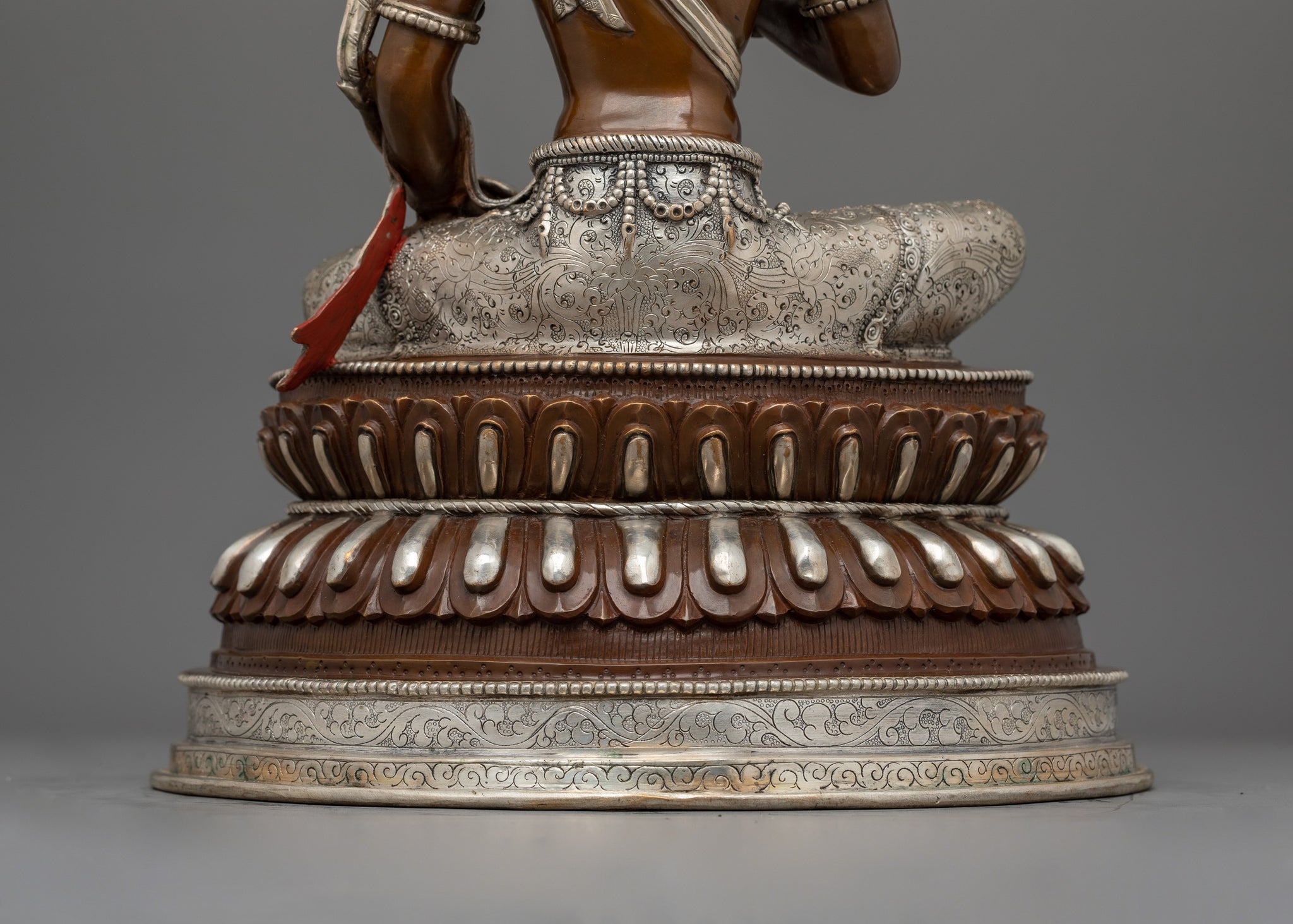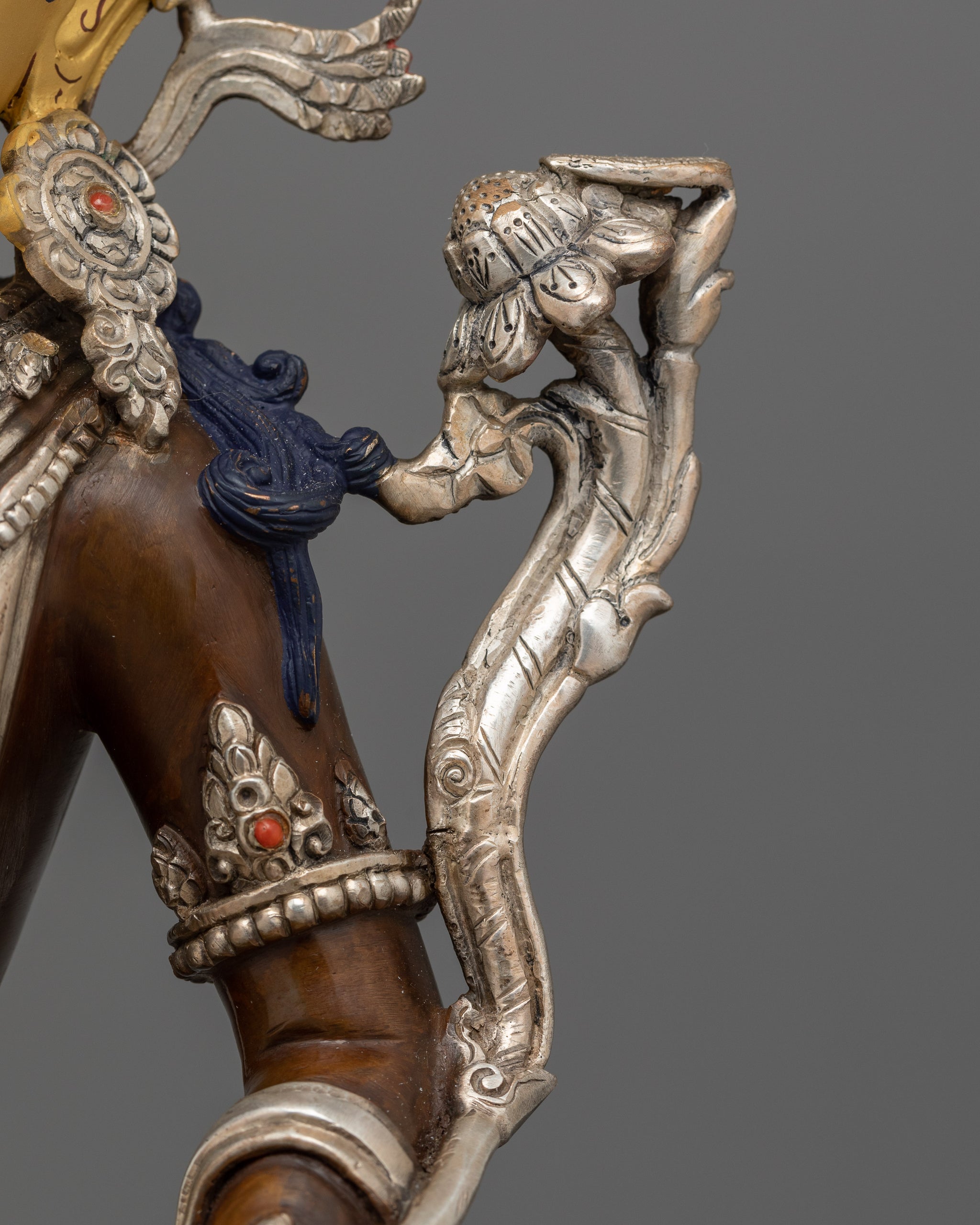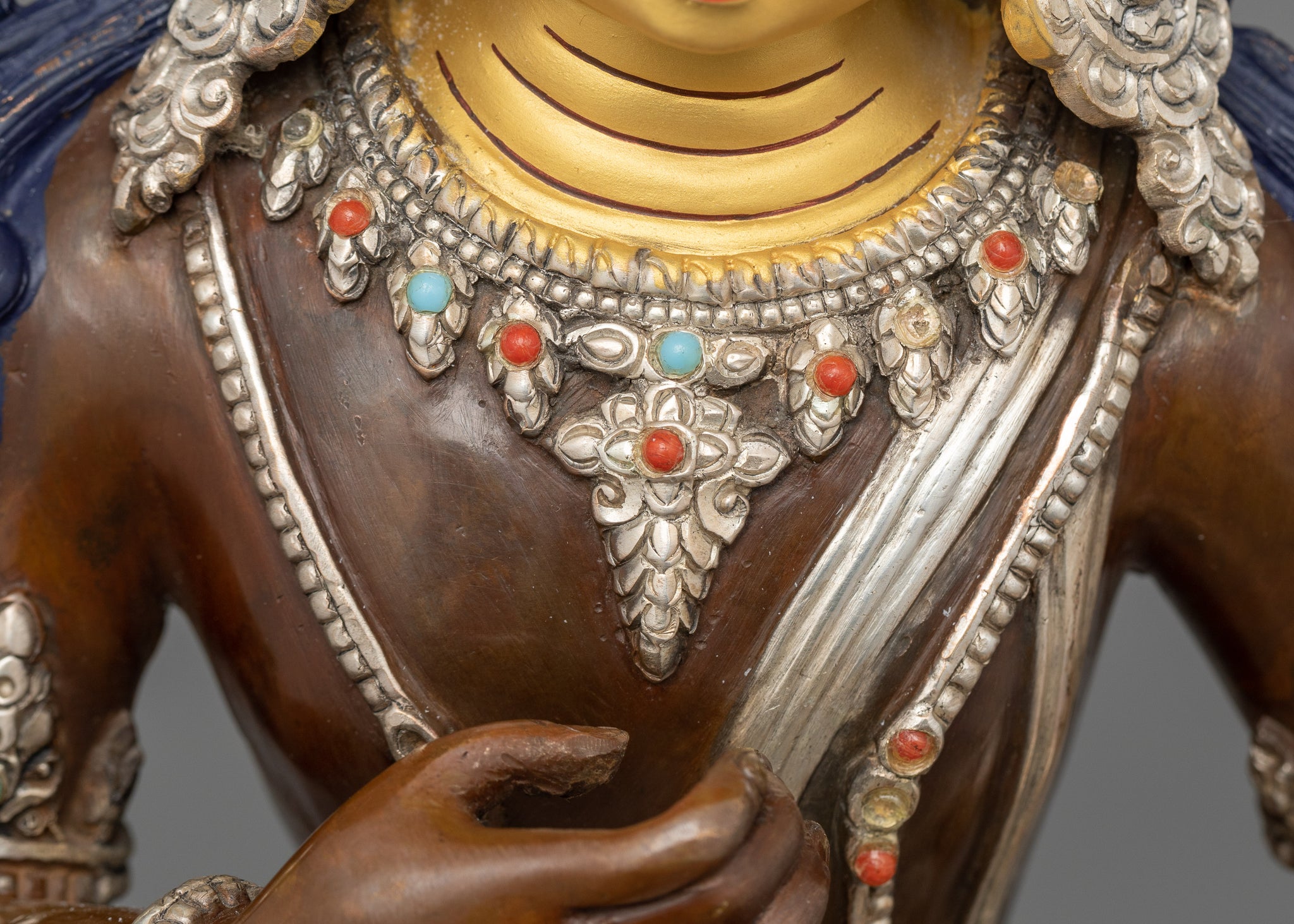 Vajrayogini is stunning. The details are amazing. It's easy to make out her facial expressions, skulls, feet, and the ring of fire around her. You can tell she's handmade. There is a consecration hole in her back.