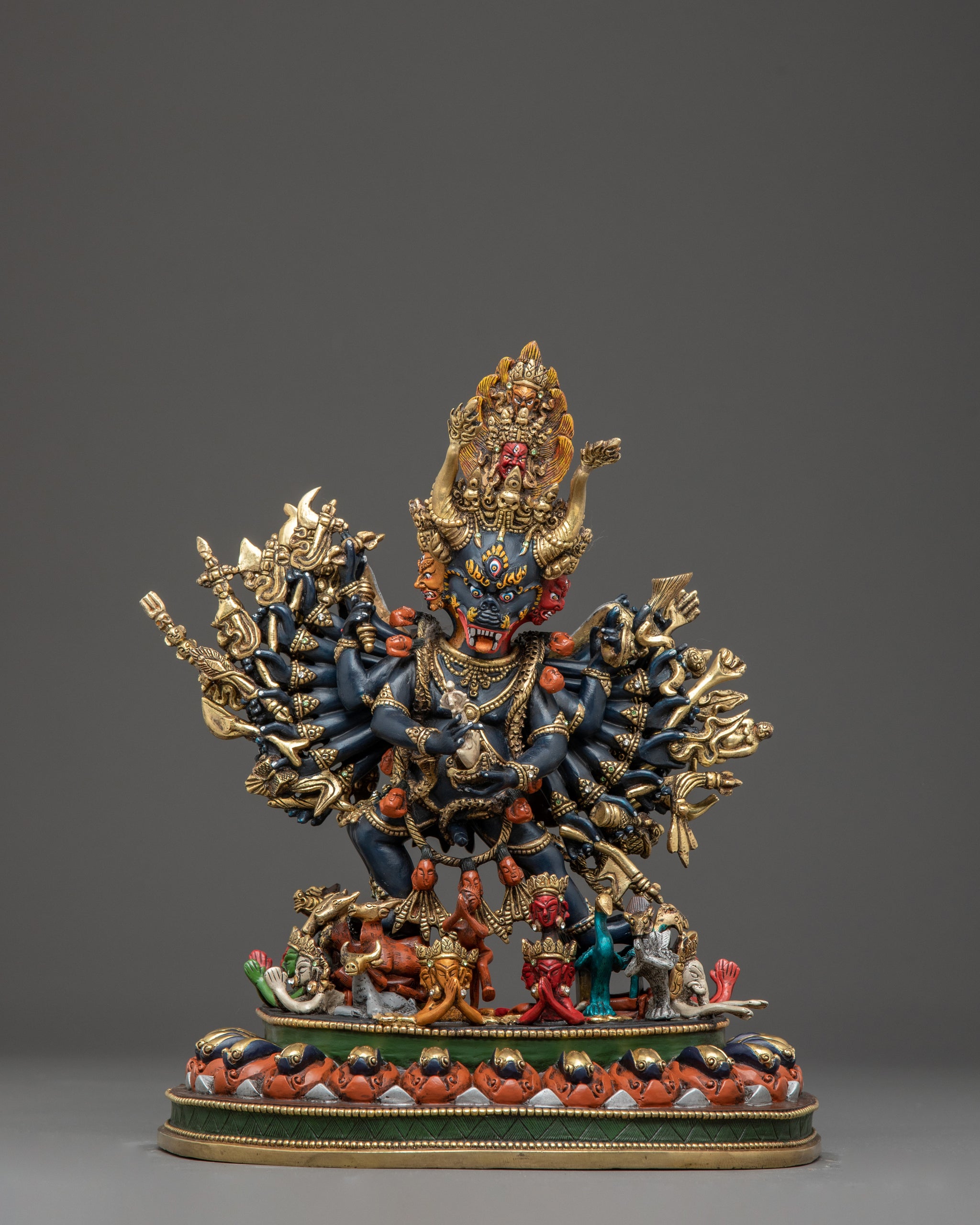 Buddhist Yamantaka Statue: Conqueror of Death | Gold Gilded Wrathful Deity