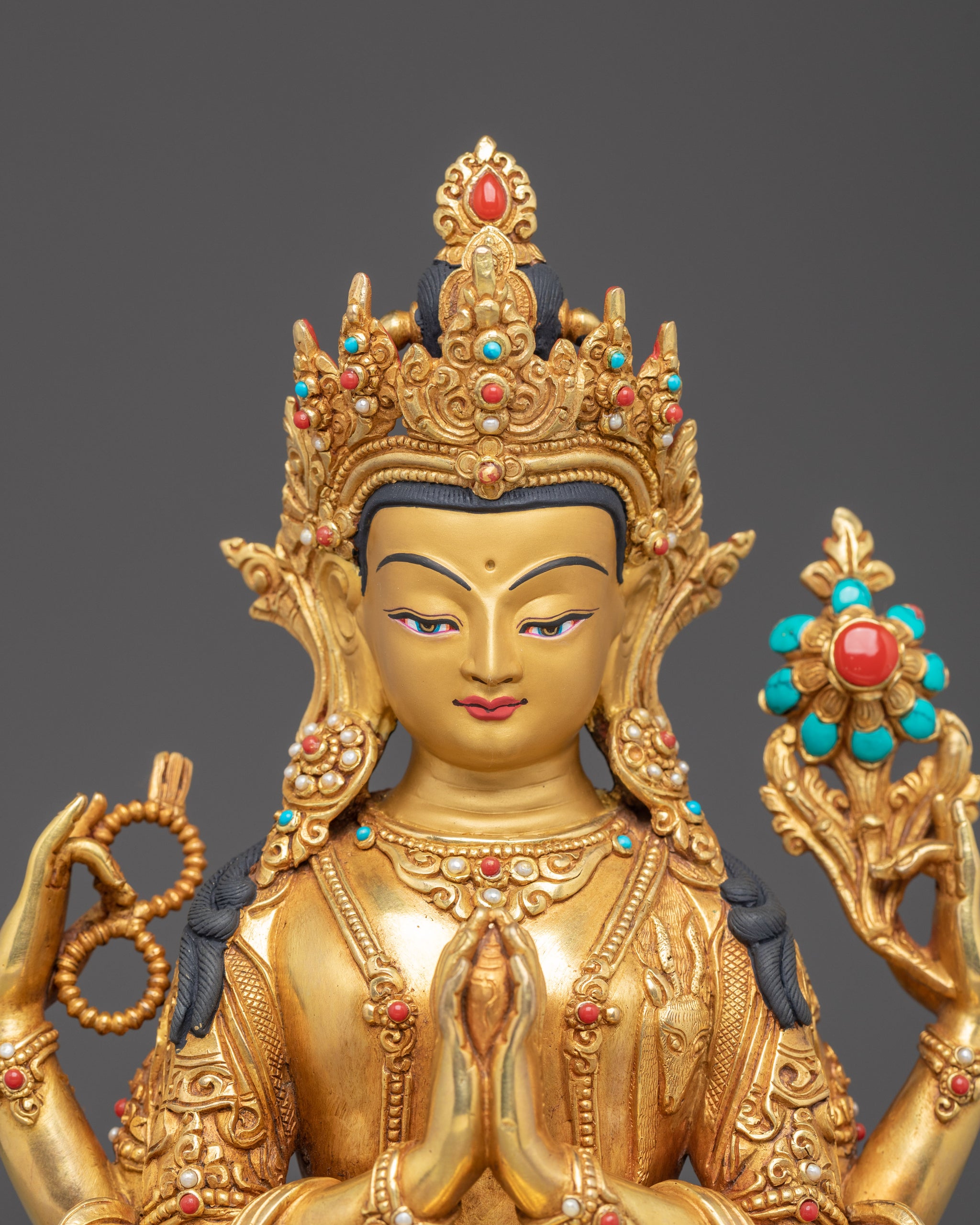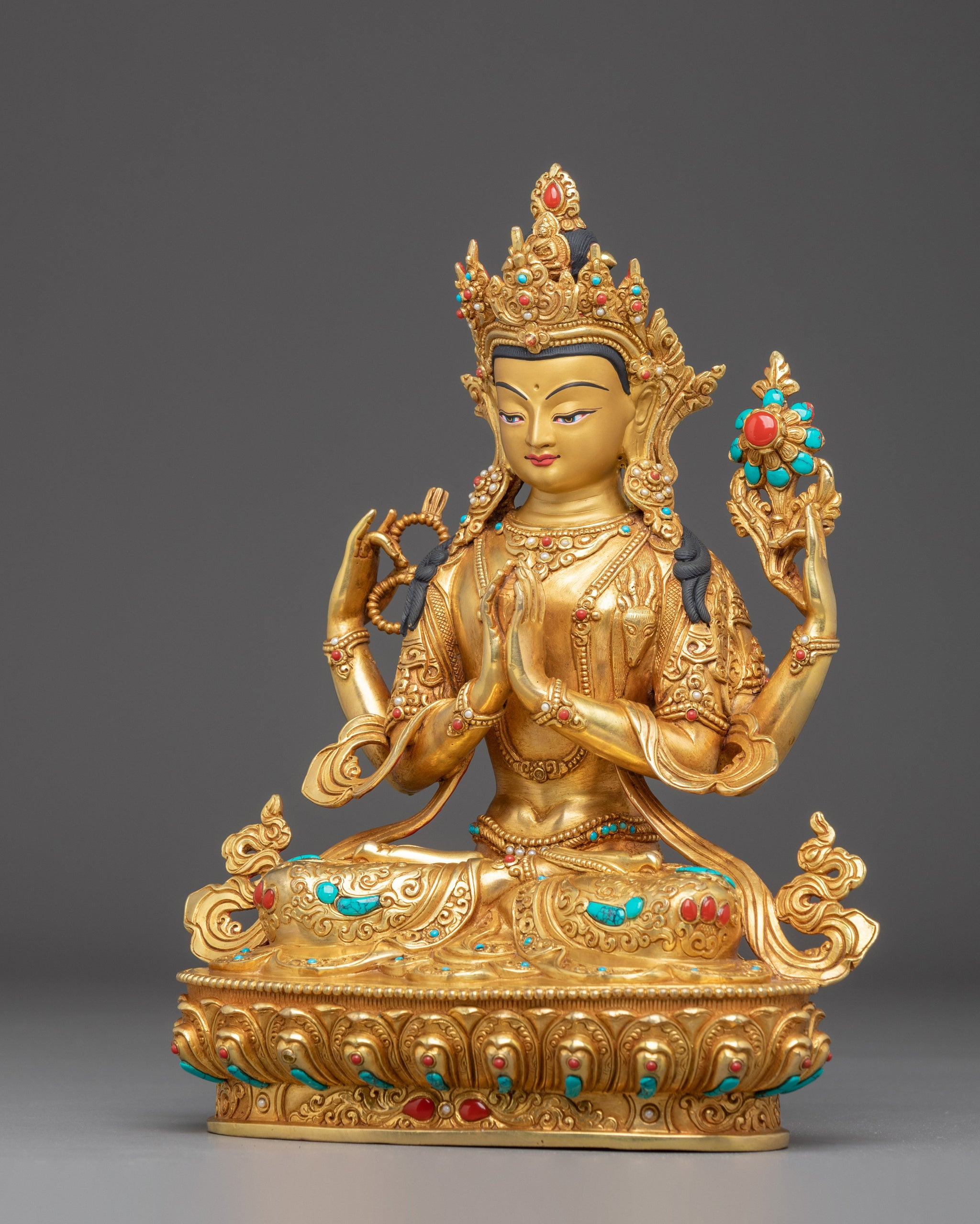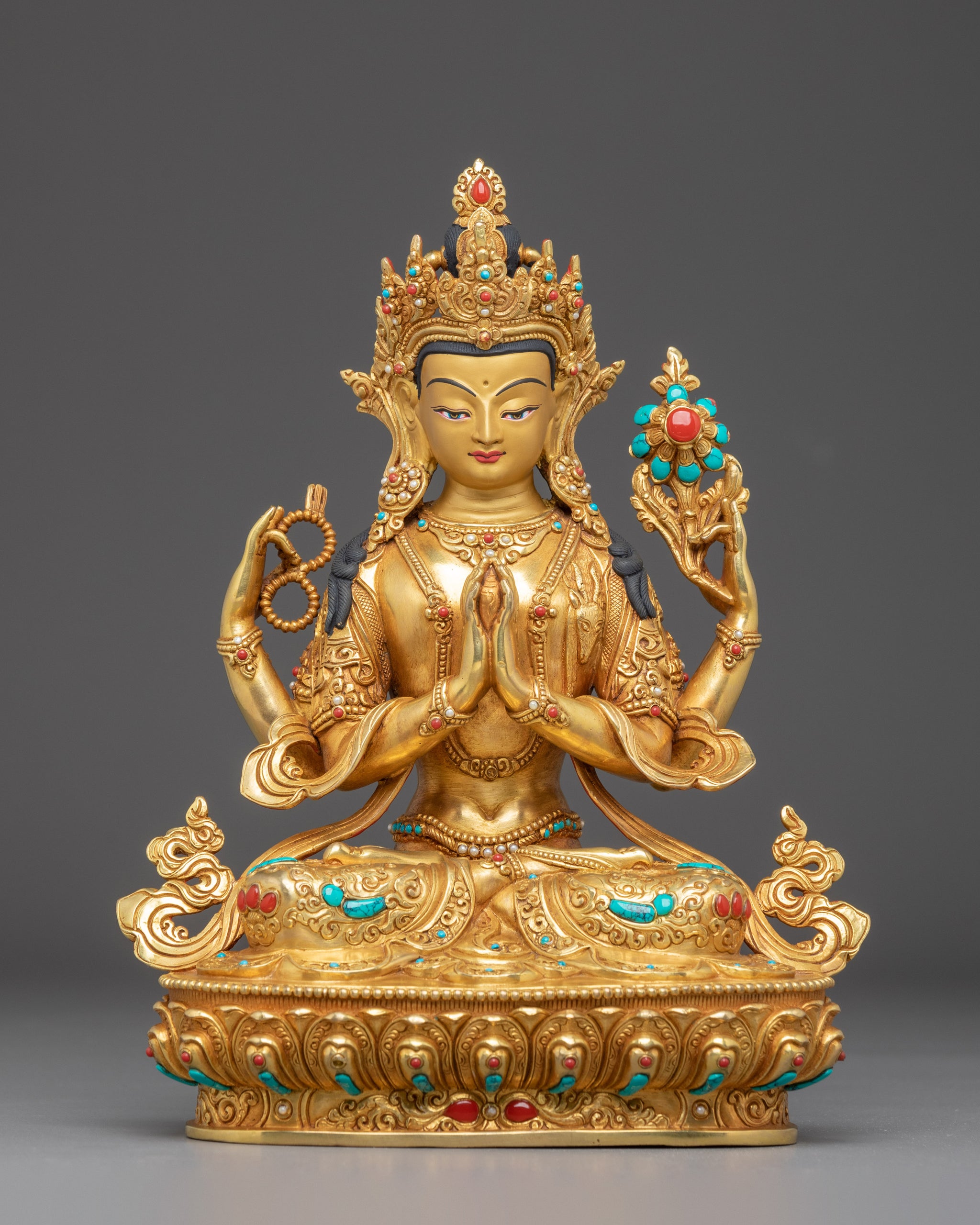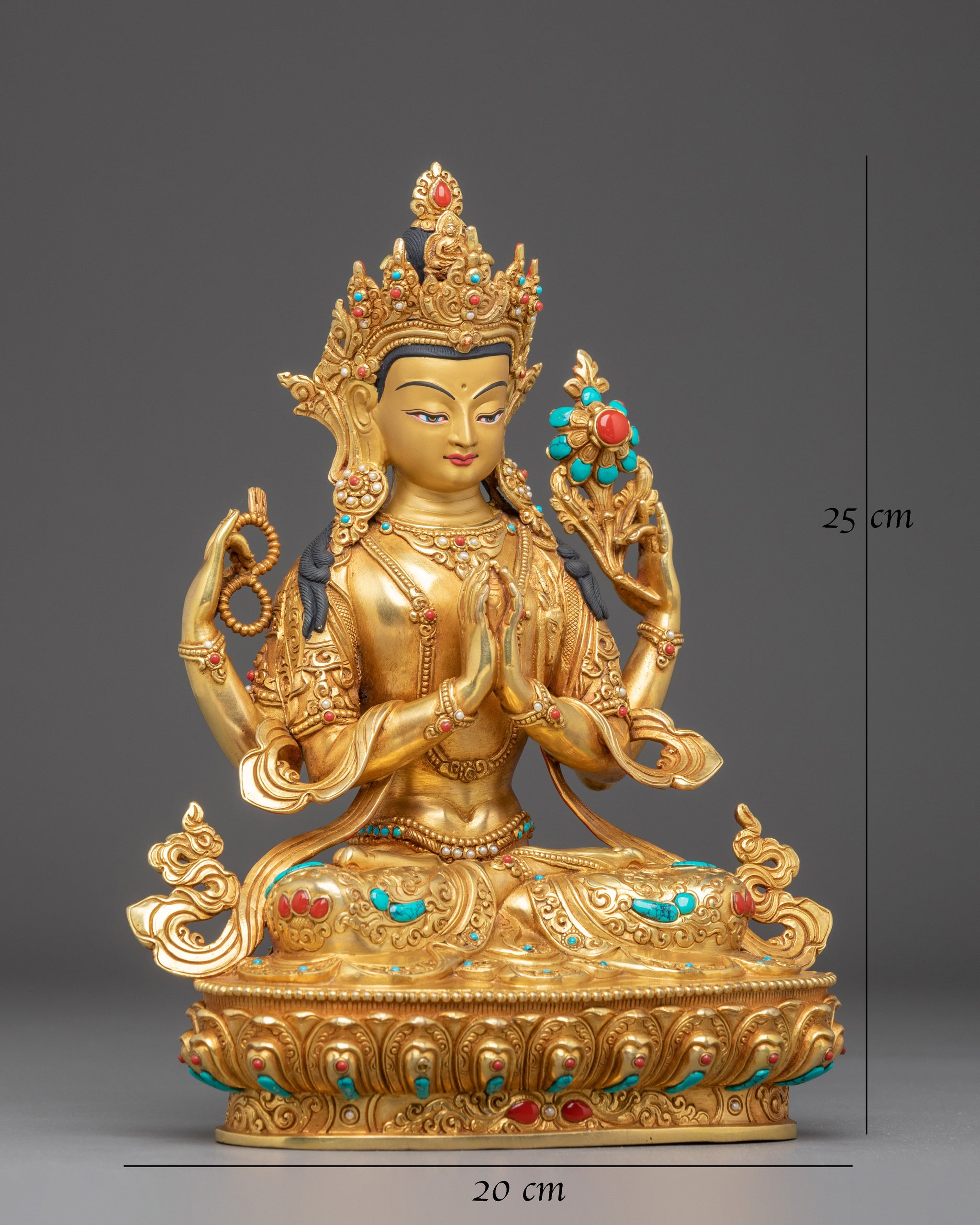 Material: 24K Gold Gilded, Gold & Acrylic Paintings, Copper Body, Gemstones