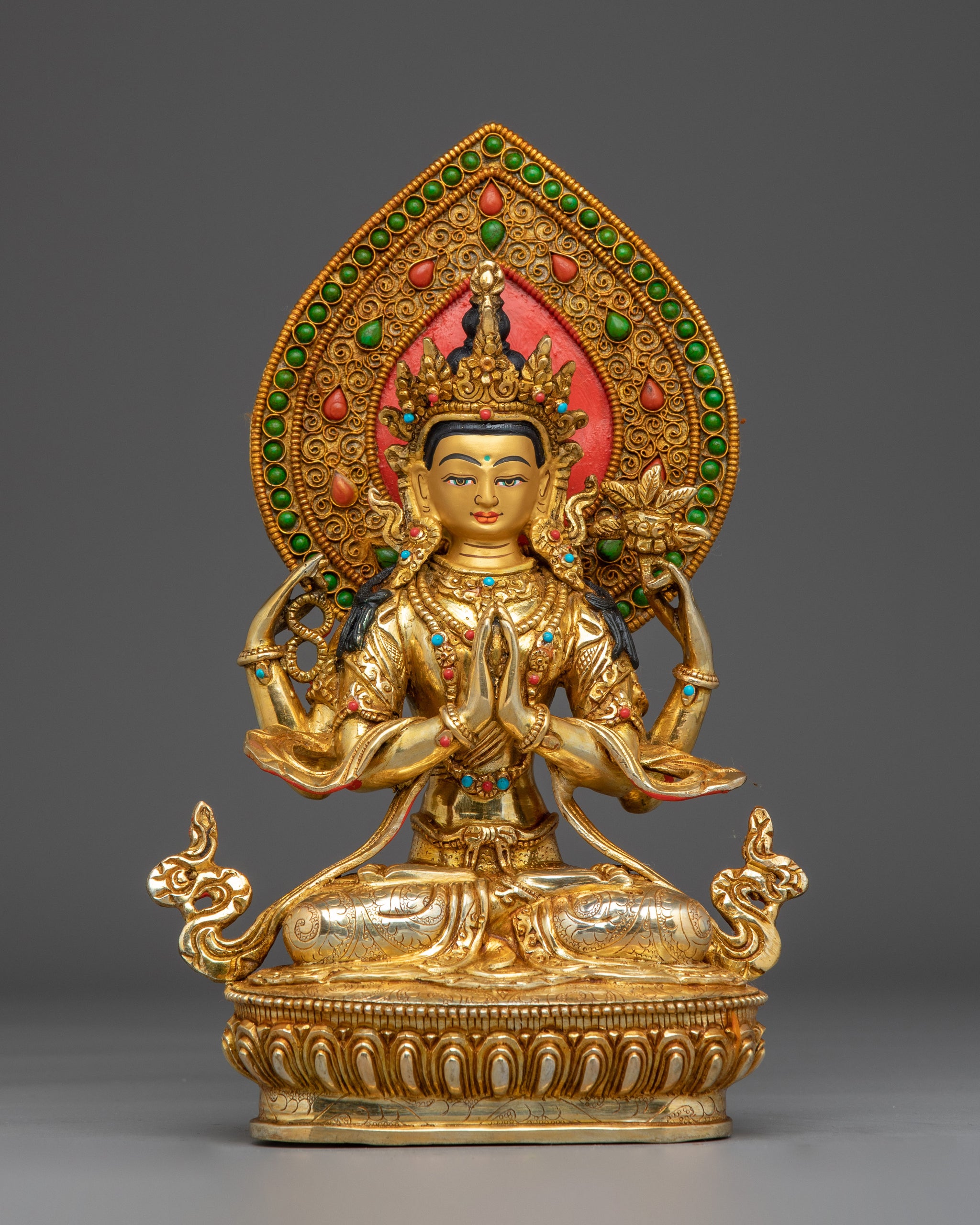 Chenrezig 24K Gold Gilded with Gemstones Statue | Meditation & Spiritual Decor