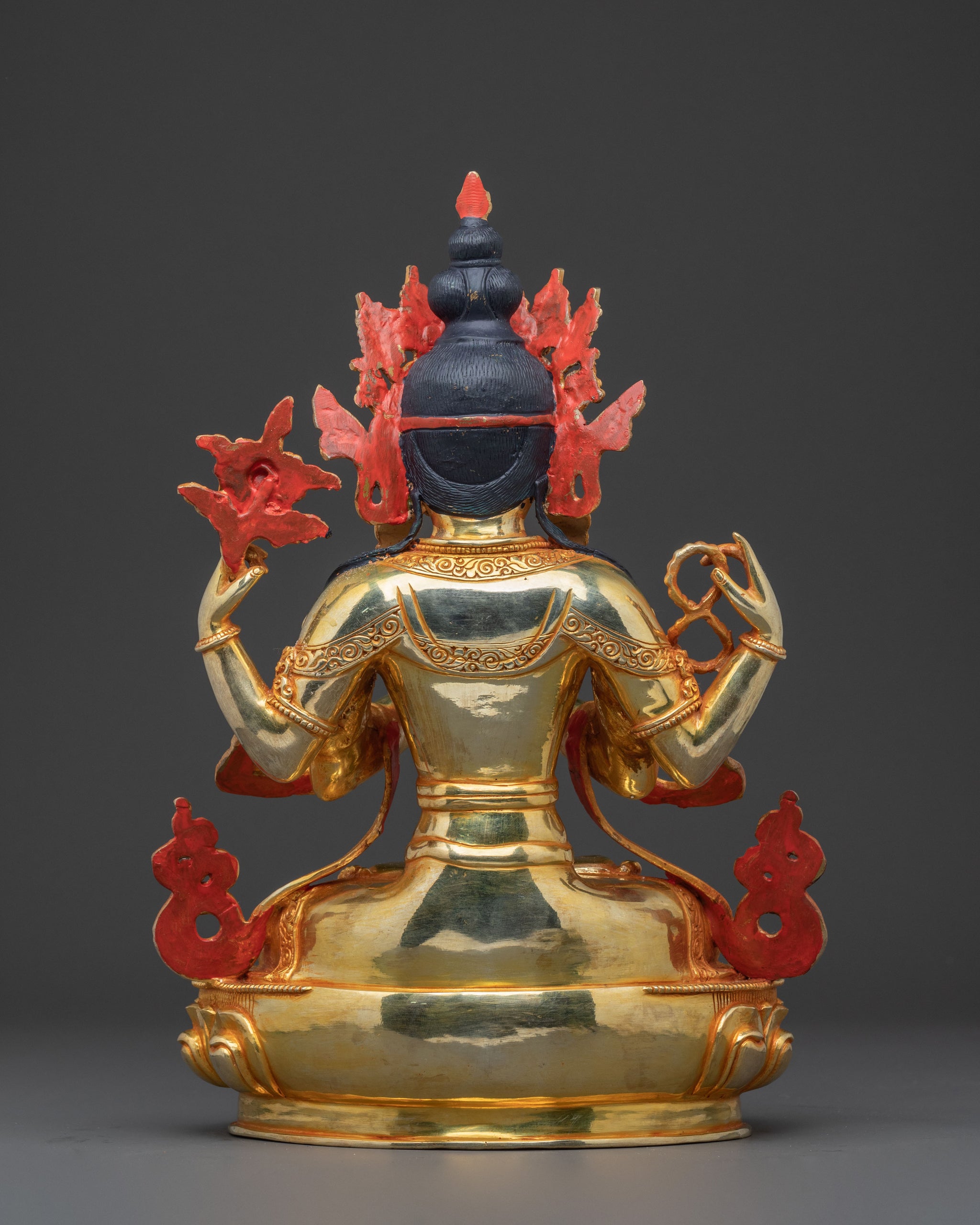Chenrezig Buddha Statue - 24K Gold Gilded Copper Avalokiteshvara