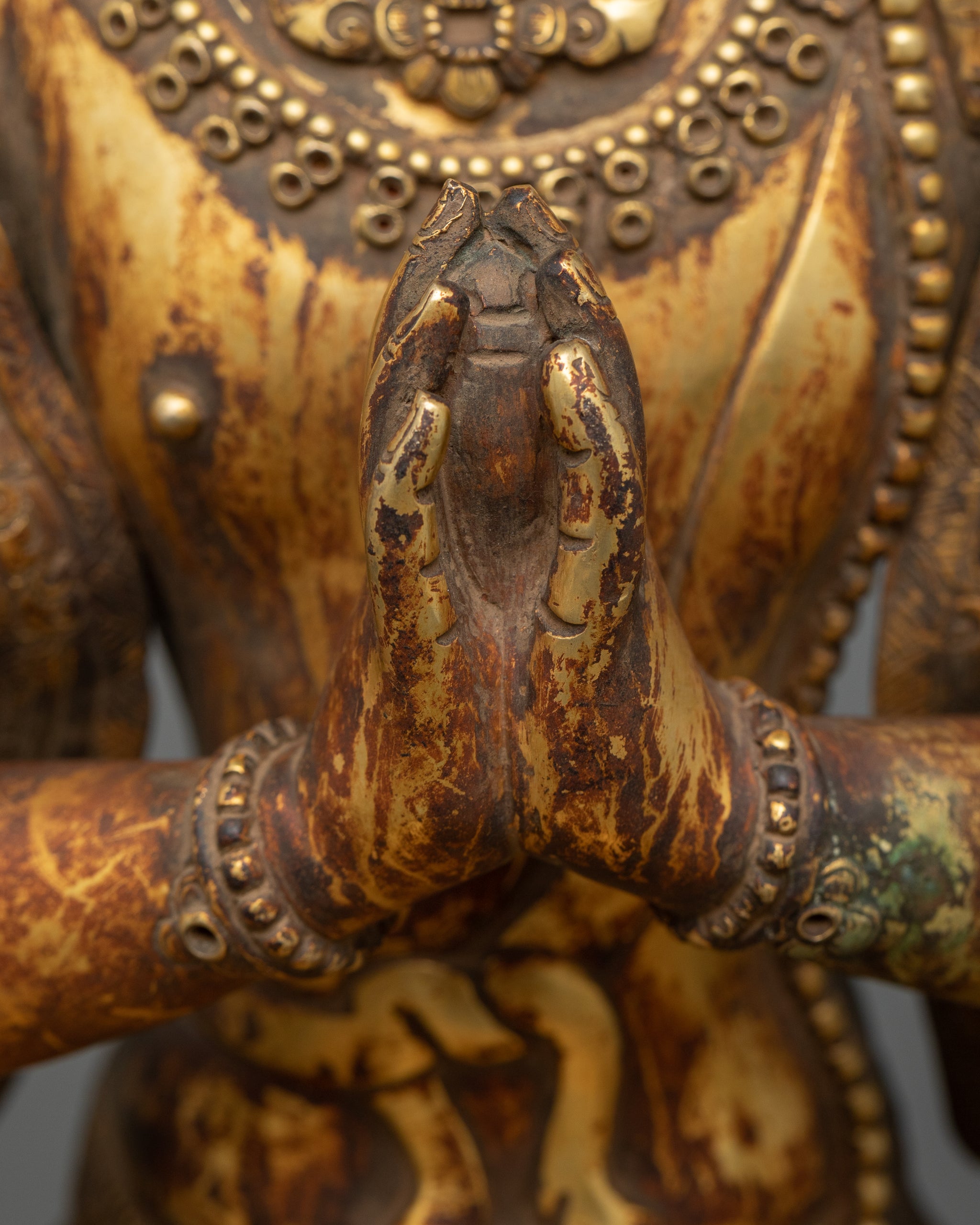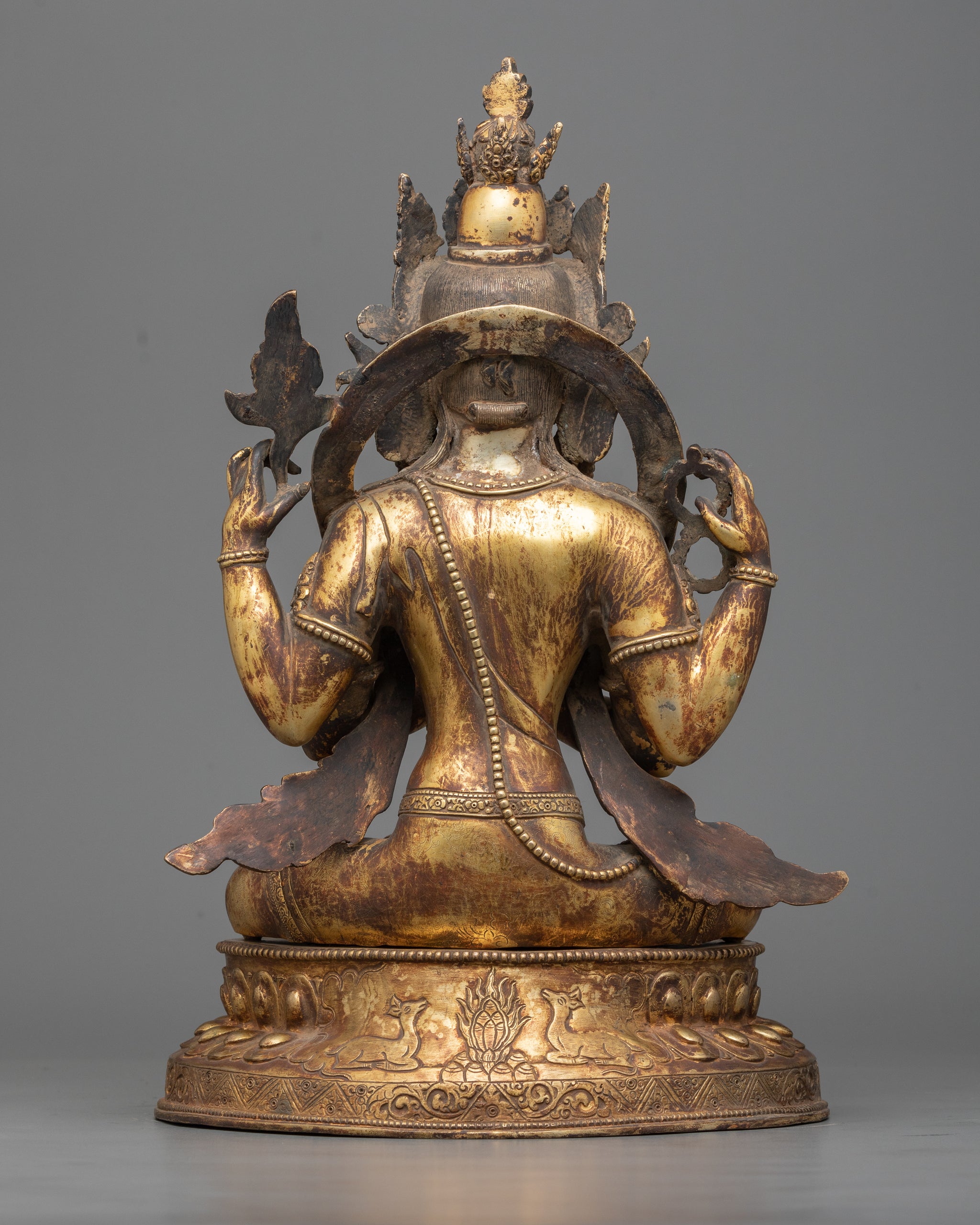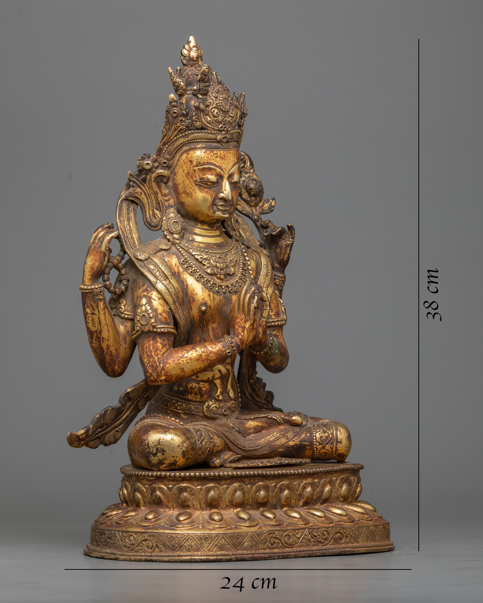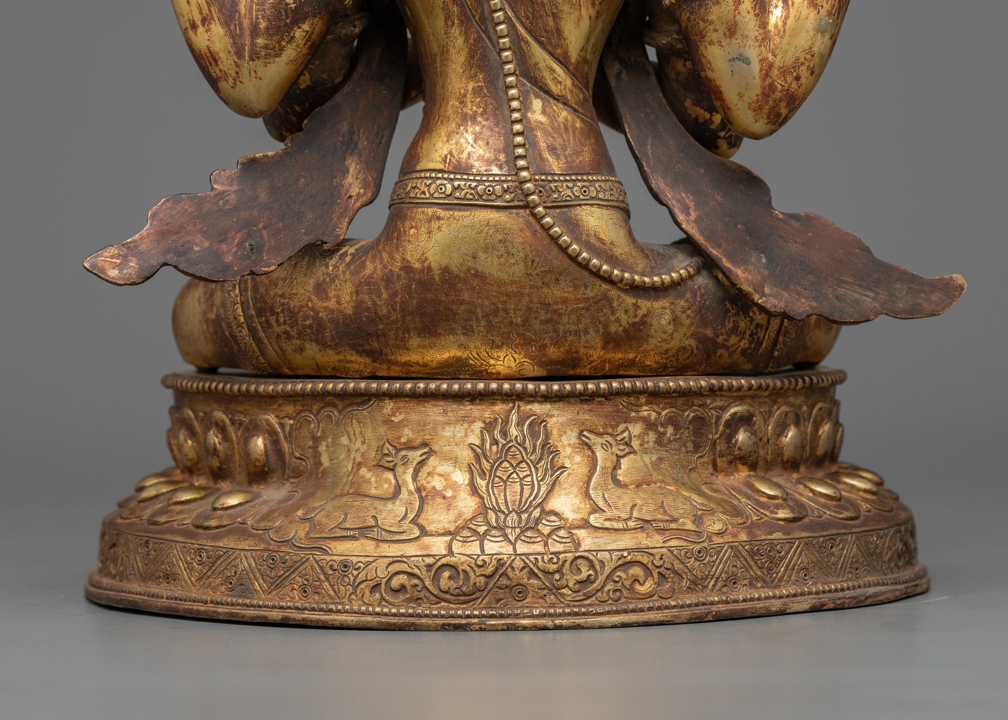 Antique Chenrezig Bodhisattva Statue | 24K Gold Gilded Compassion Deity