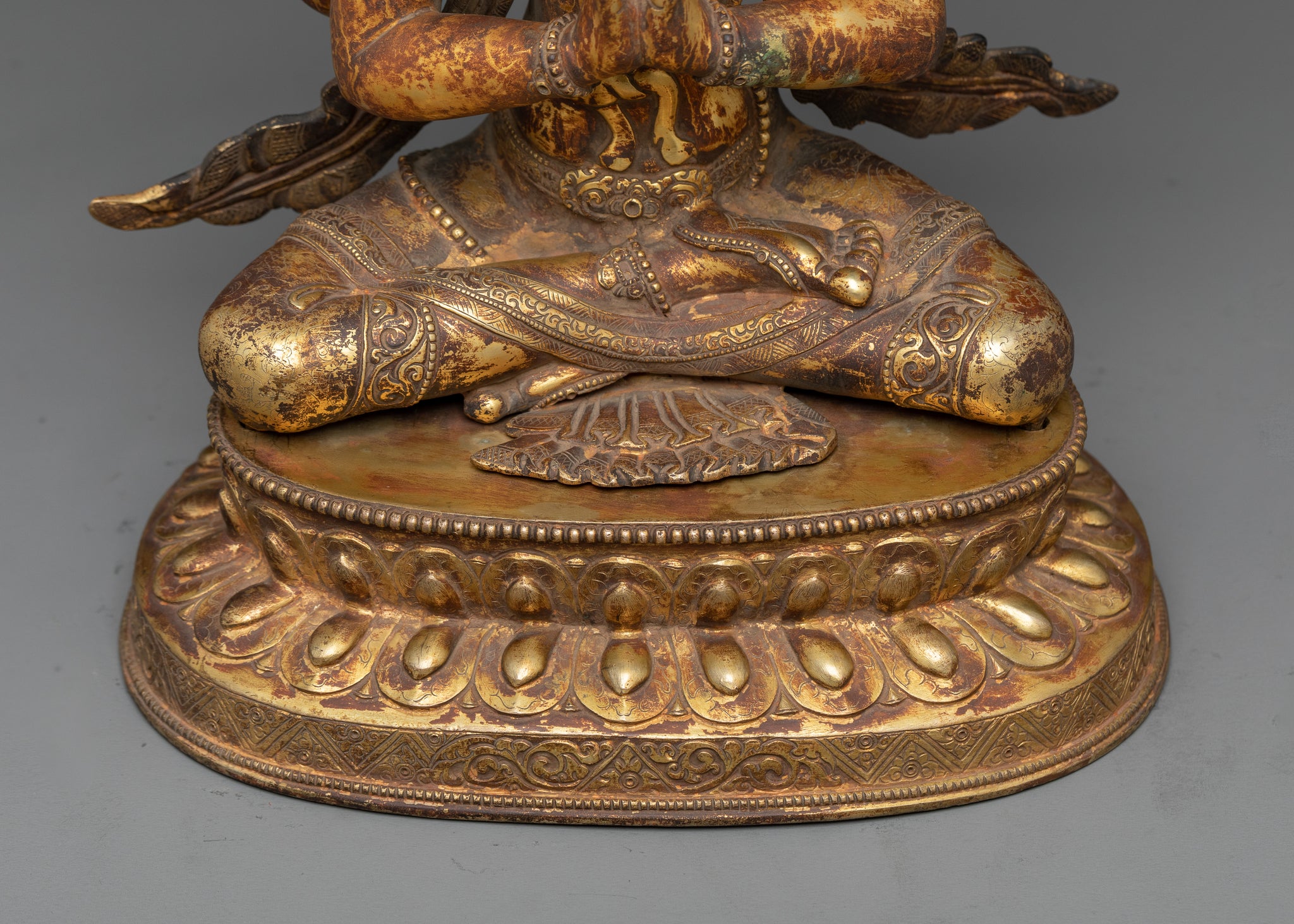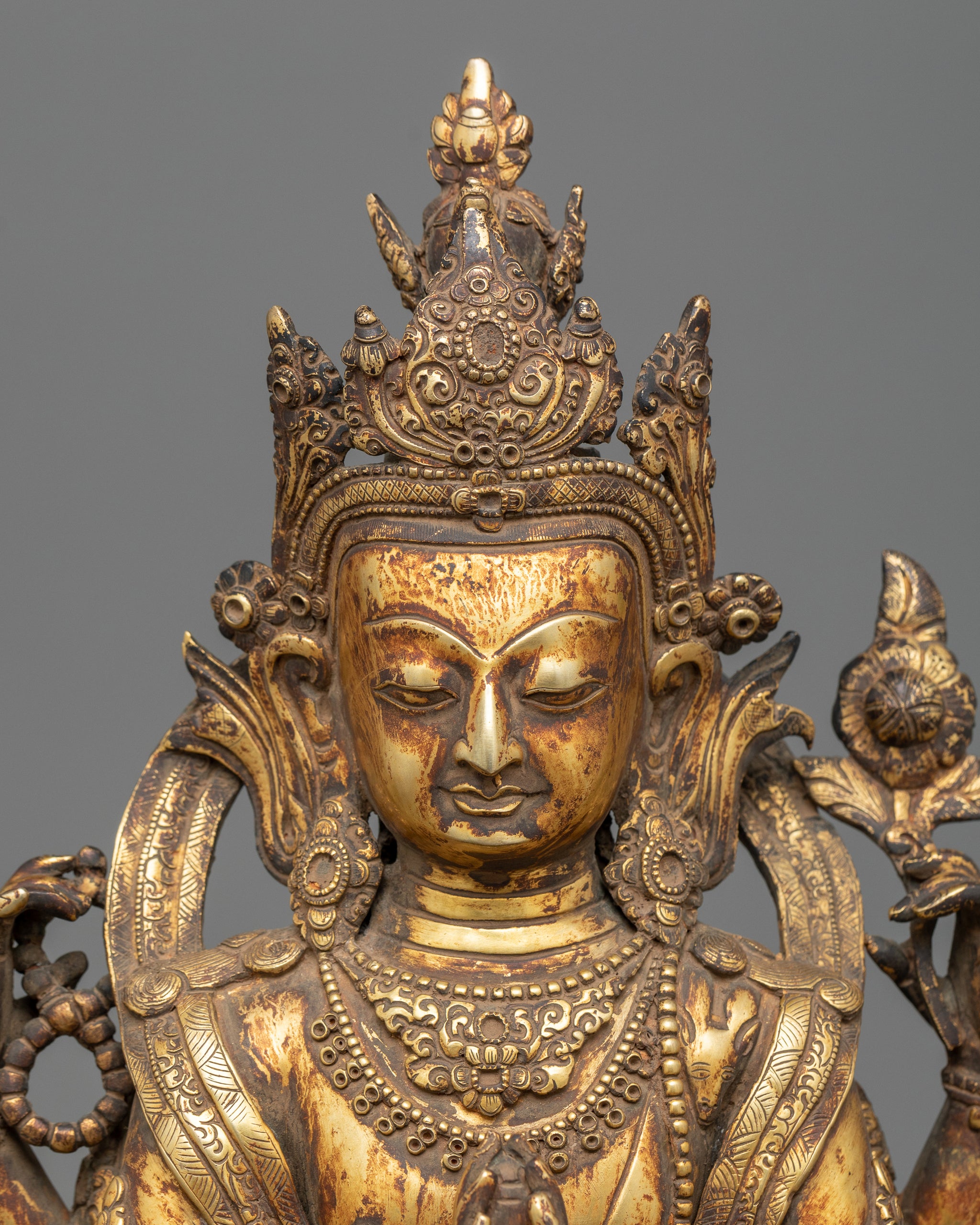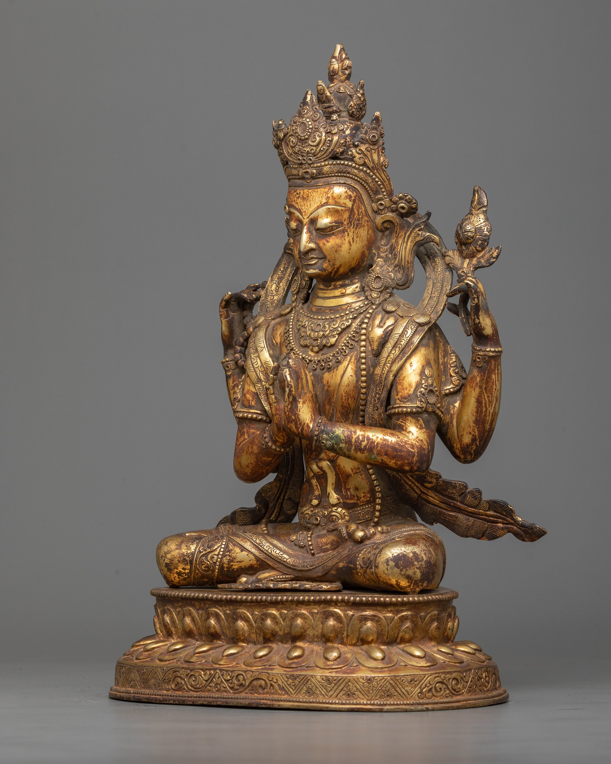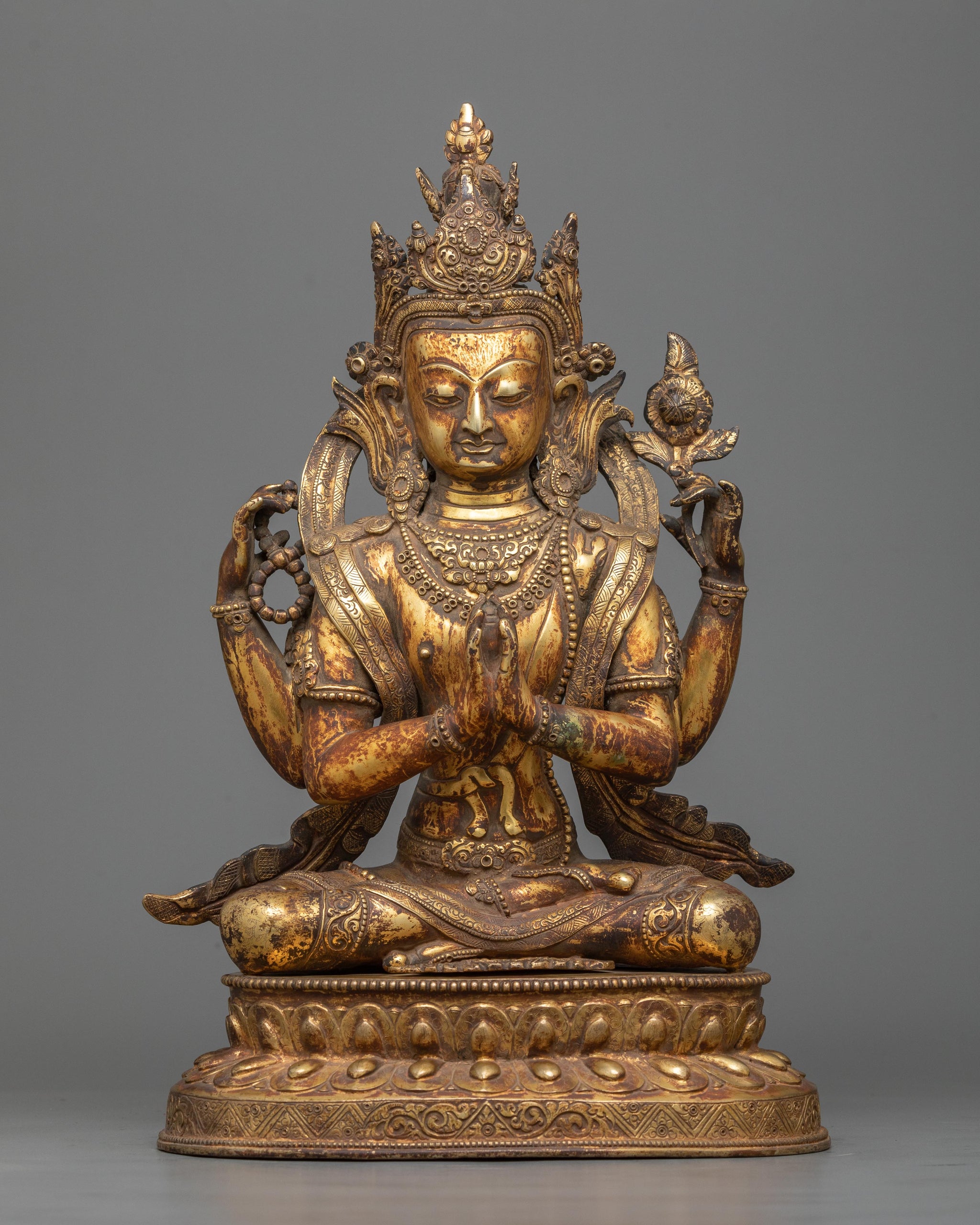 Antique Chenrezig Bodhisattva Statue | 24K Gold Gilded Compassion Deity