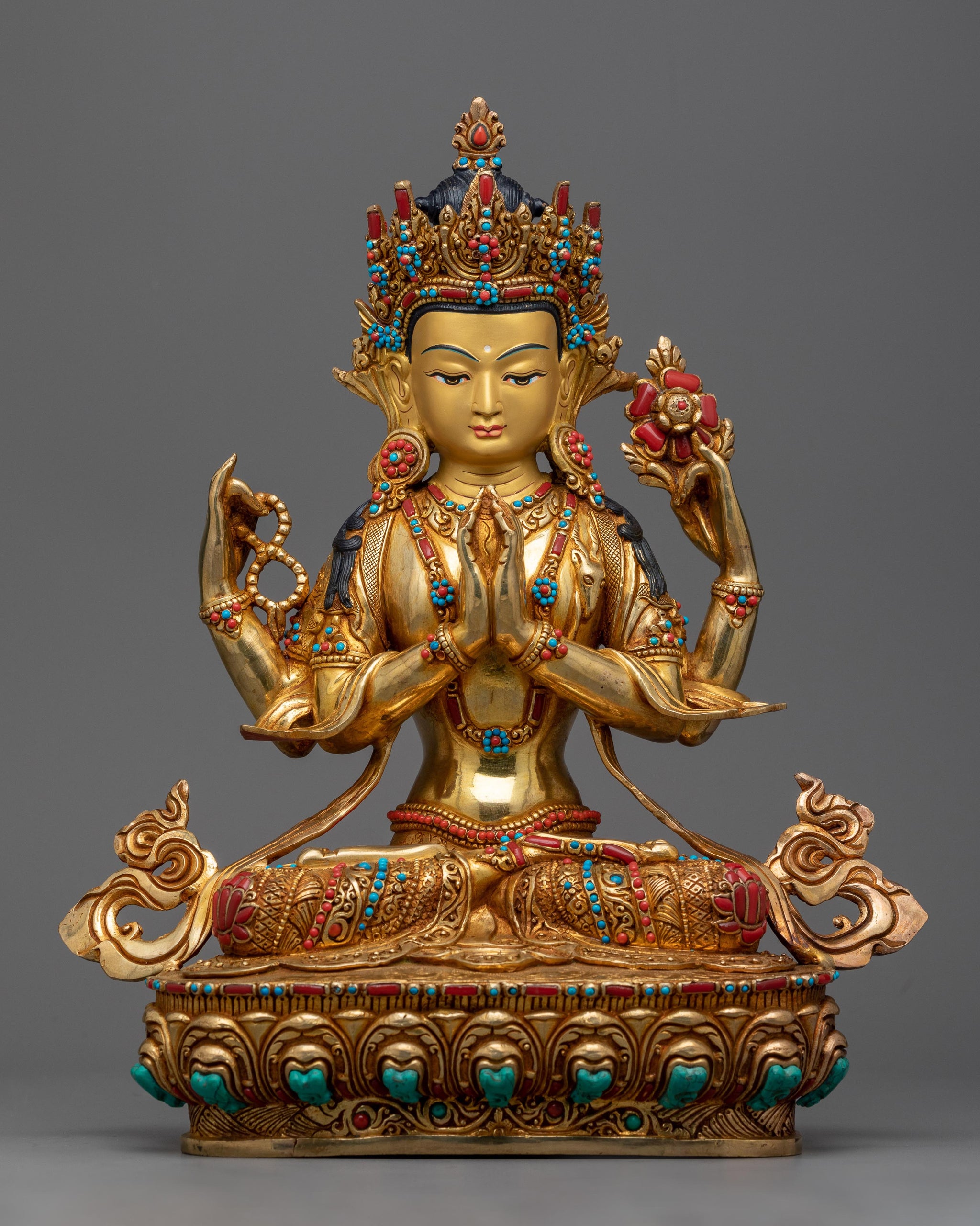 Embark on a Spiritual Journey with our Gold-Gilded Chenrezig Avalokiteshvara