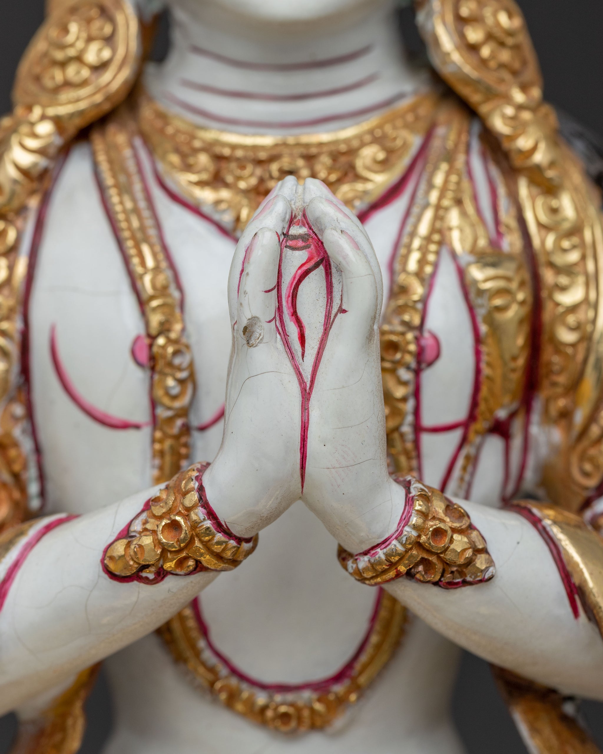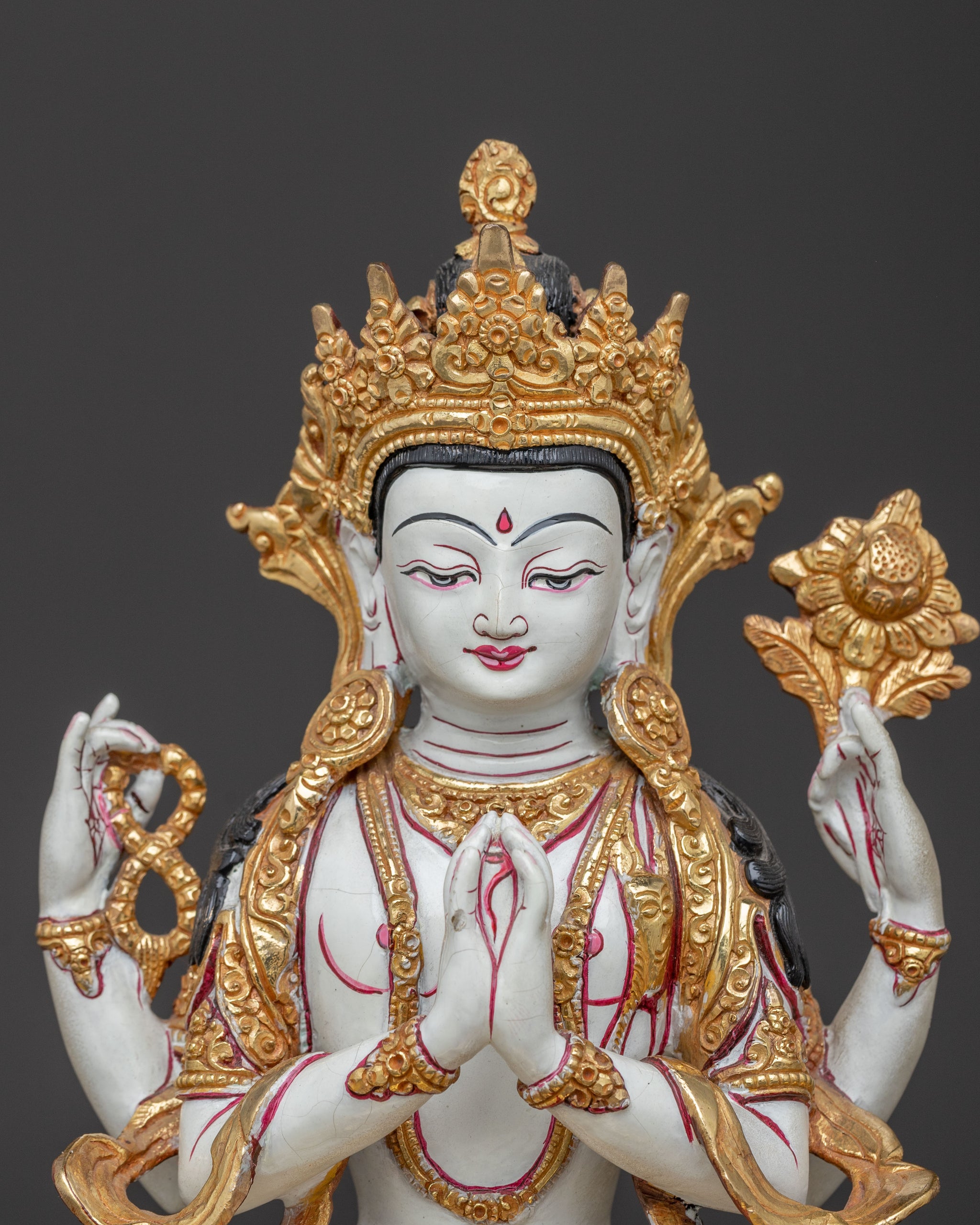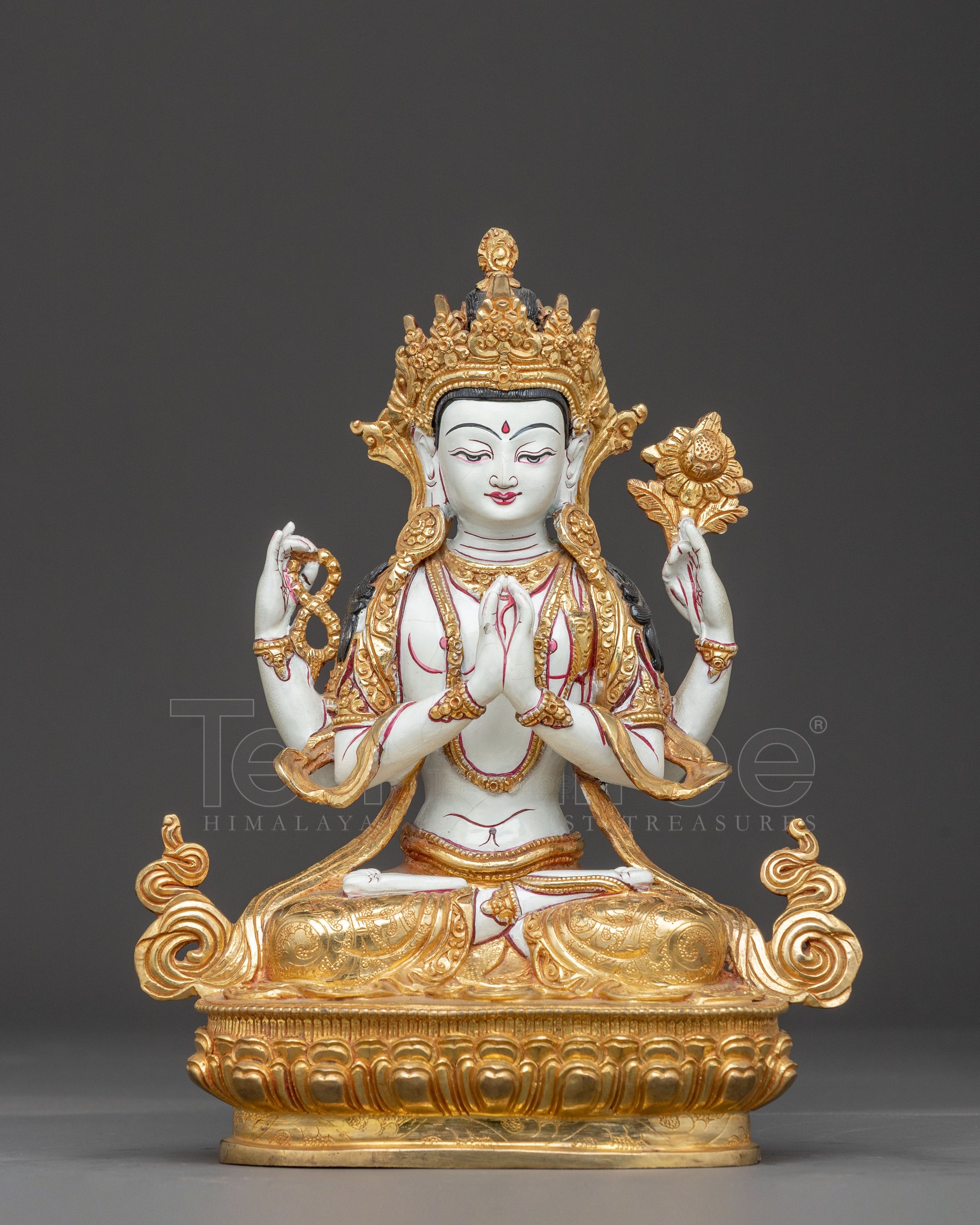 Chenrezig Bodhisattva Golden Statue | Handcrafted Nepalese Copper Sculpture