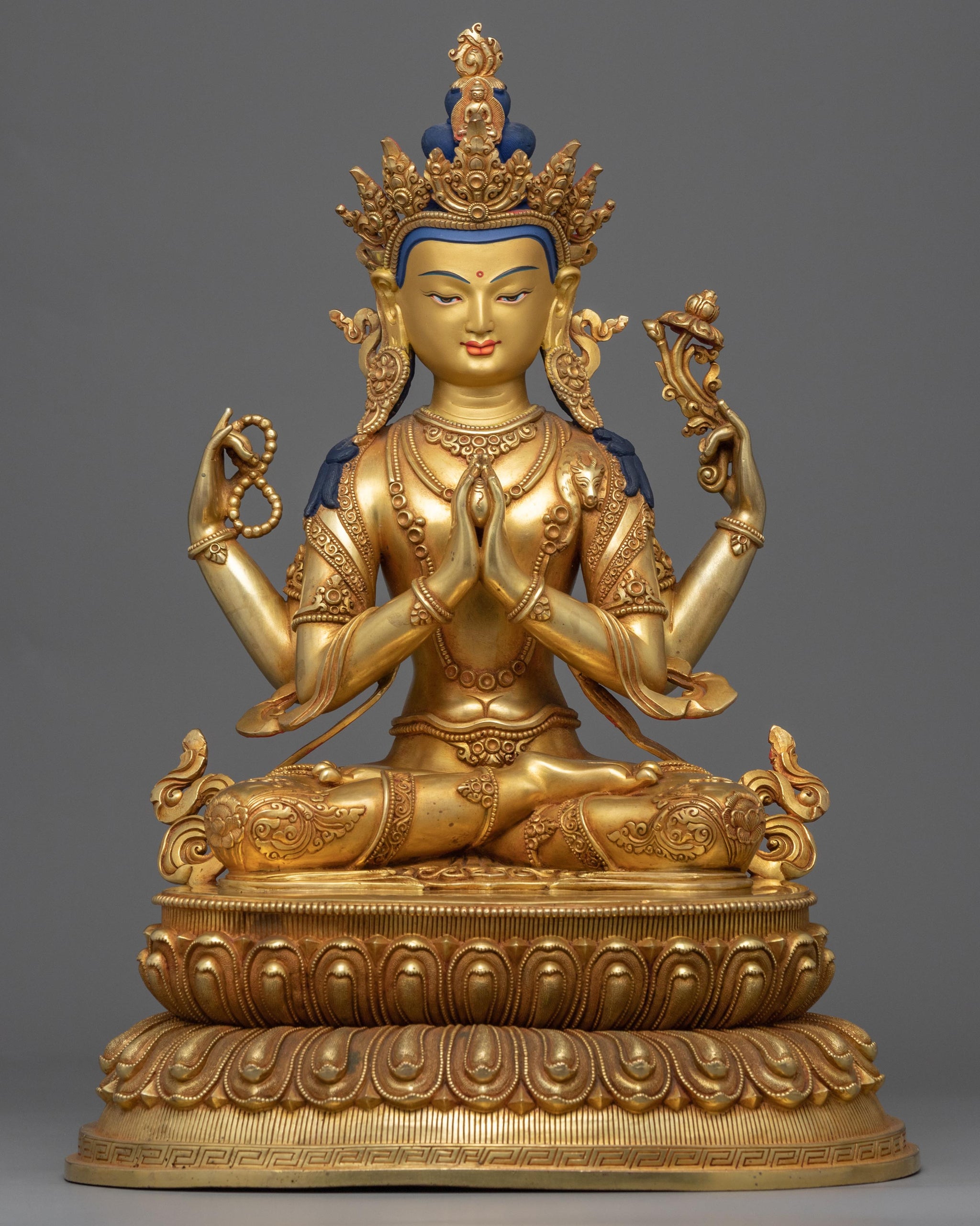 24k Gold Gilded Gold Art Statue of Chenrezig Buddha