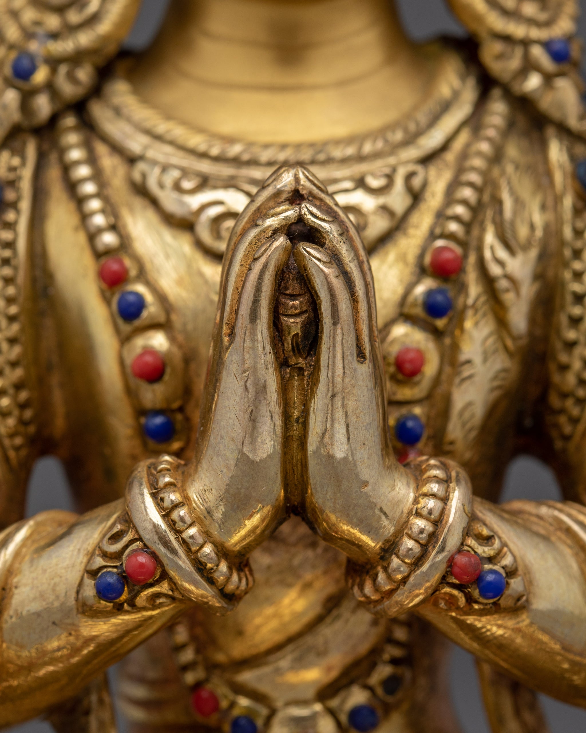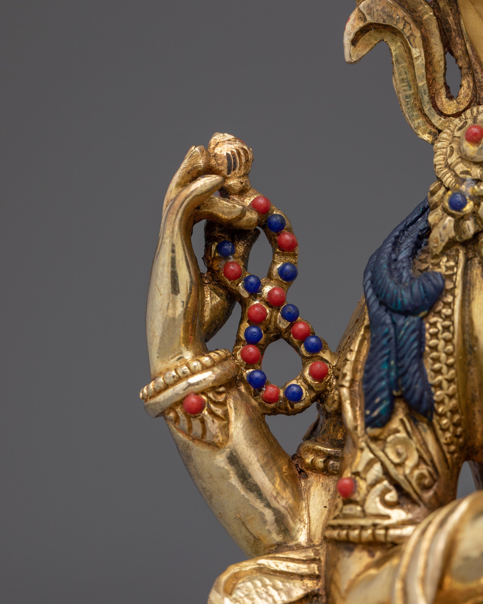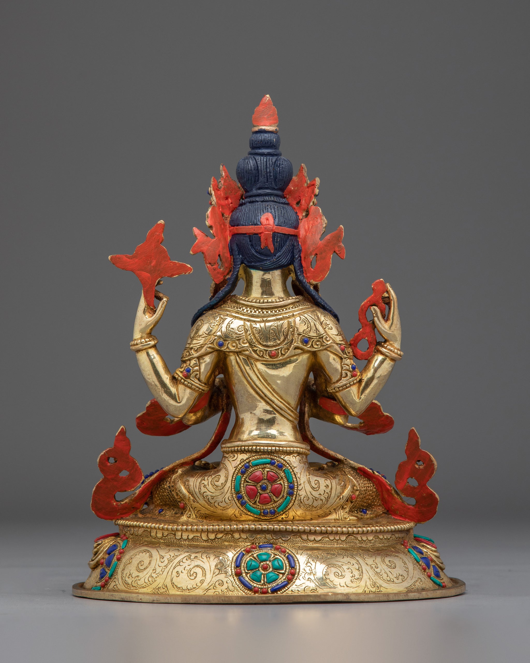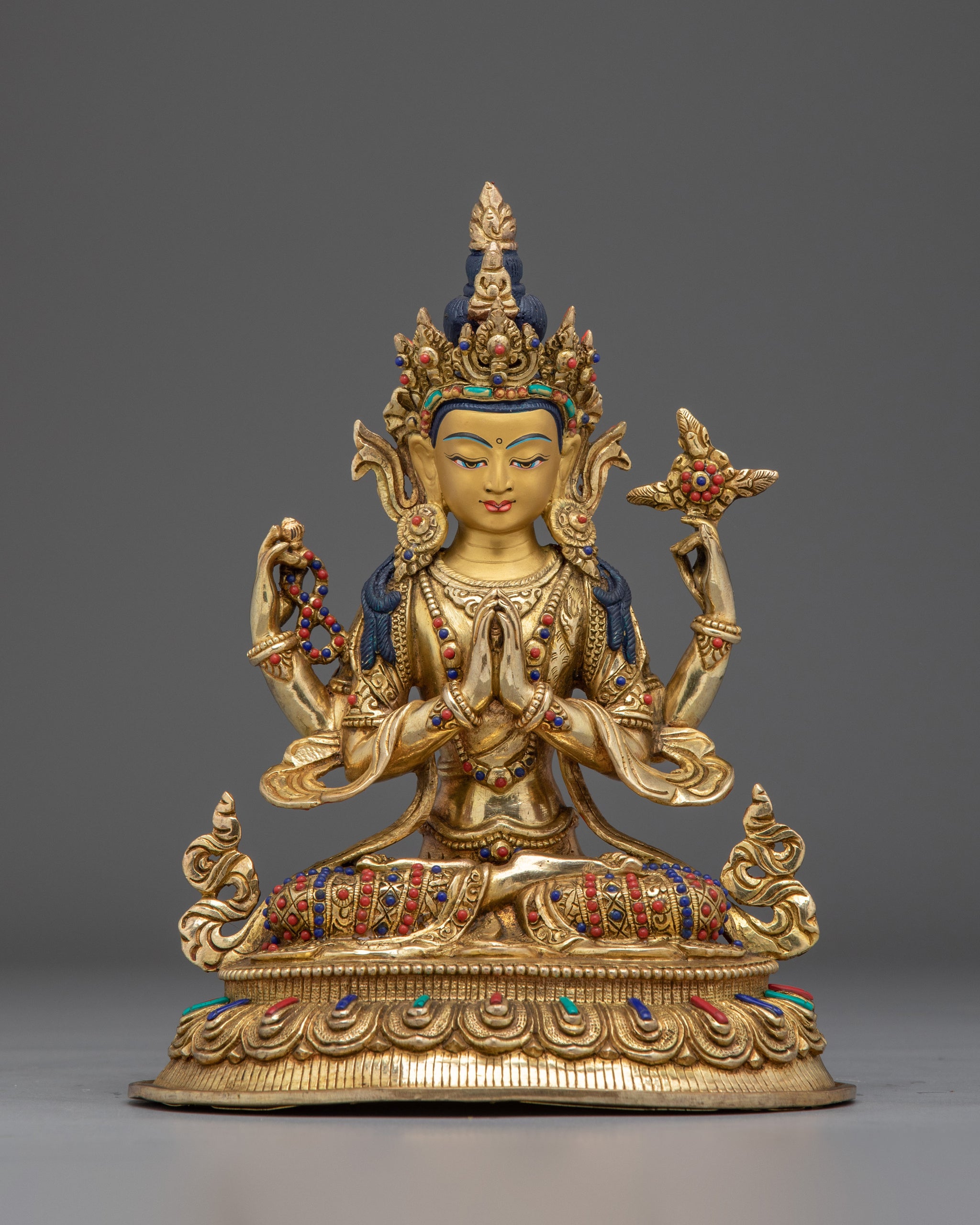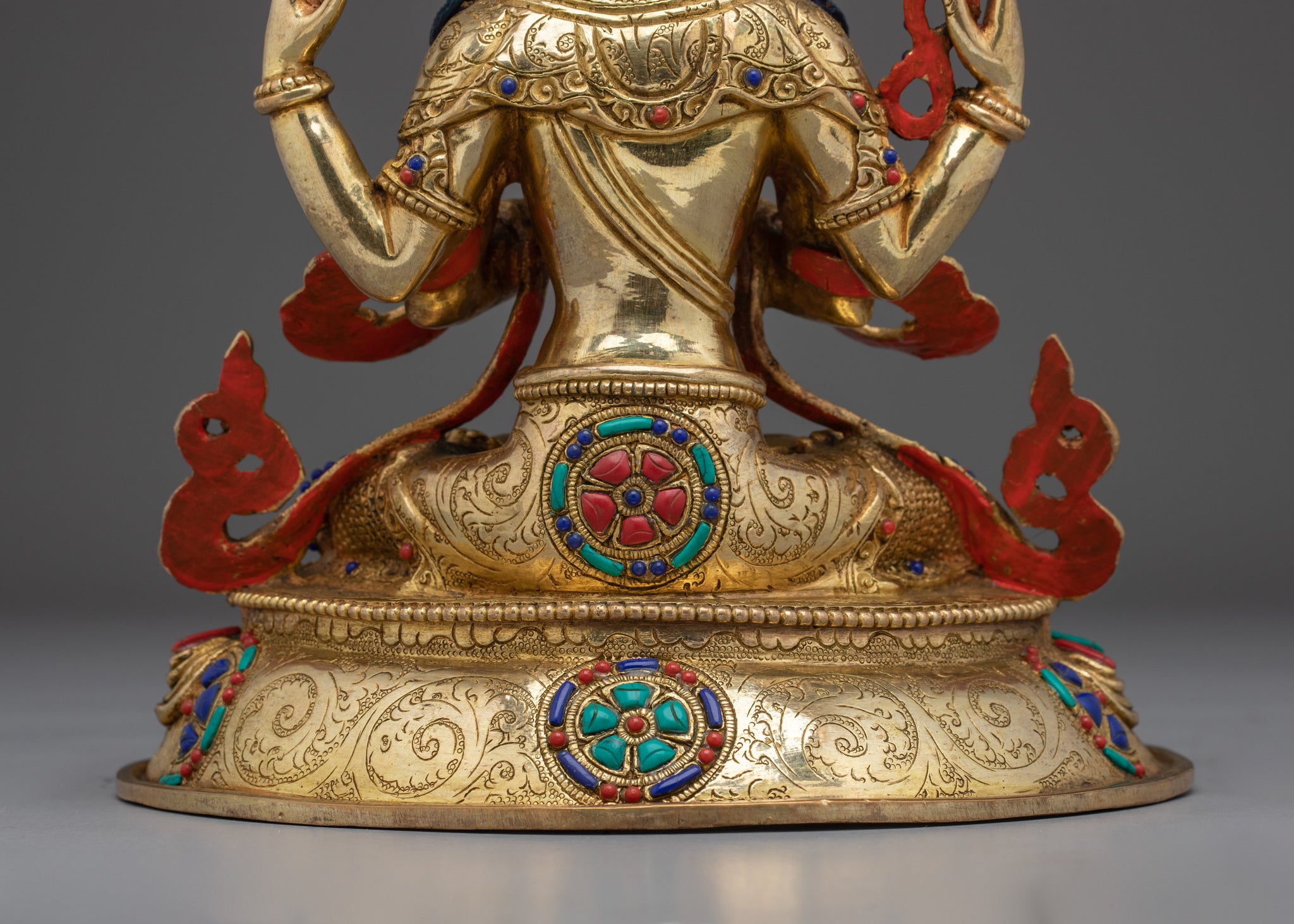 Chenrezig Buddha Copper and Gemstones Statue | Meditation and Altar Decor