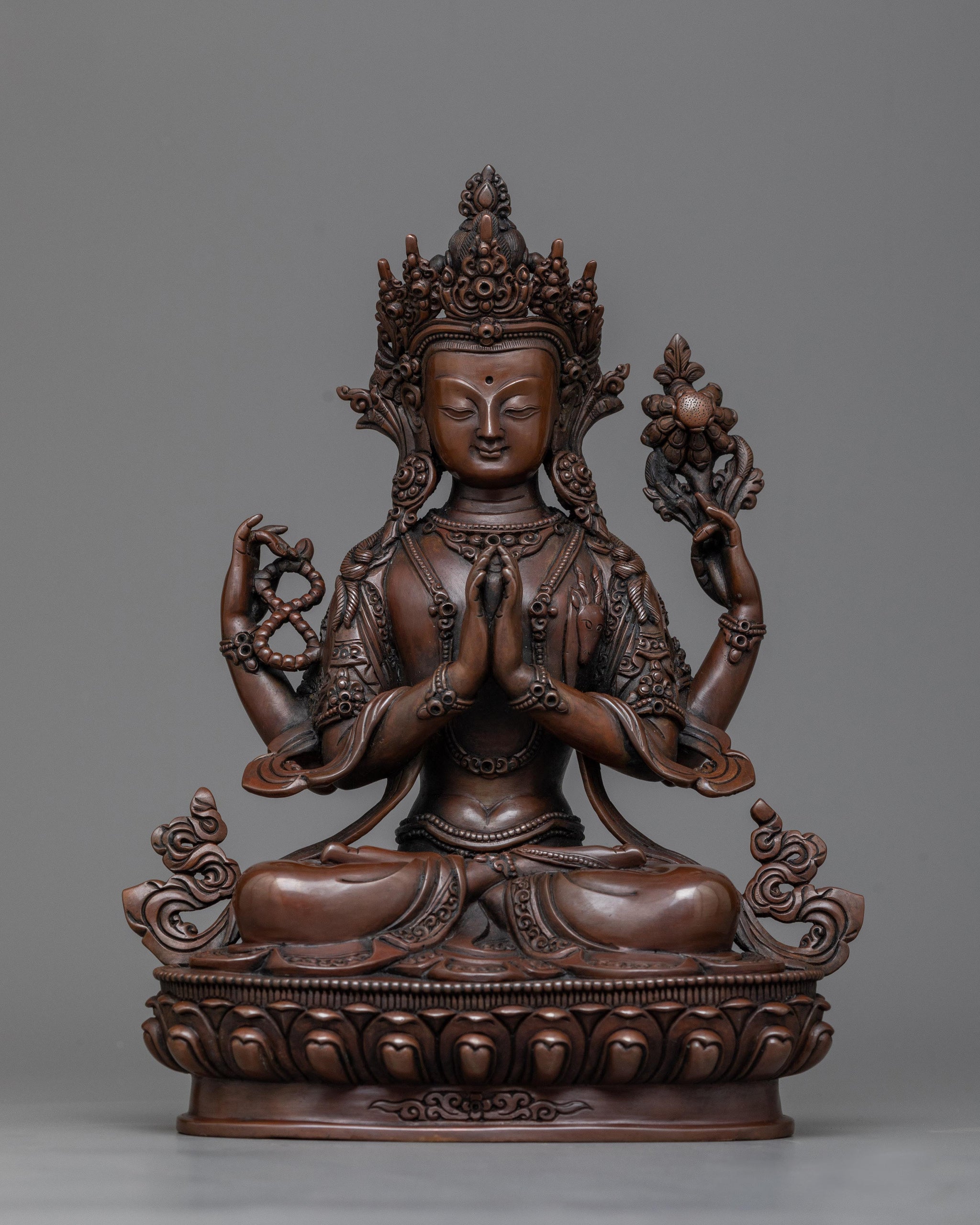 Chenrezig Chocolate Oxidized Statue | Symbol of Universal Compassion