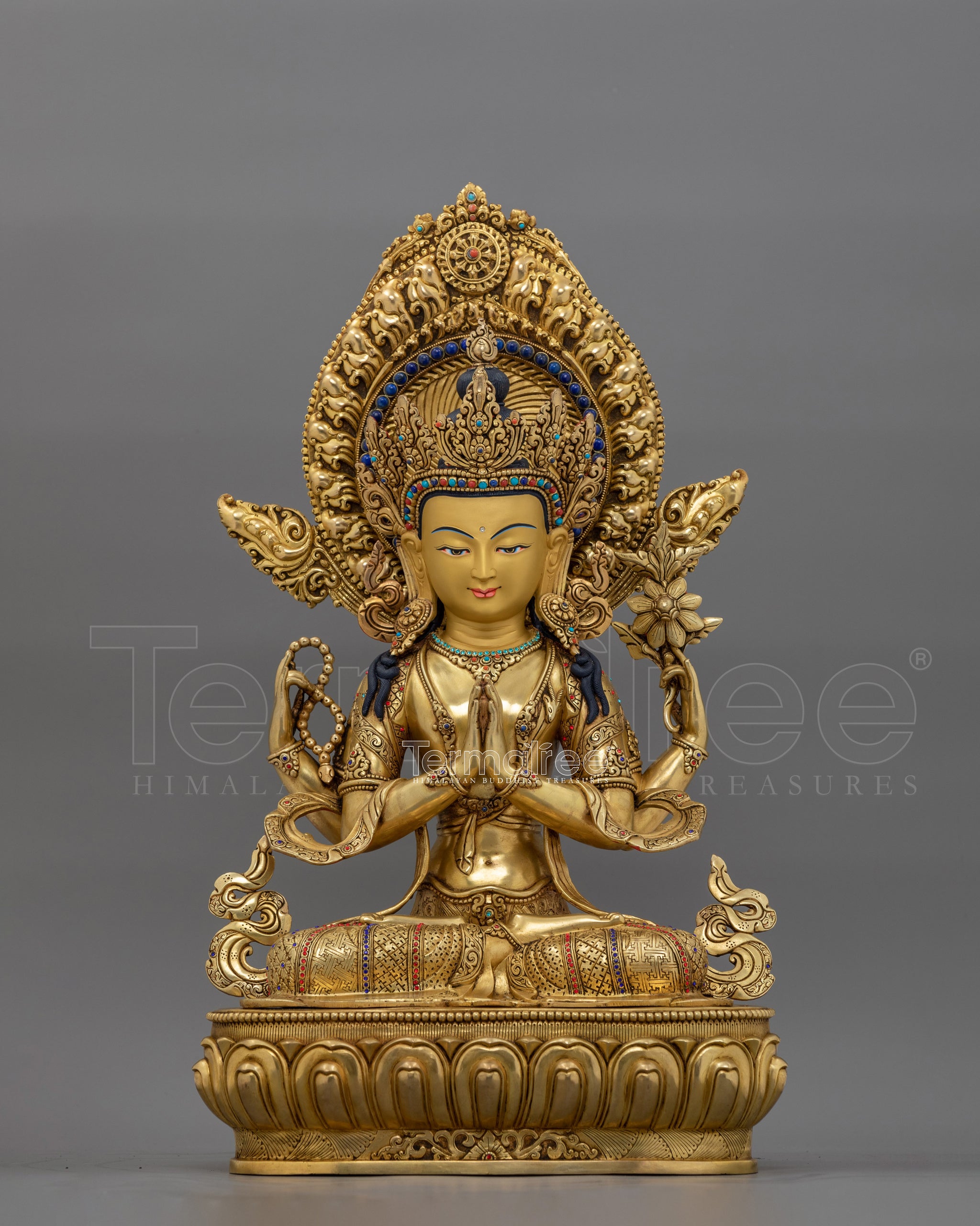 Traditional Chenrezig Dharma Statue | Tibetan Bodhisattva Sculpture
