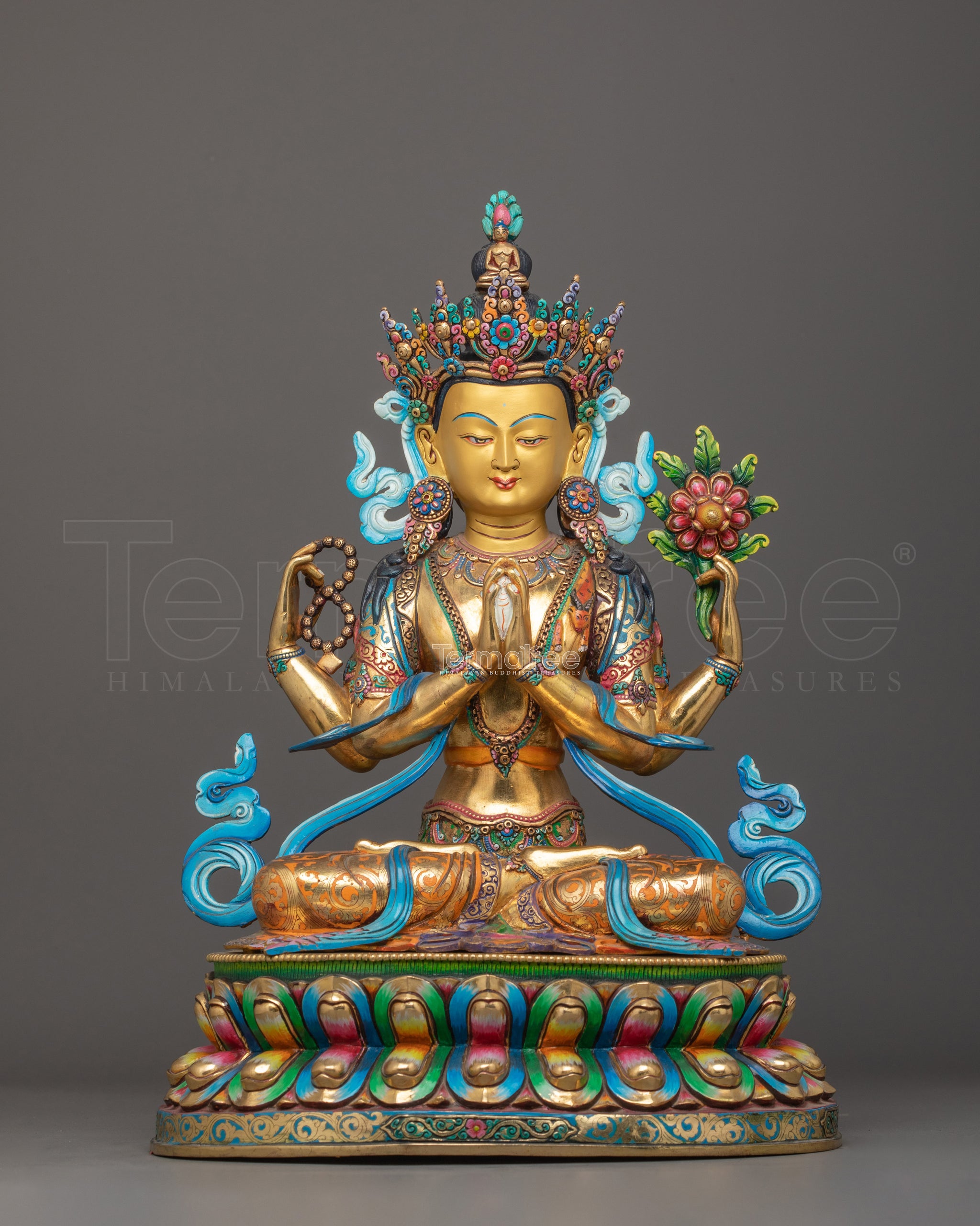 Chenrezig Four-Armed Form Figurine | Compassion and Meditation Decor