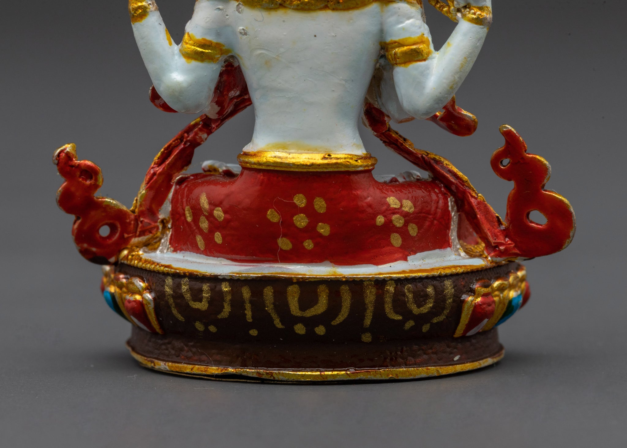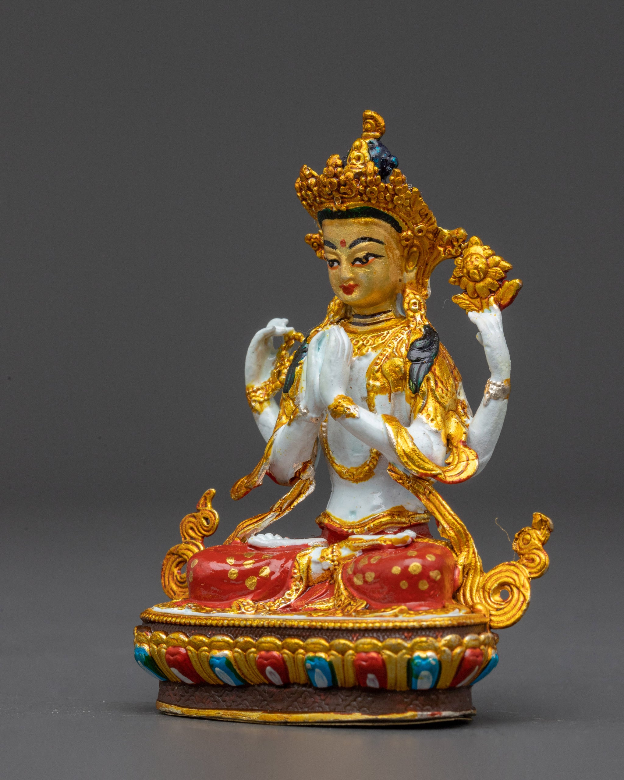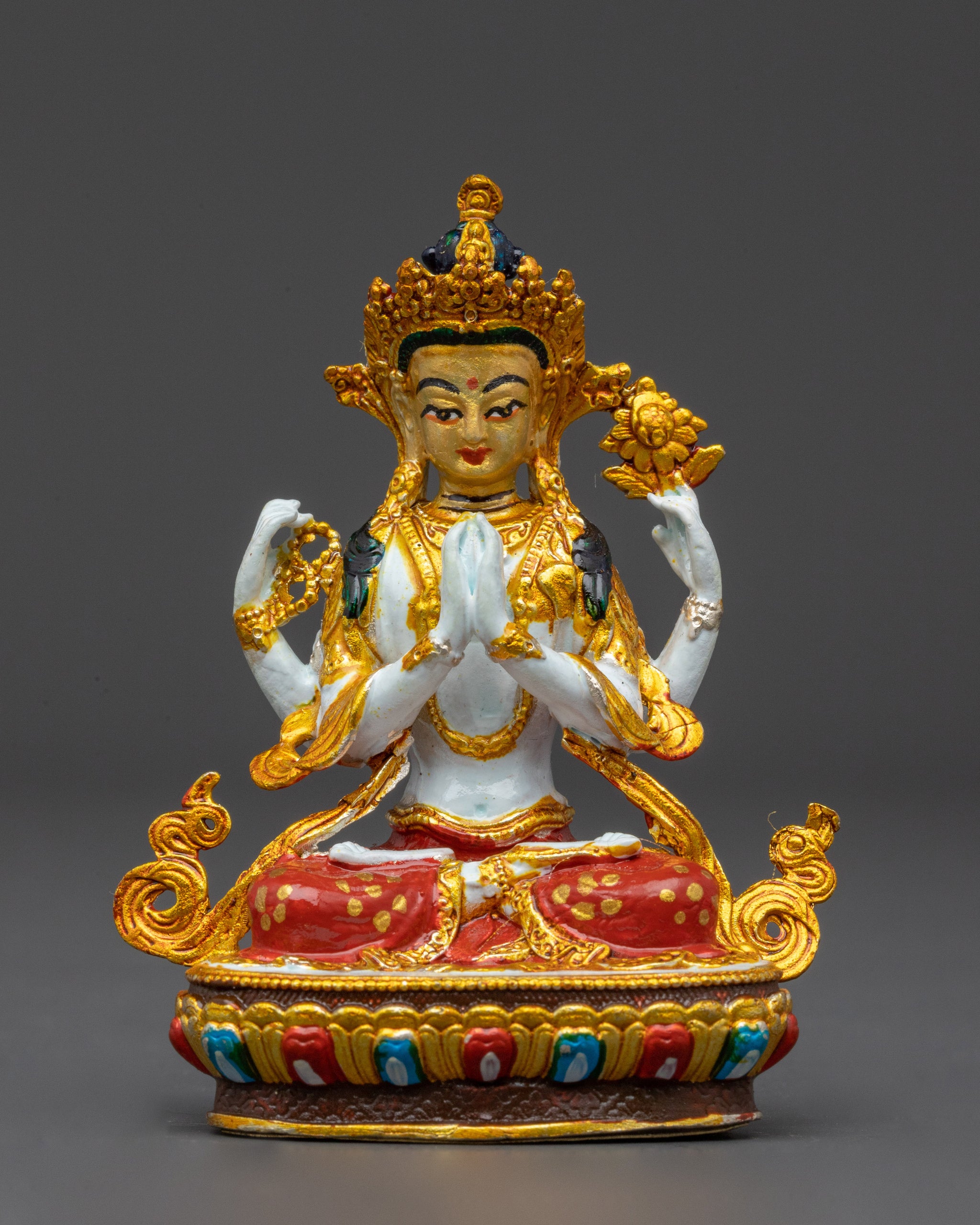 Chenrezig Holding Wish-Fulfilling Jewel | 2.6 Inches Gold Electroplated Buddha