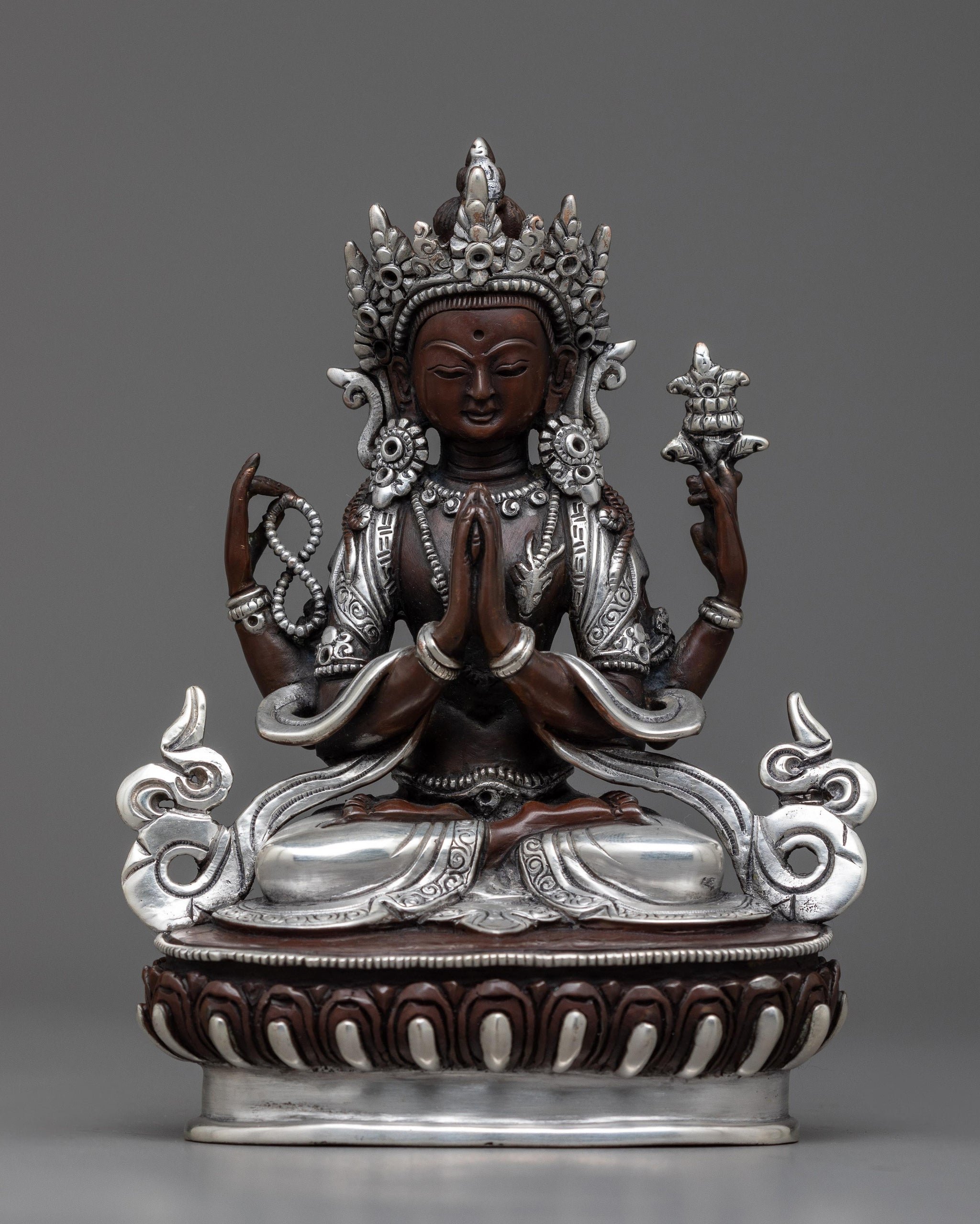 Radiating Grace Chenrezig Lokesvarak Statue - 6.4" of Silver Plated Serenity