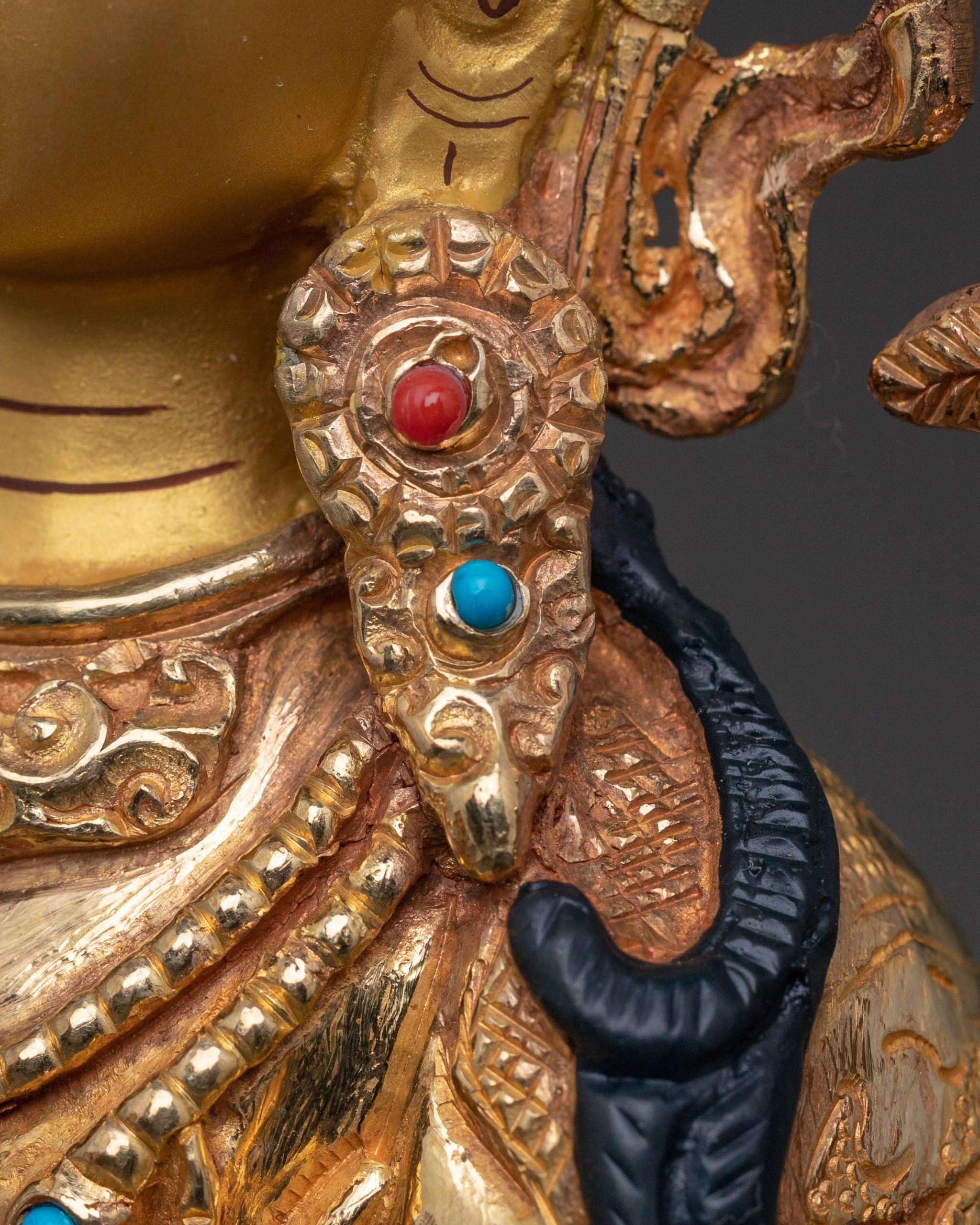 Chenrezig, the Bodhisattva of Compassion, radiates profound serenity in this exquisite statue, meticulously handcrafted by master artisans. Standing at 22.5 cm tall, this piece embodies boundless empathy, inviting a gentle presence into any sacred space. Covered with triple-layer 24K gold gilding and deeply engraved carvings that create a 3D effect, it reflects the deity's unwavering commitment to the welfare of all beings. Formed from pure copper, this sacred Buddhist art is sculpted using traditional methods passed down through generations of Nepalese artisans, offering both spiritual depth and beauty.
