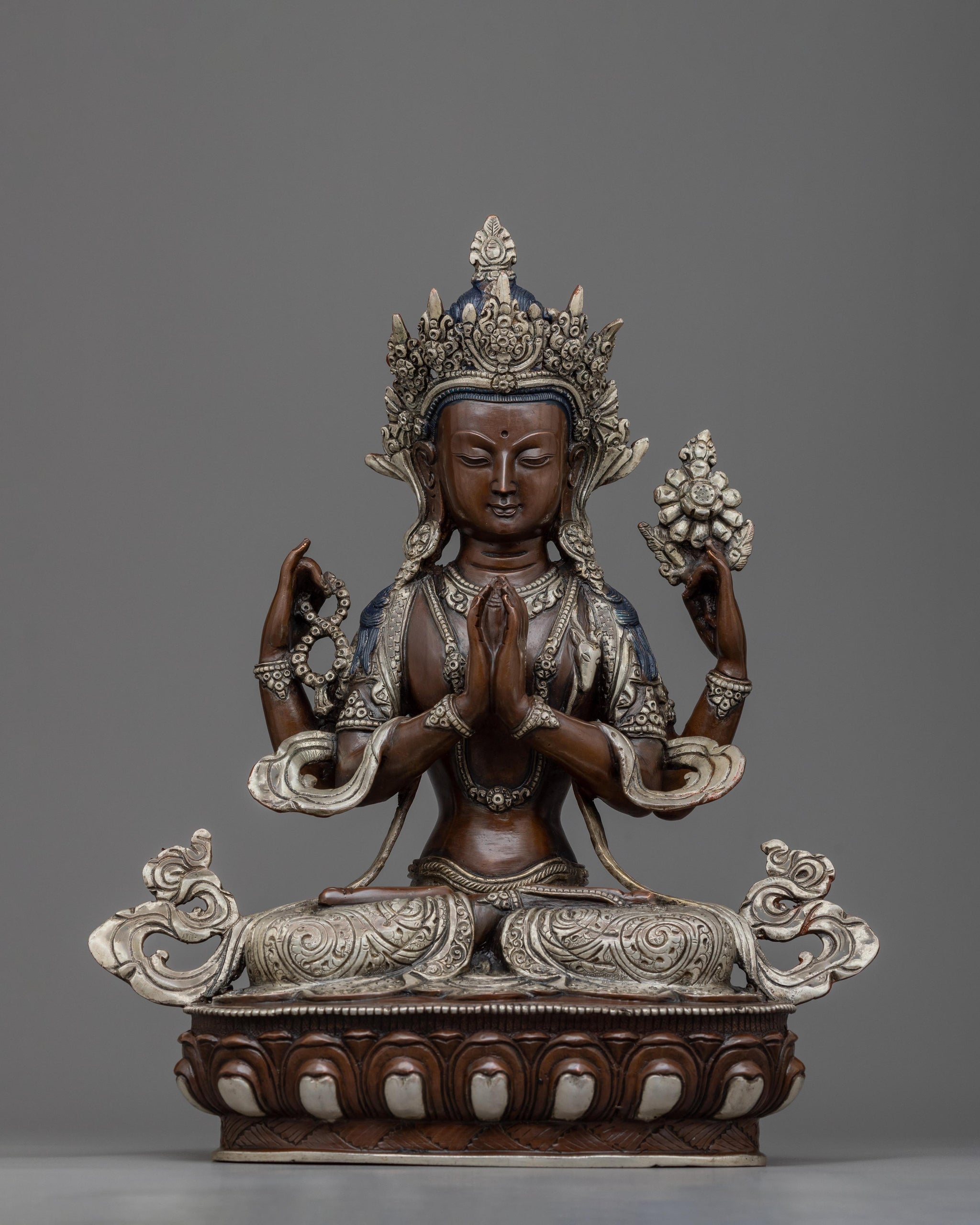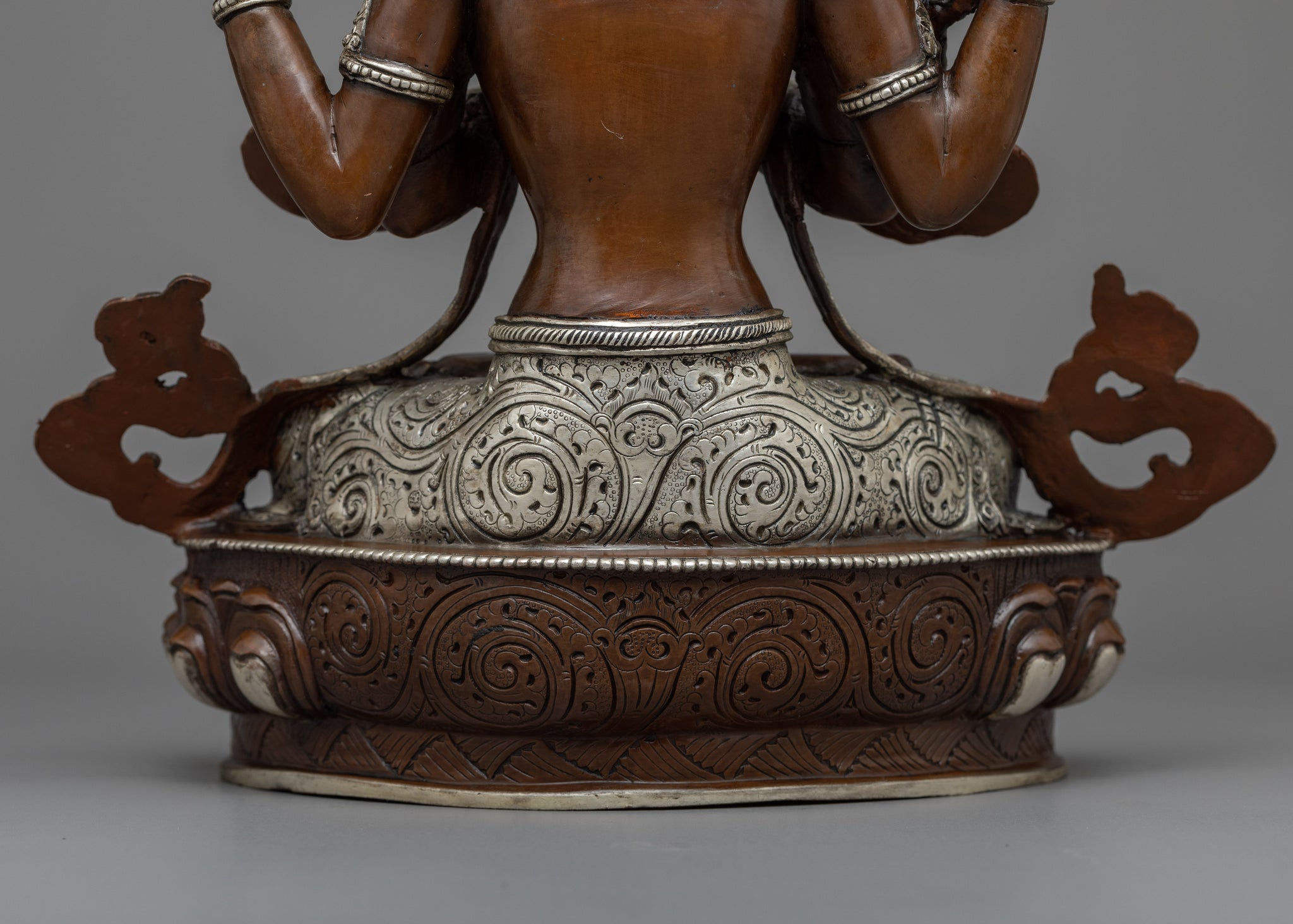 Chenrezig Silver Plated Statue | 12.9" Compassionate Deity of Bodhisattva