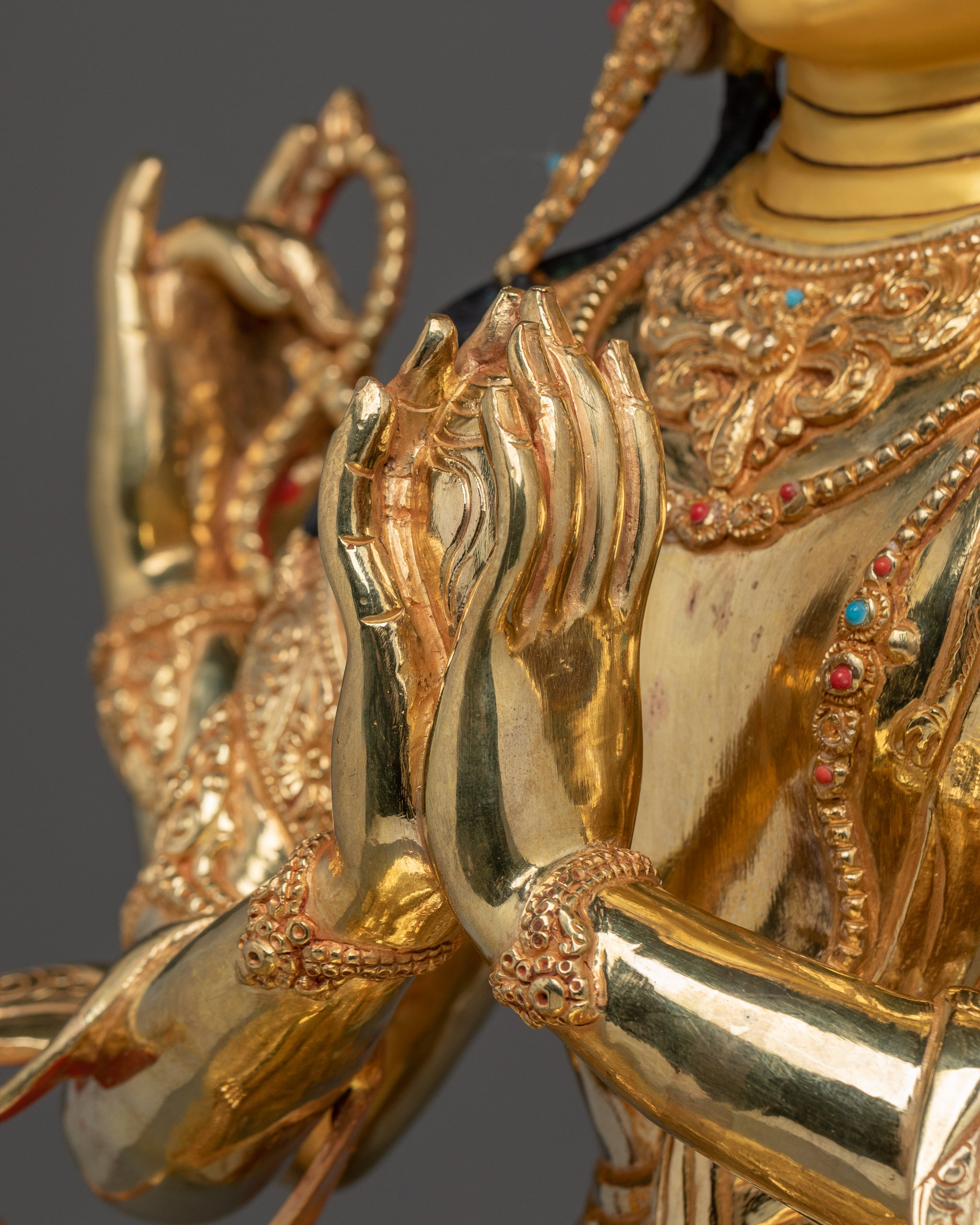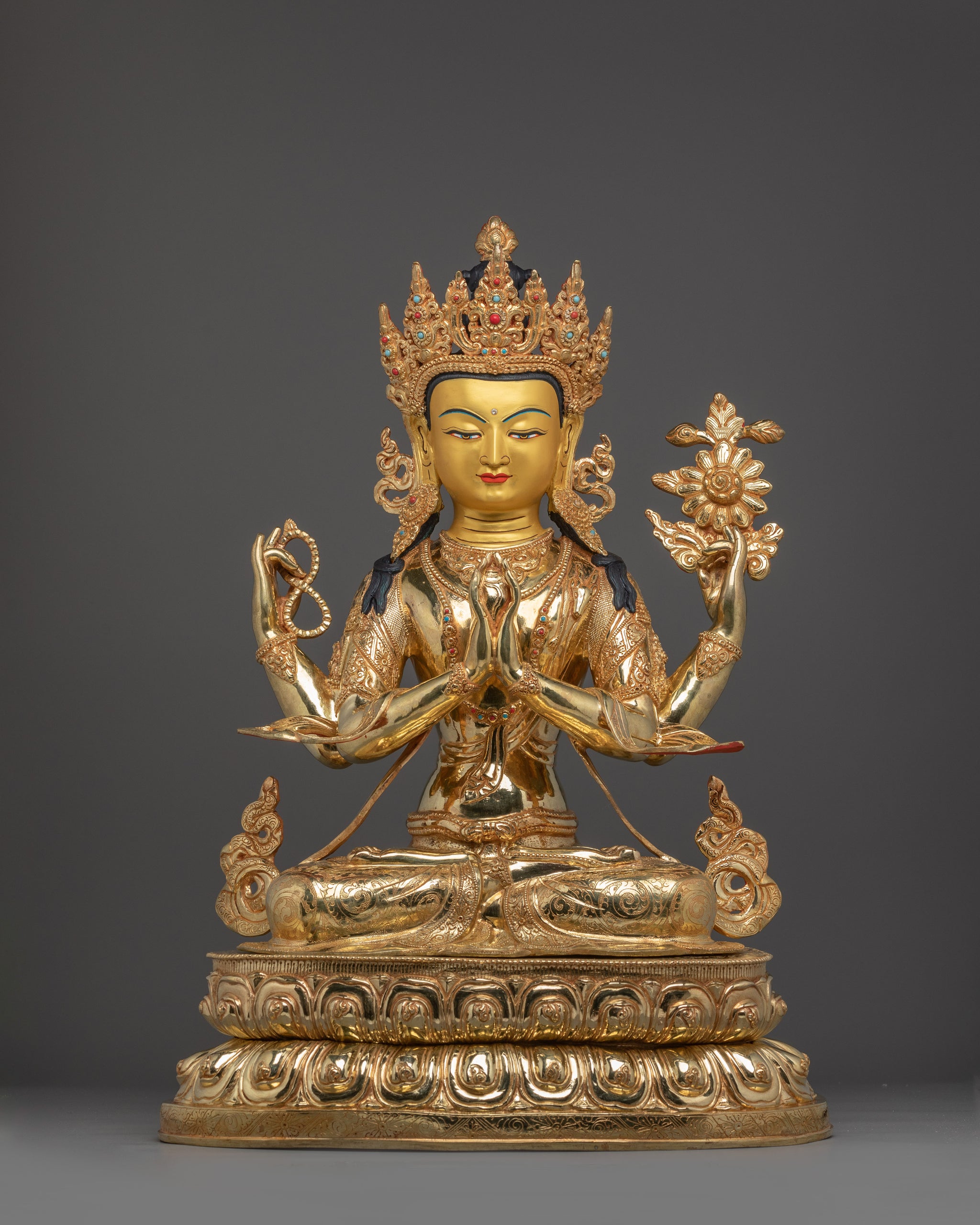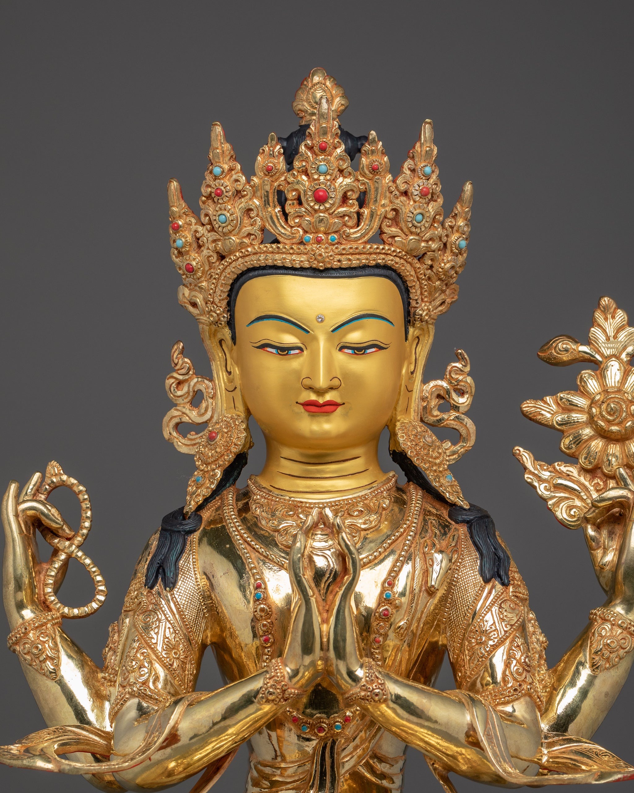 Chenrezig Statue with Copper Body | Tibetan Buddhist Shrine Sculpture