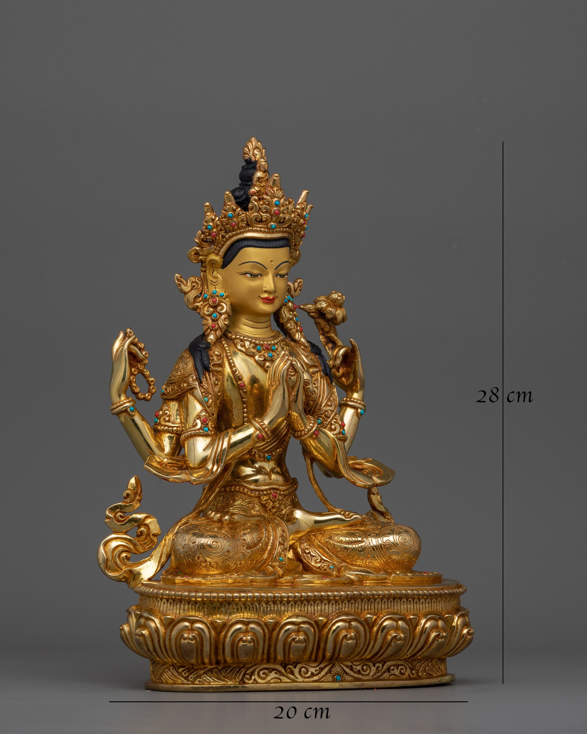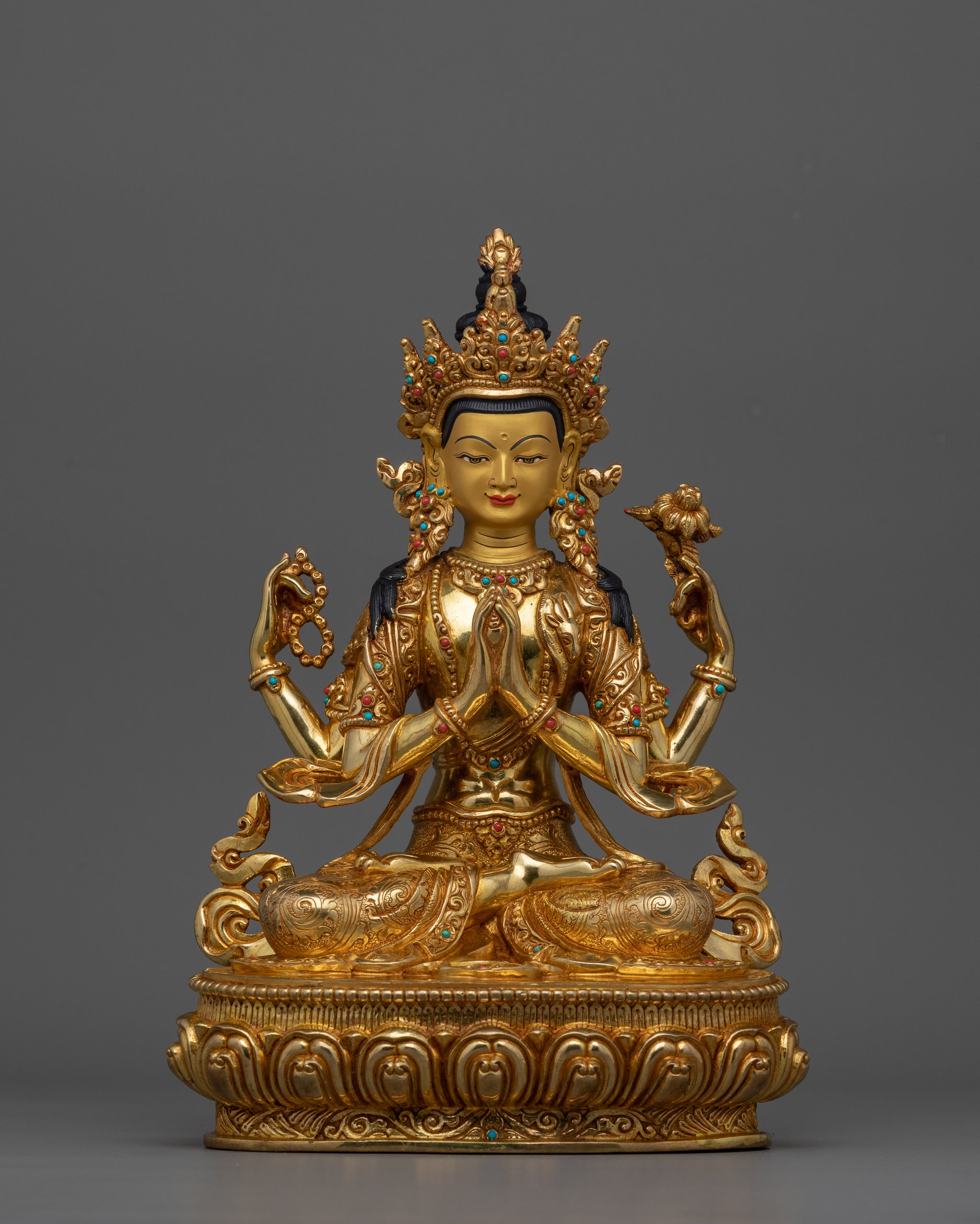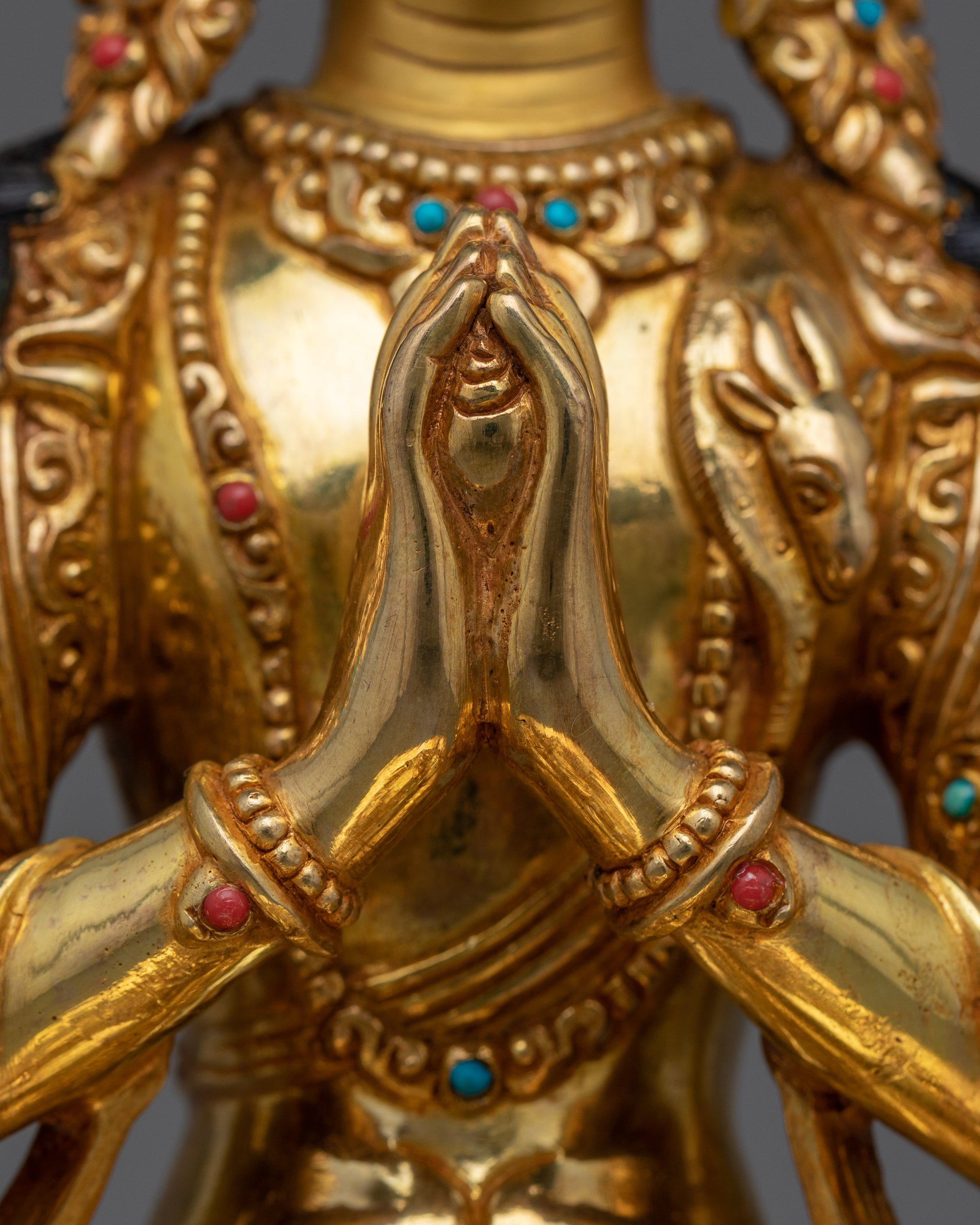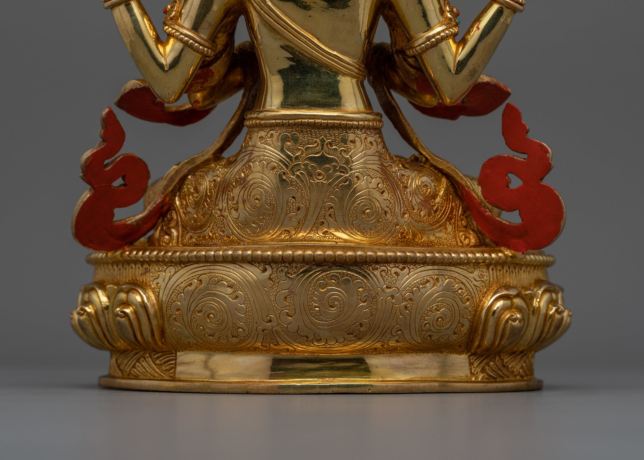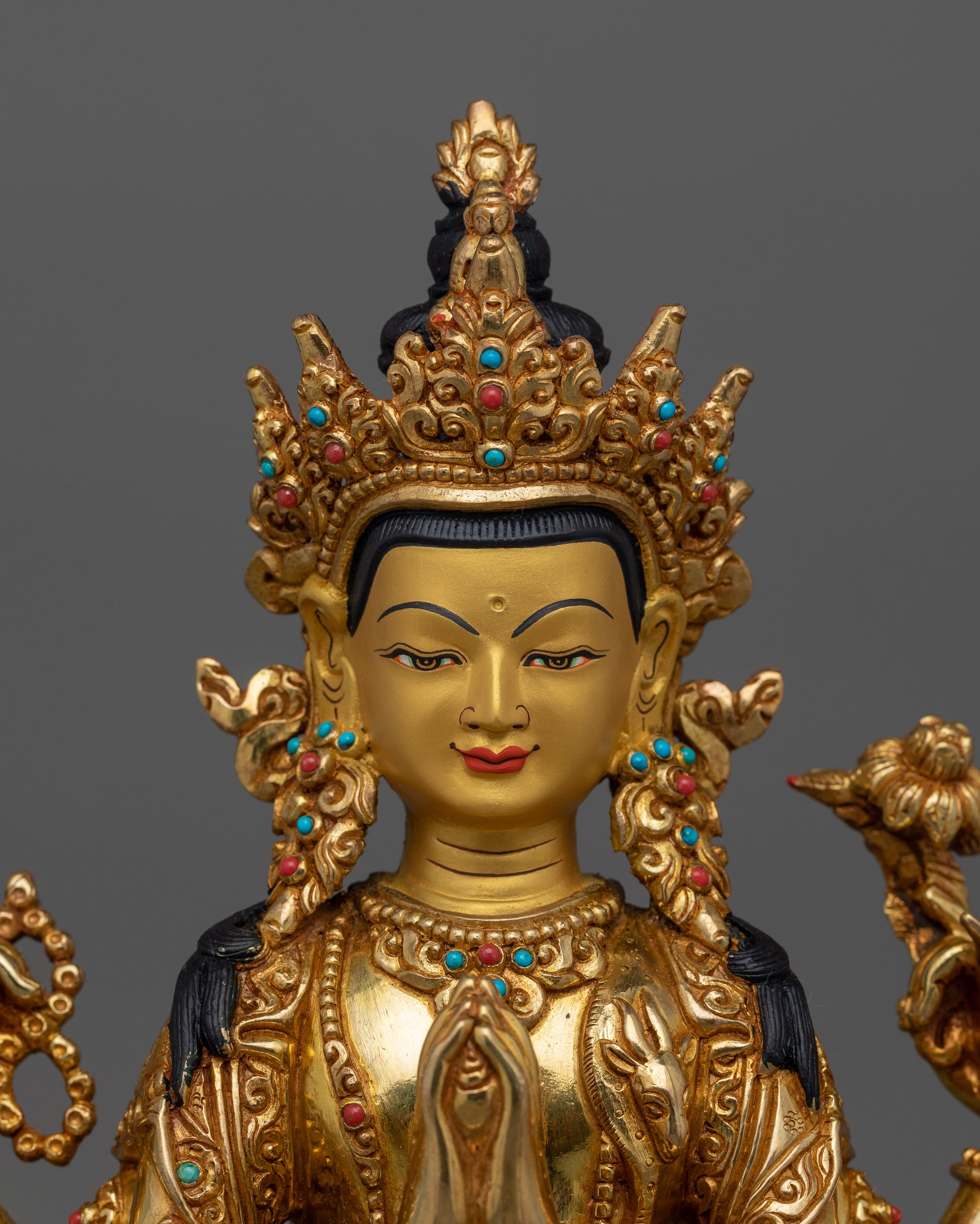 24K Gold Chenrezig Tranquil Sculpture | Embodiment of Compassion