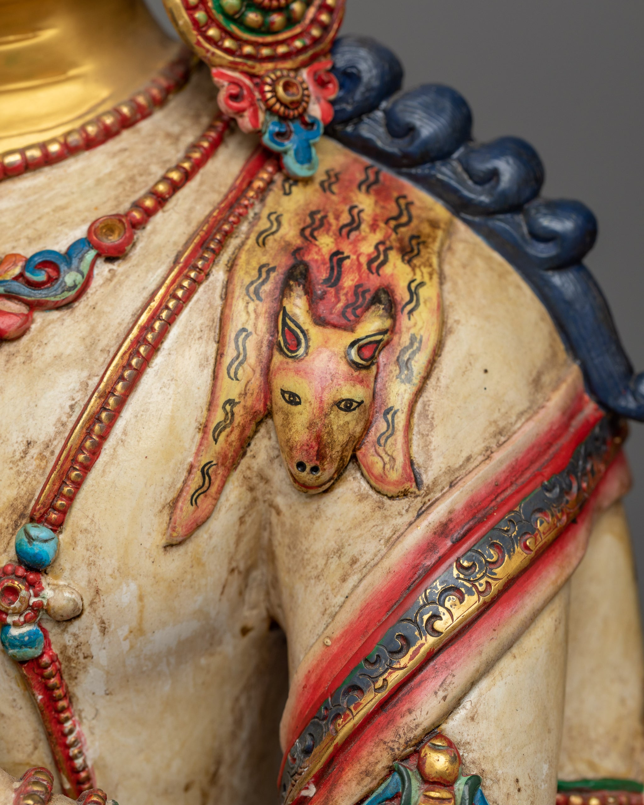 Vajrayogini is stunning. The details are amazing. It's easy to make out her facial expressions, skulls, feet, and the ring of fire around her. You can tell she's handmade. There is a consecration hole in her back.