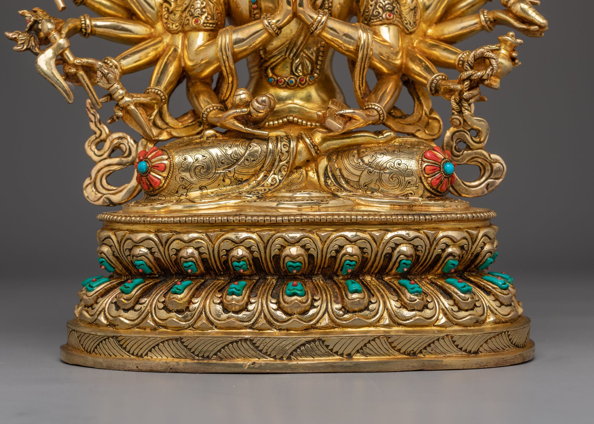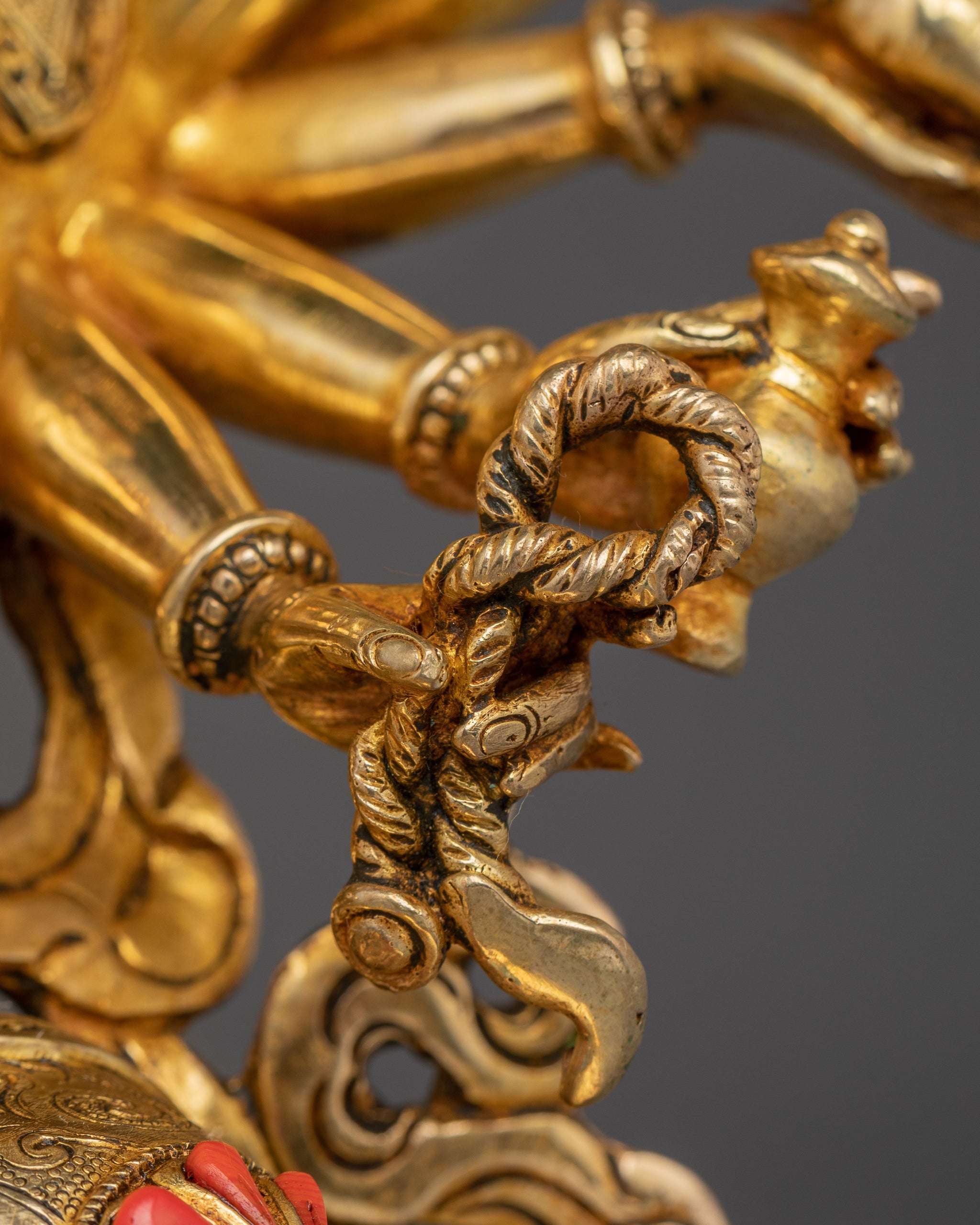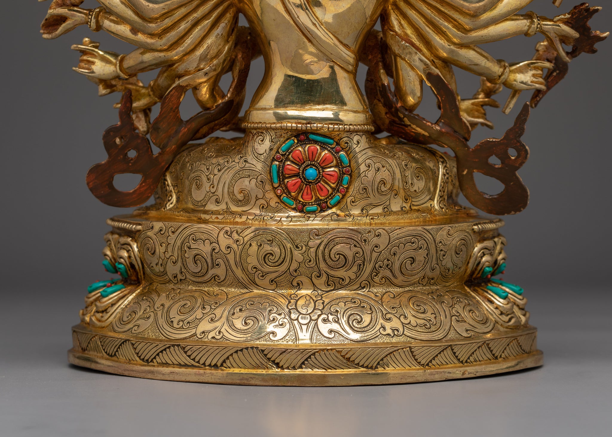 Vajrayogini is stunning. The details are amazing. It's easy to make out her facial expressions, skulls, feet, and the ring of fire around her. You can tell she's handmade. There is a consecration hole in her back.