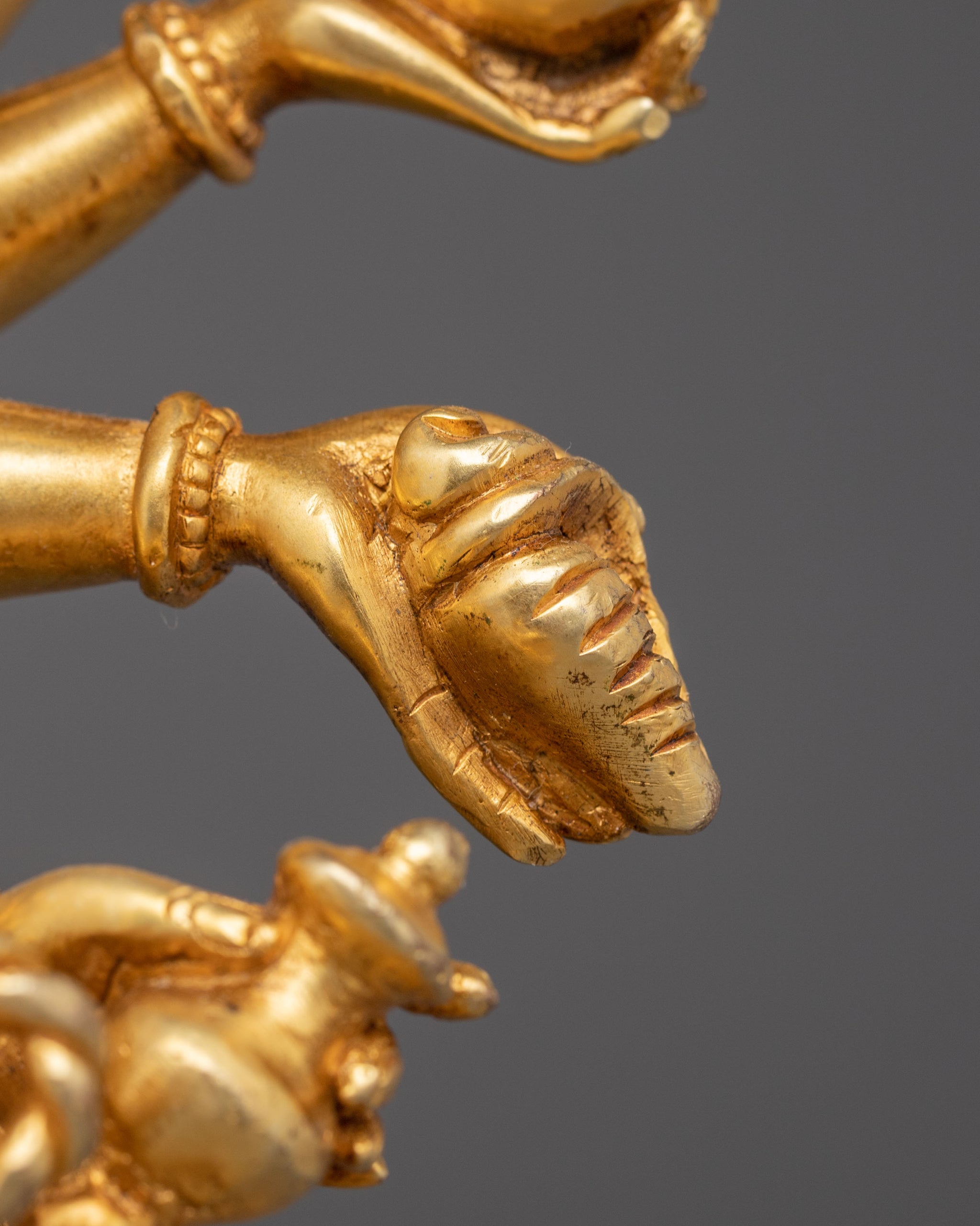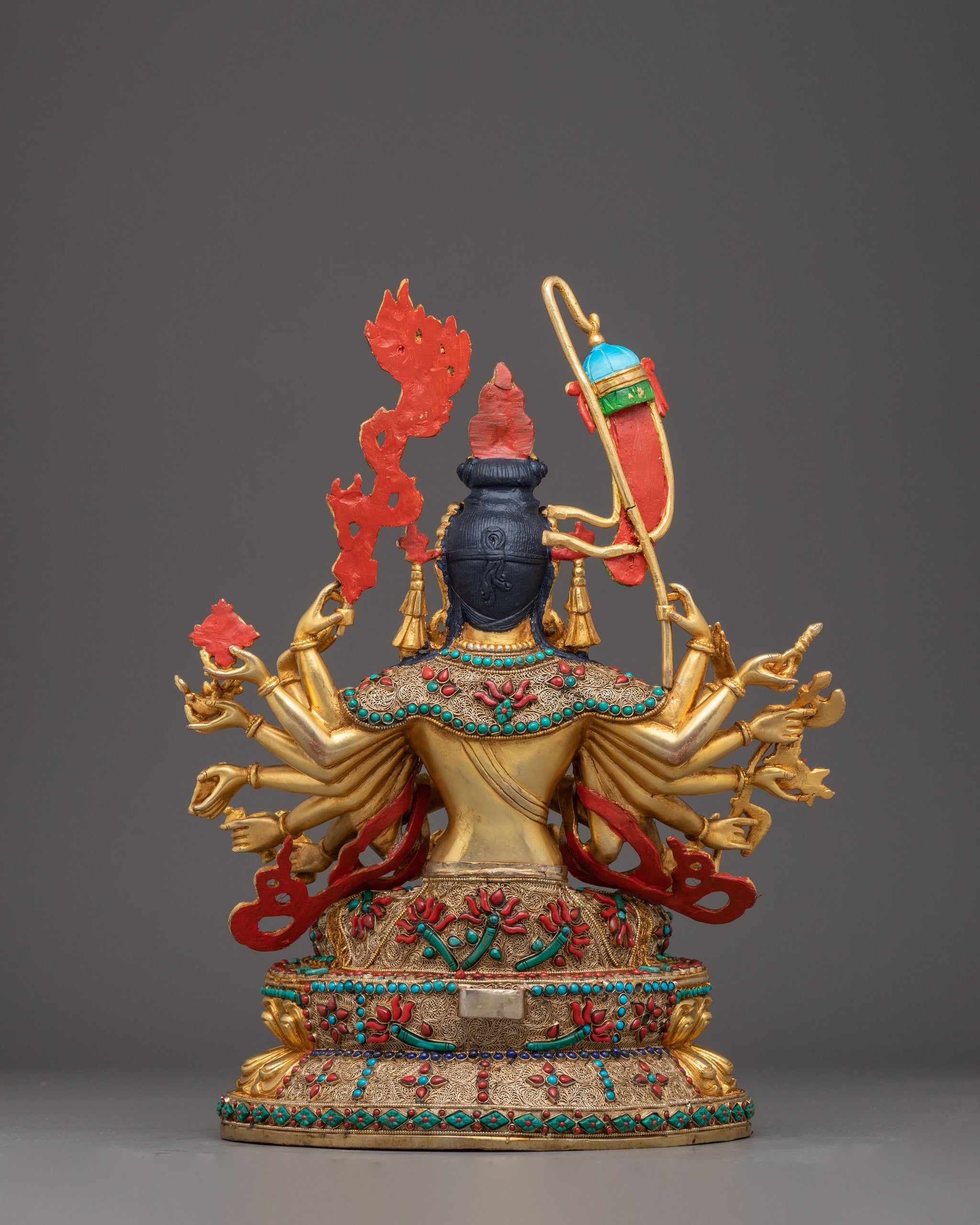 Vajrayogini is stunning. The details are amazing. It's easy to make out her facial expressions, skulls, feet, and the ring of fire around her. You can tell she's handmade. There is a consecration hole in her back.