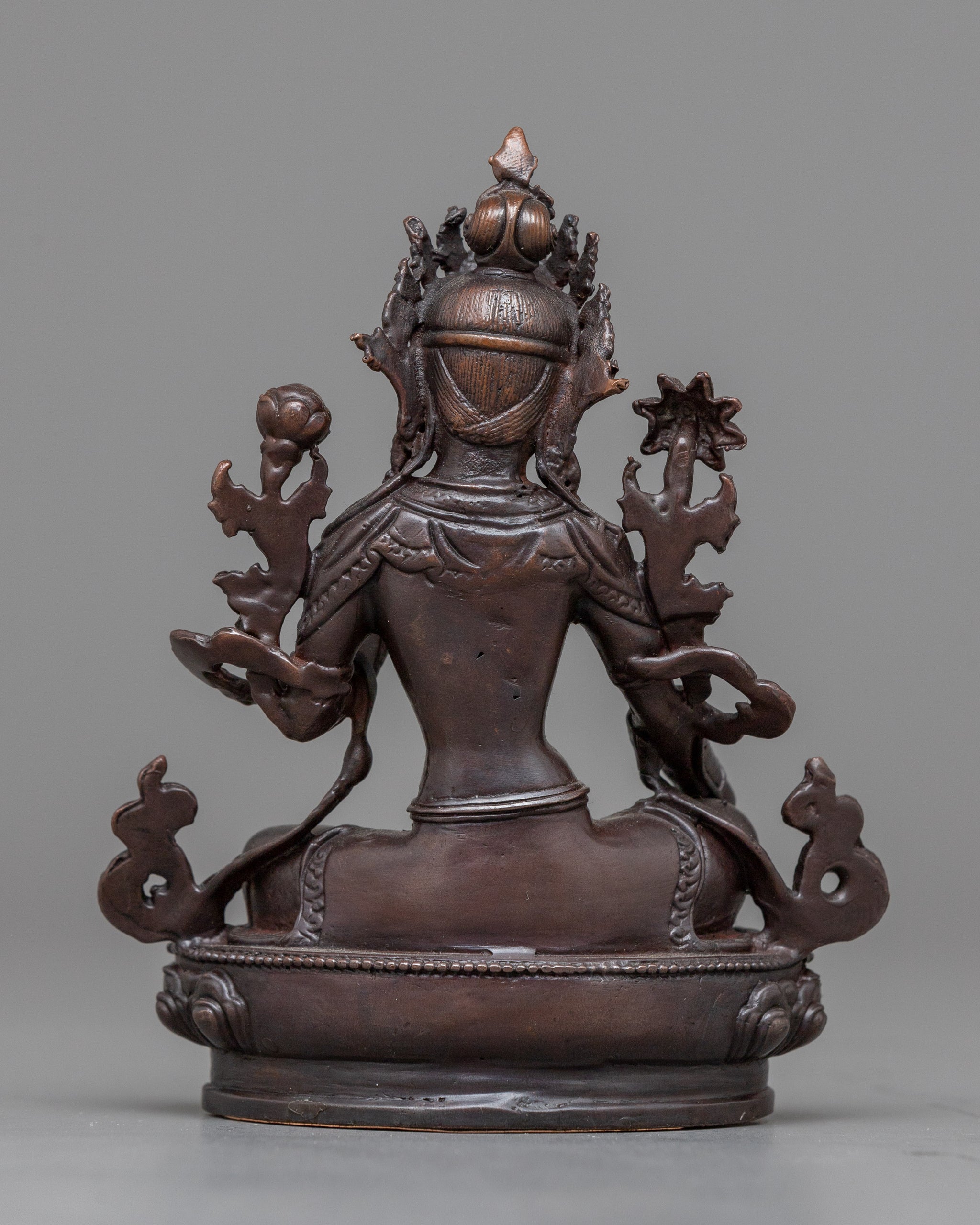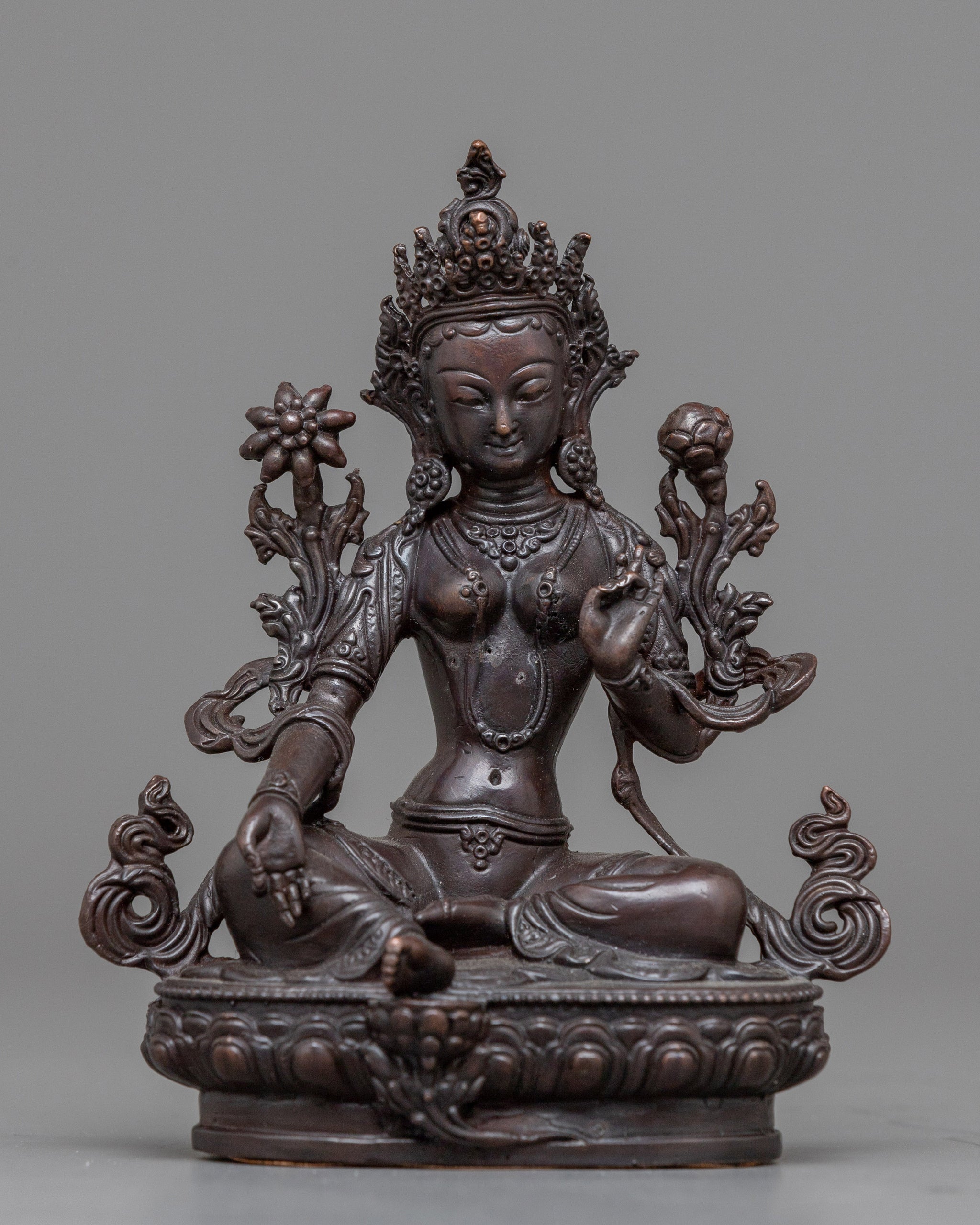 Compact Green Tara Statue | Oxidized Copper Embodiment of Compassion