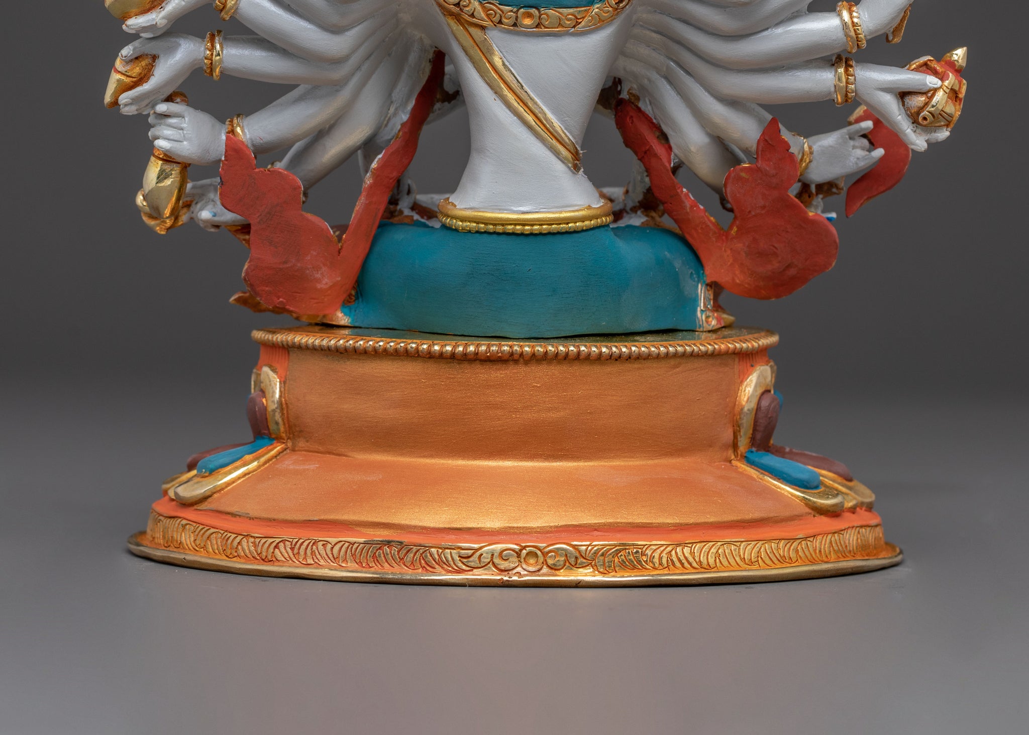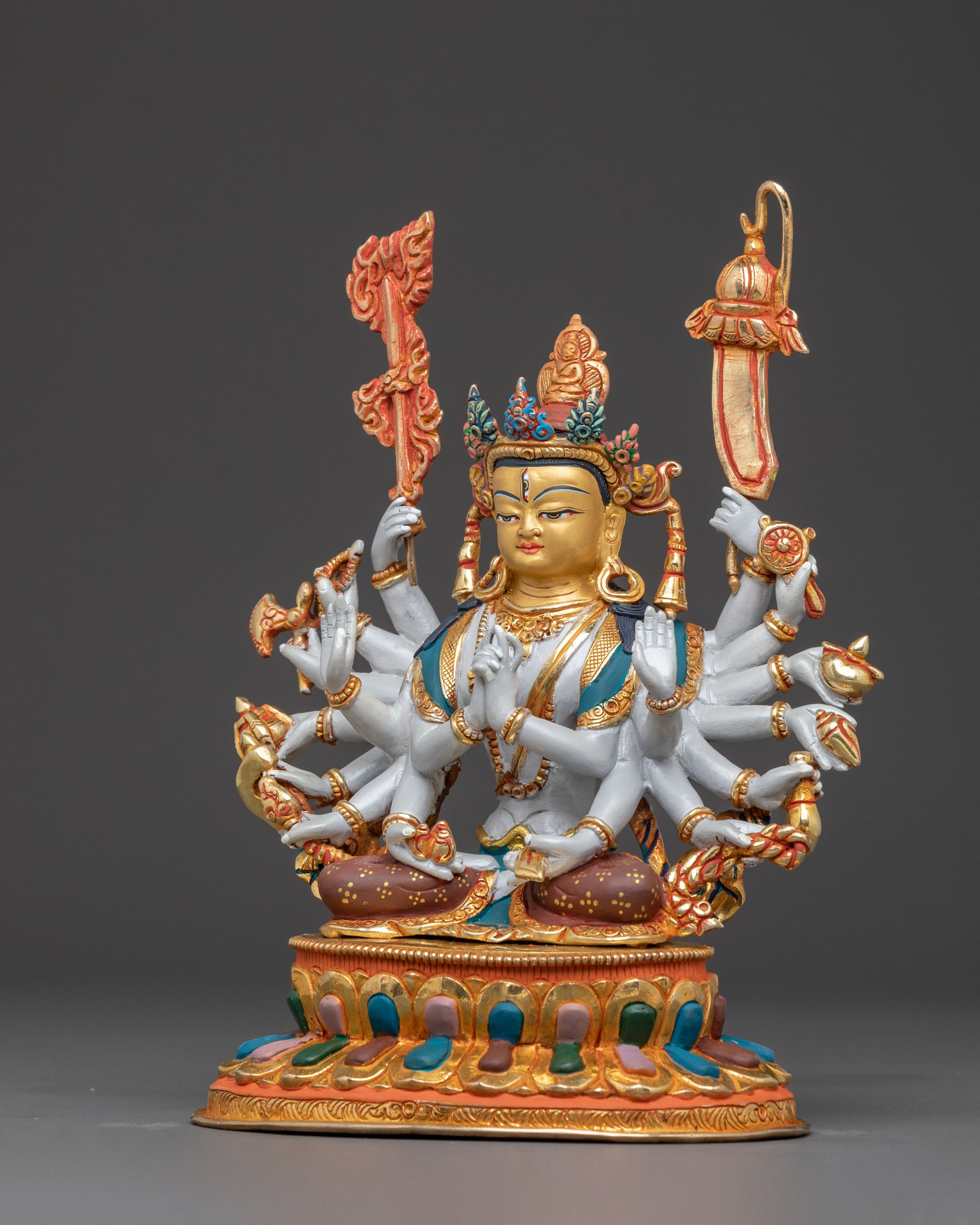 Cundi is revered for her ability to grant wishes, remove obstacles, and purify negative karma. Her numerous arms, each holding symbolic attributes, represent her boundless capacity to assist sentient beings. Meditating upon this goddess inspires profound wisdom and helps practitioners cultivate meritorious virtues, making this a powerful meditation statue for deep practice.