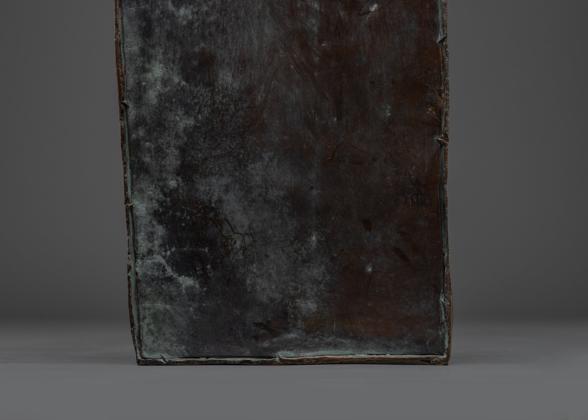 Vajrayogini is stunning. The details are amazing. It's easy to make out her facial expressions, skulls, feet, and the ring of fire around her. You can tell she's handmade. There is a consecration hole in her back.