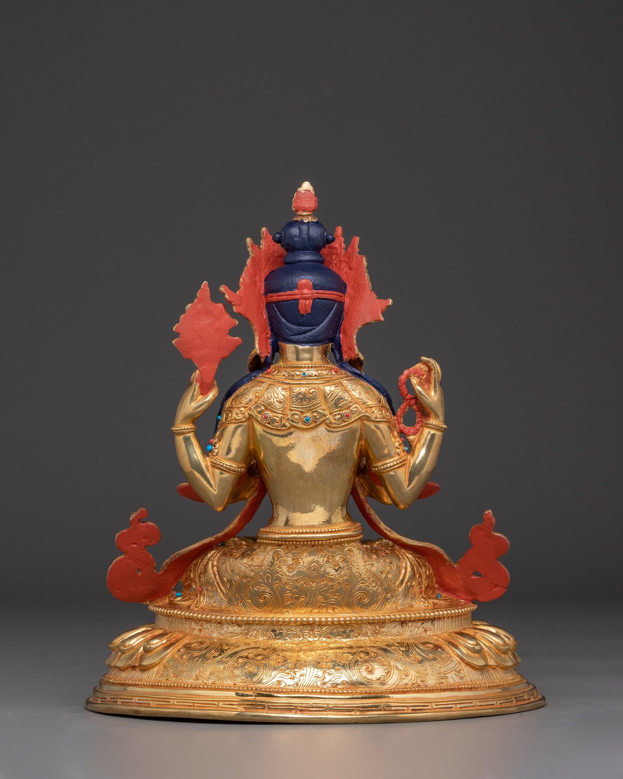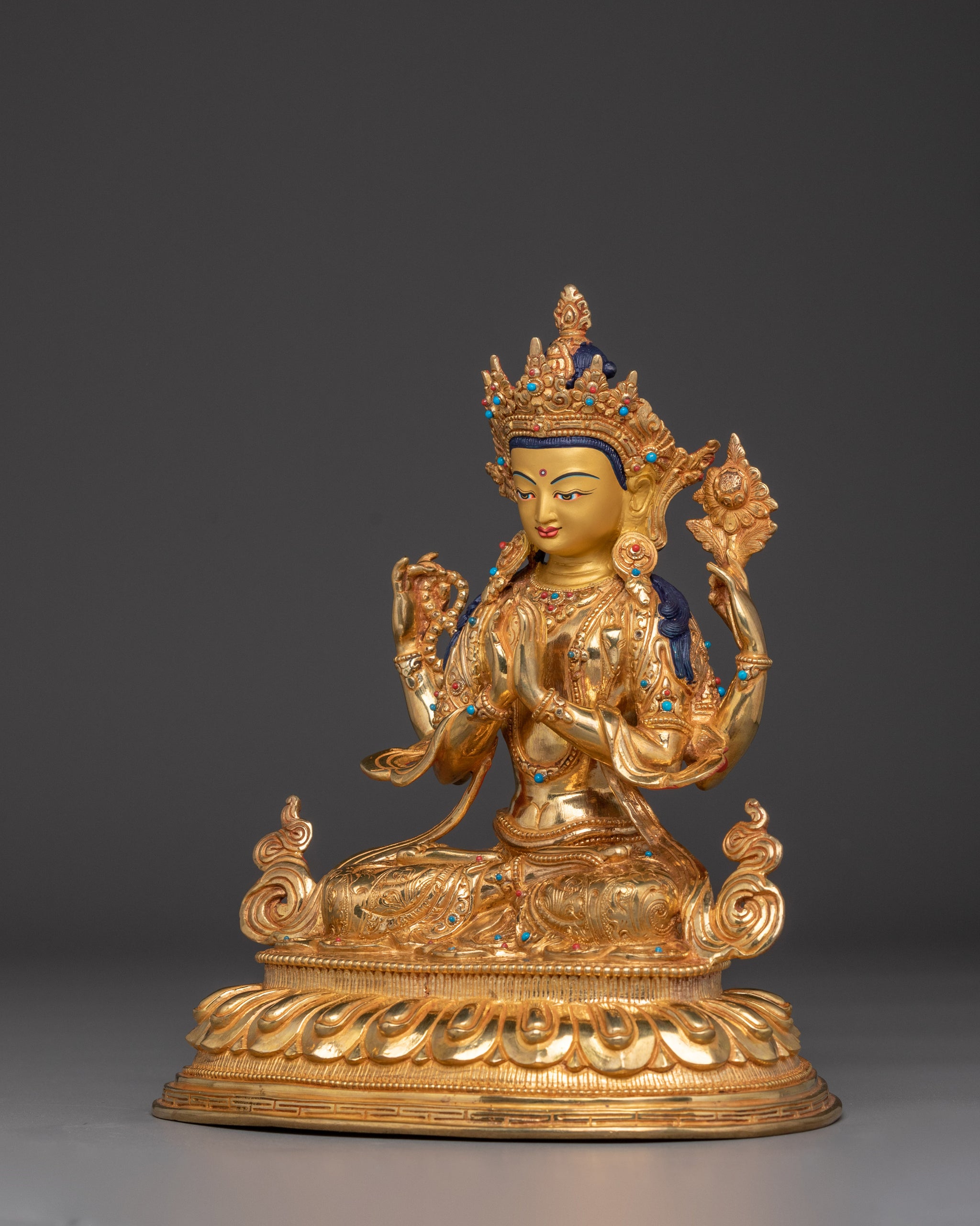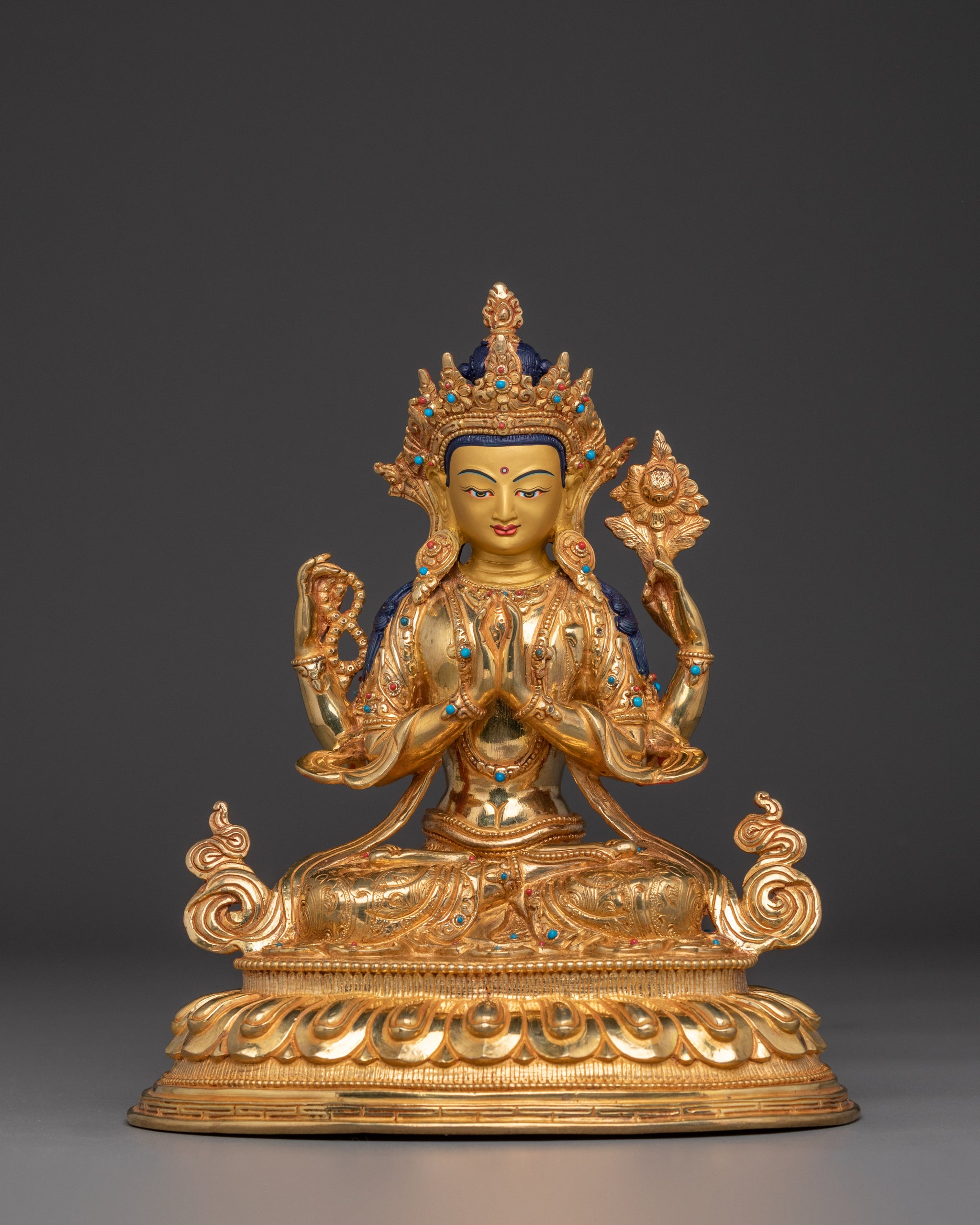 Compassion God Chenrezig Statue | Avalokiteshvara Golden Figurine