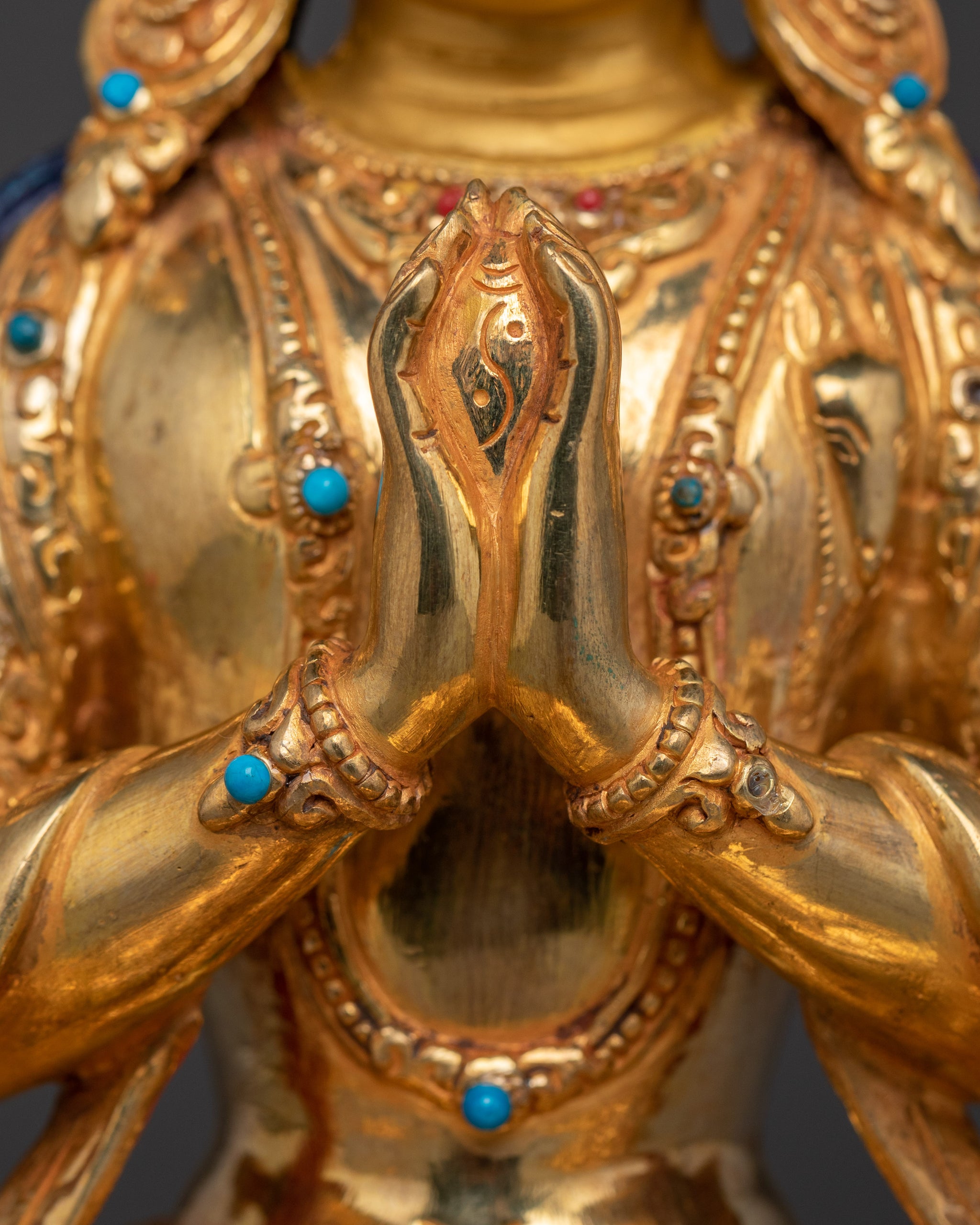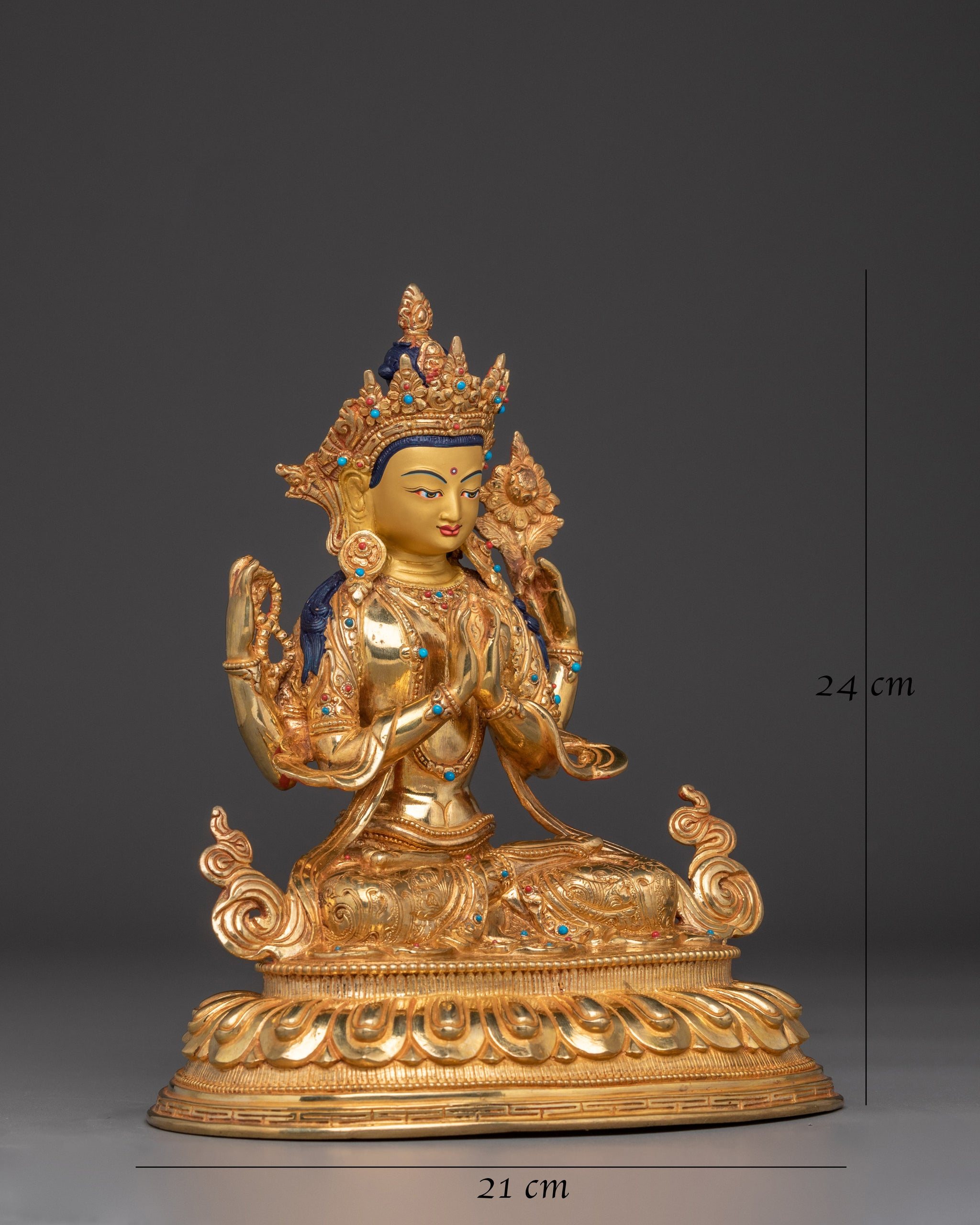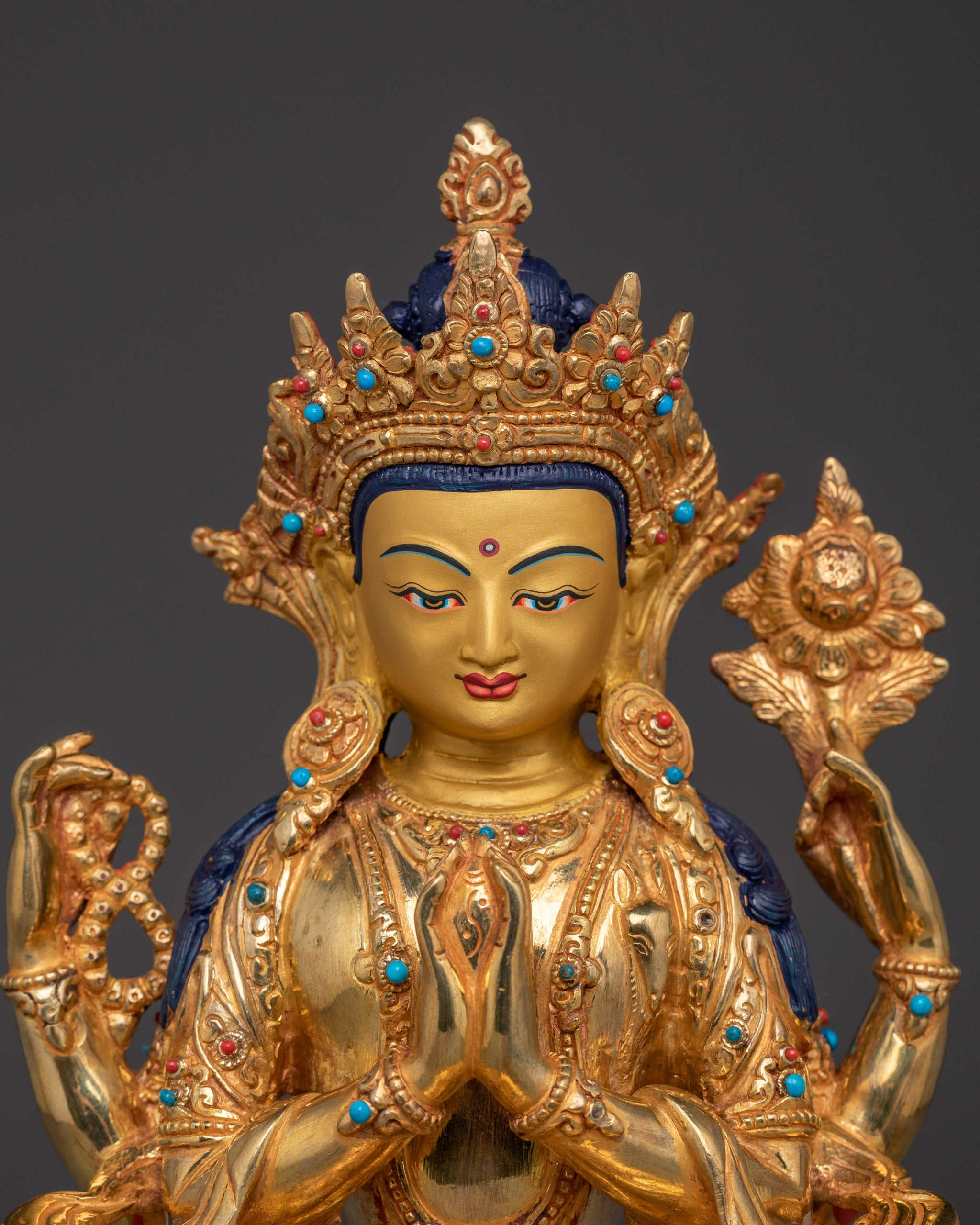Compassion God Chenrezig Statue | Avalokiteshvara Golden Figurine