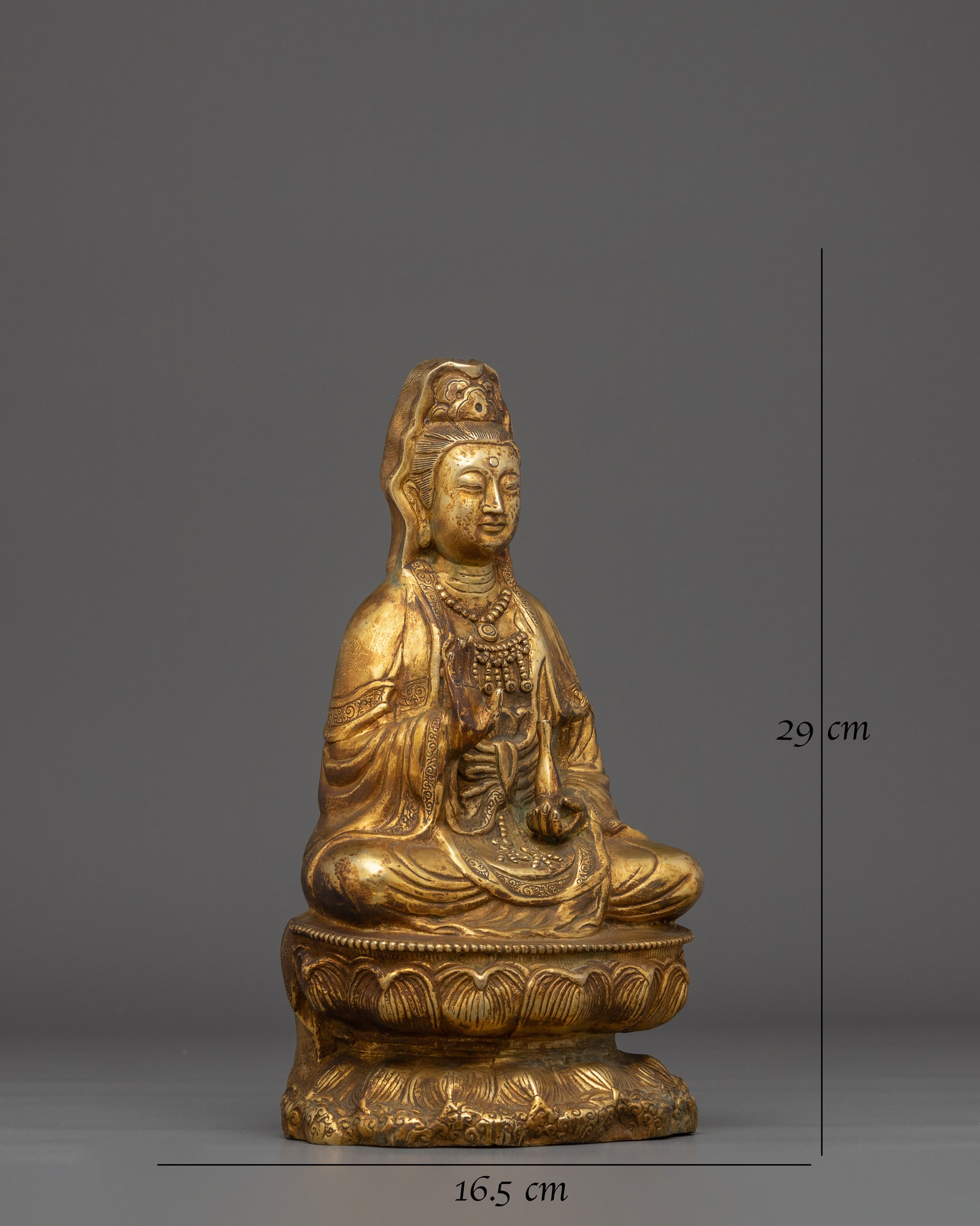 This Copper Guanyin Statue stands 11.4” (29 cm) in height, with a base width of 6.5” (16.5 cm), and weighs 2.48 kg. Made from a sturdy copper body with an antique finish, it exudes serene elegance and spiritual grace, making it a perfect addition to personal altars, meditation corners, or as a meaningful decorative piece for any space seeking tranquility.