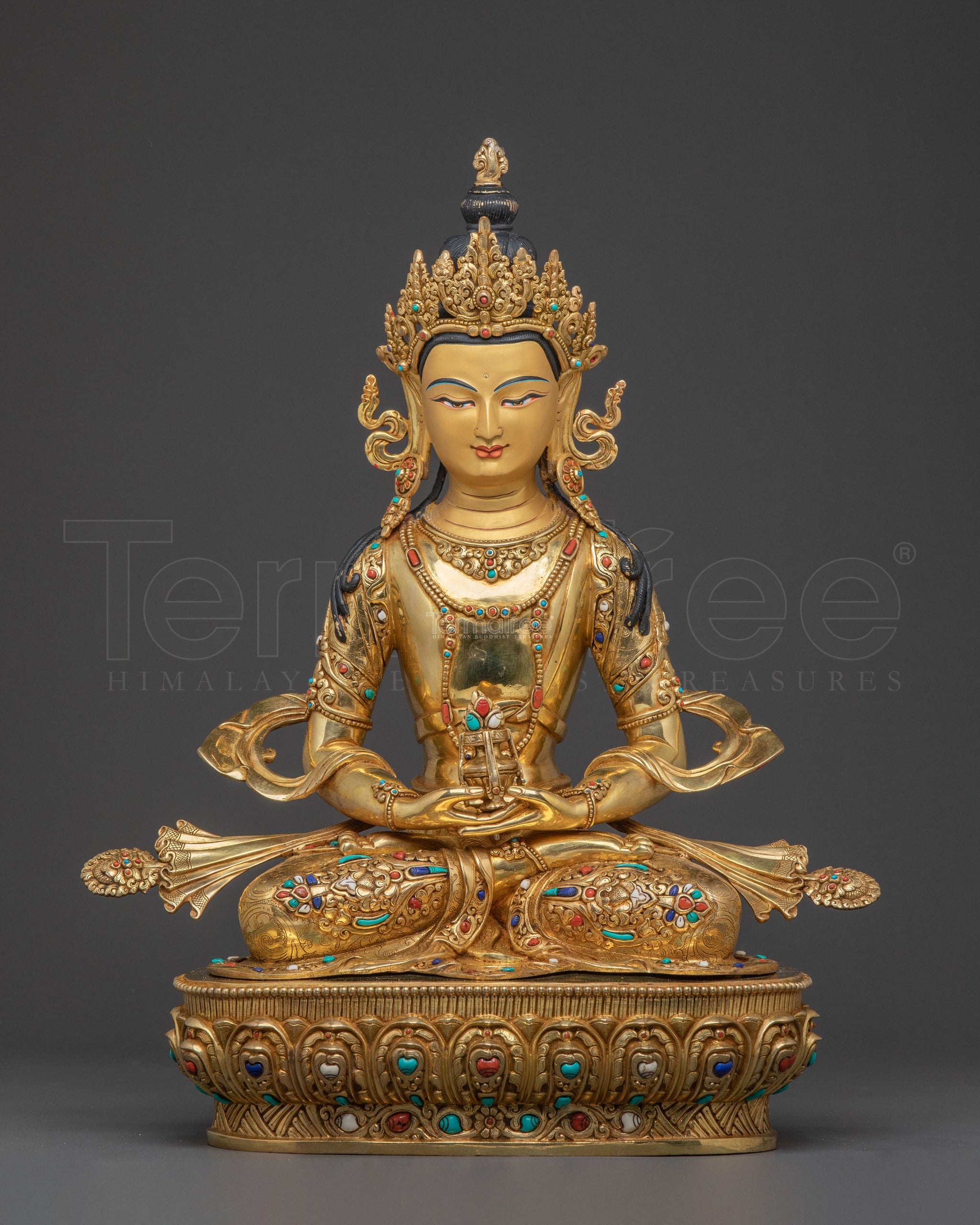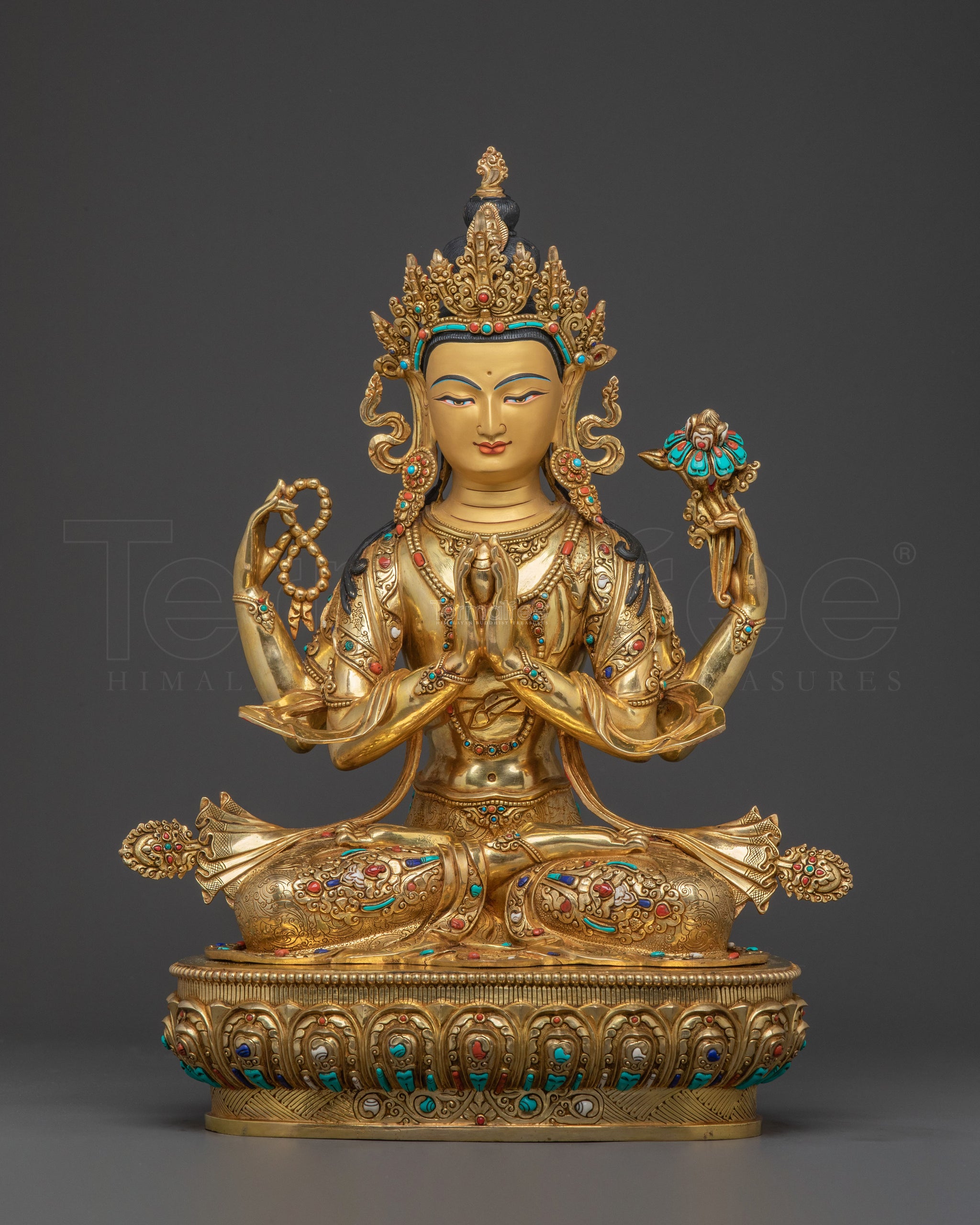 Material: 24K Gold Gilded, Acrylic Paintings, Copper Body, Gemstones, Handcarved Gemstones