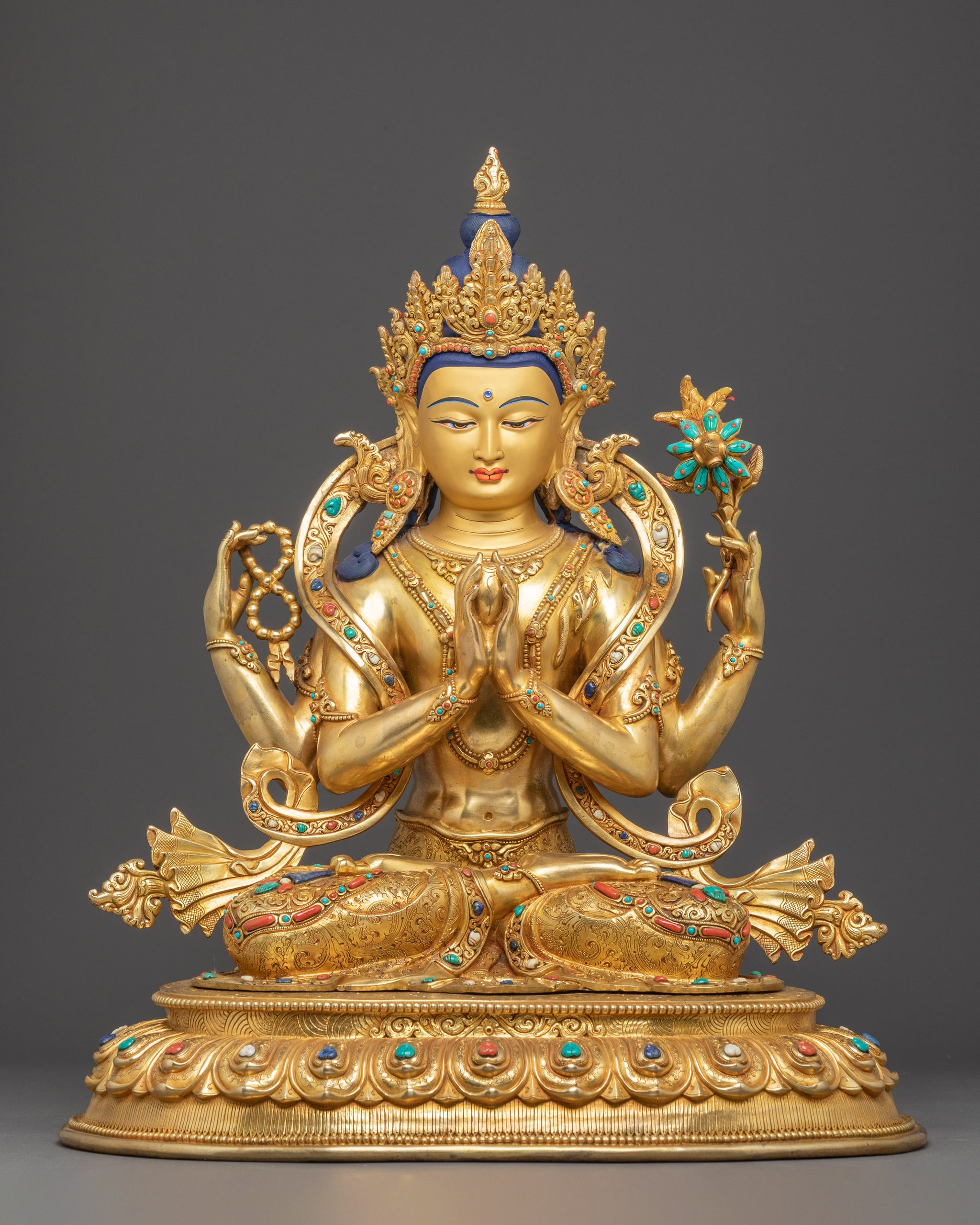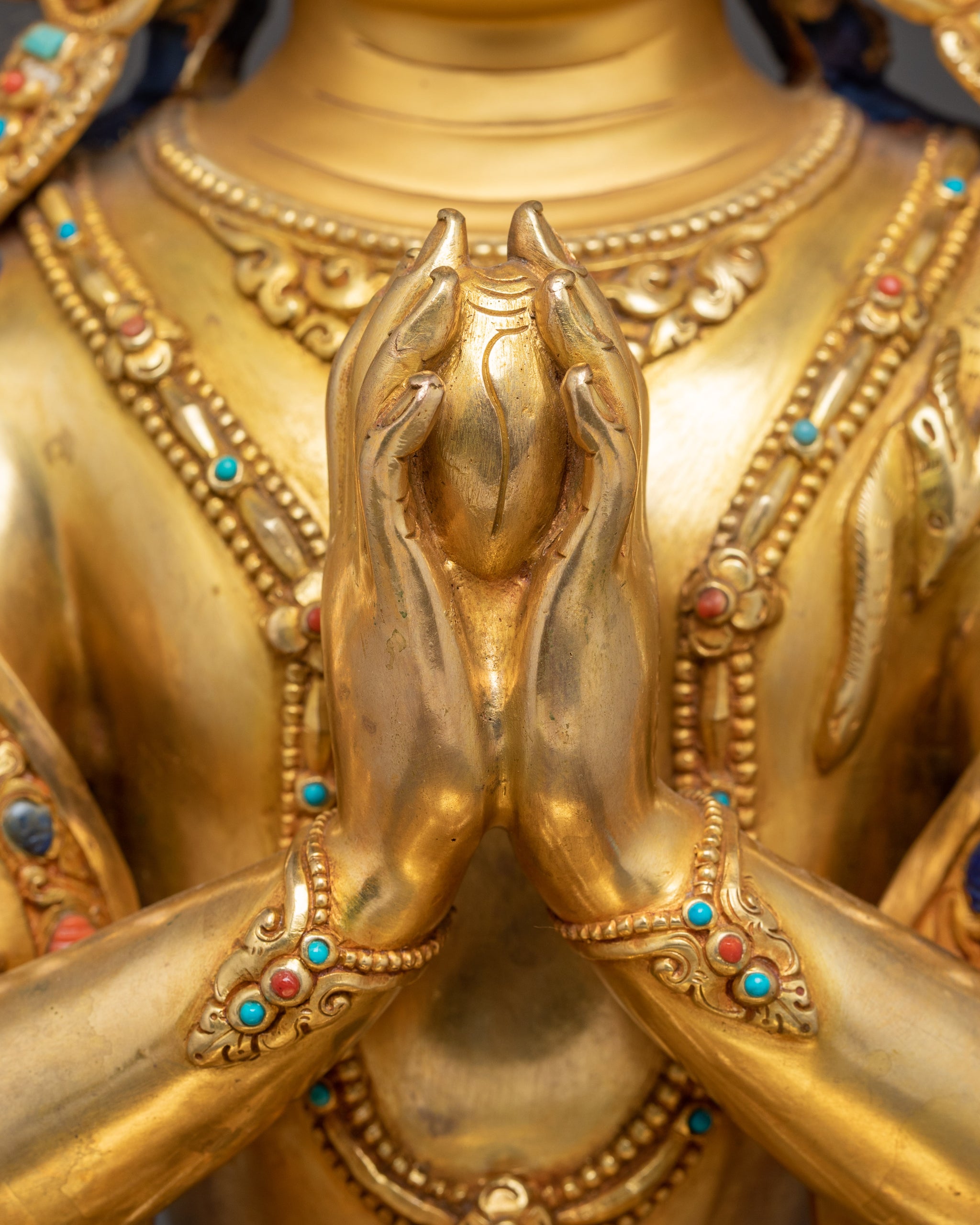 Handmade Copper Statue of Bodhisattva Chenrezig | Compassion Bodhisattva
