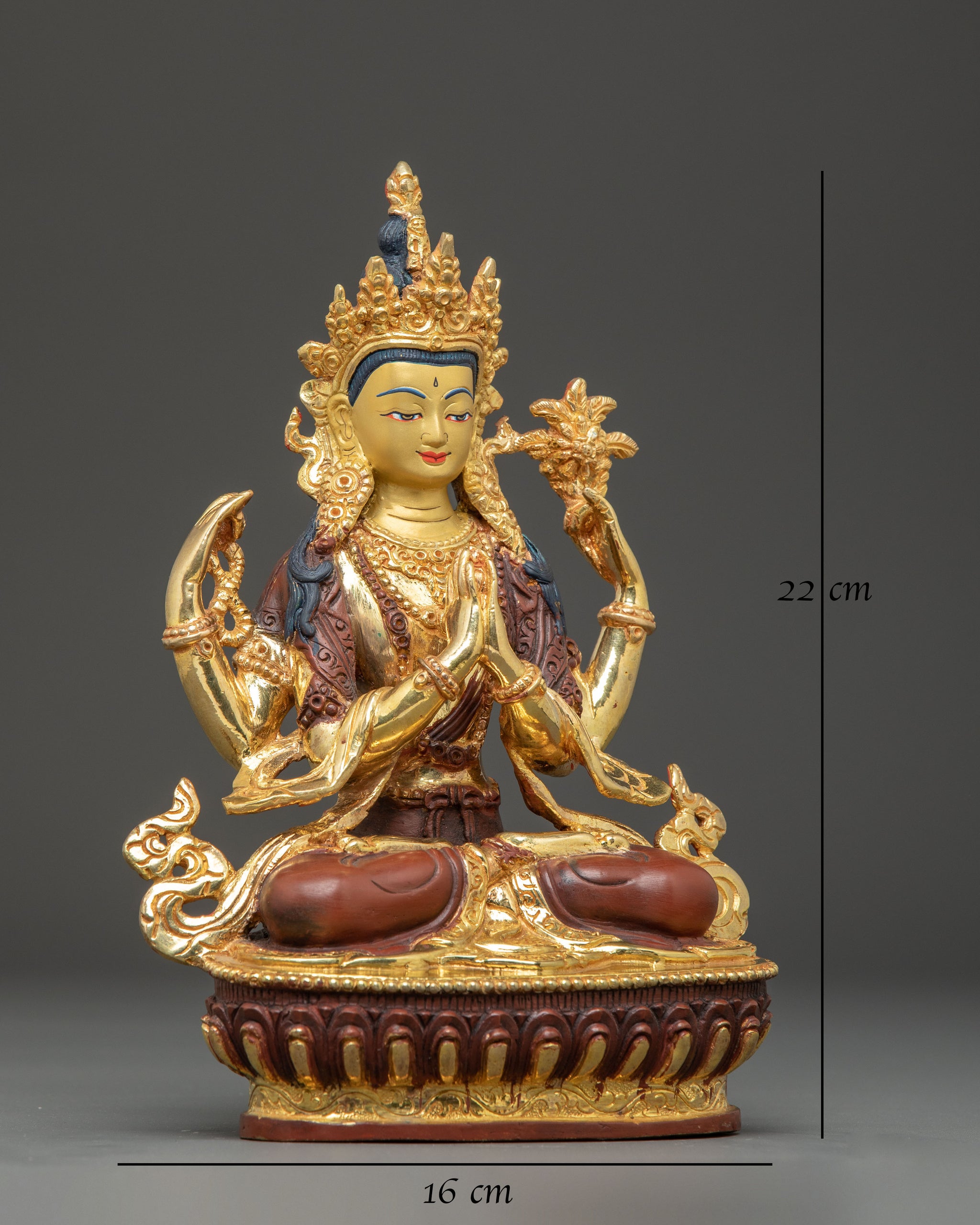 Handcrafted Copper Statue of Chenrezig Bodhisattva | Avalokiteshvara Figurine