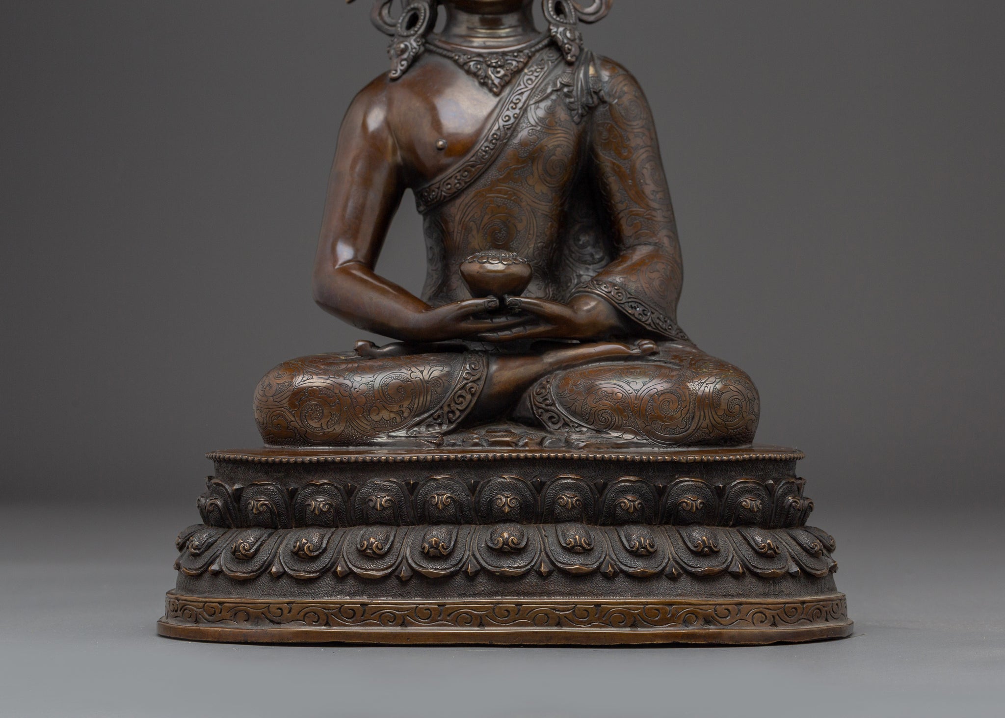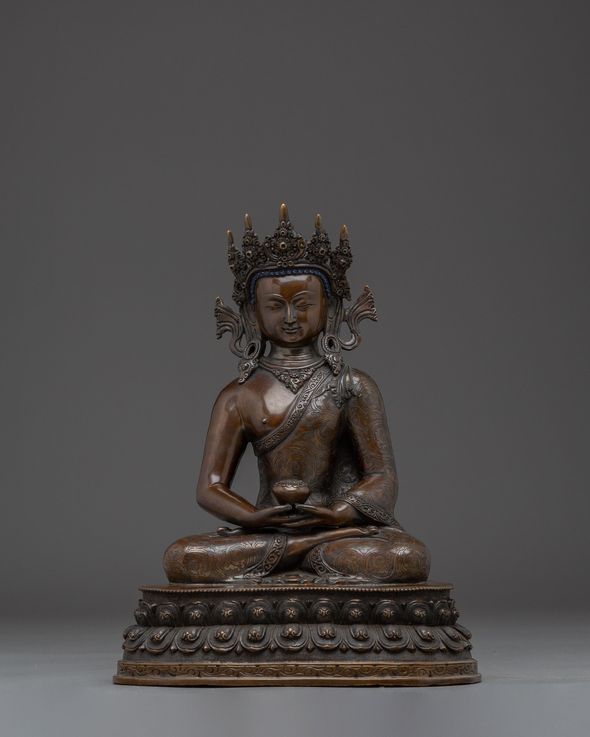 Crown Amitabha Buddha Statue in Copper | Sculpture of the Buddha of Infinite Light