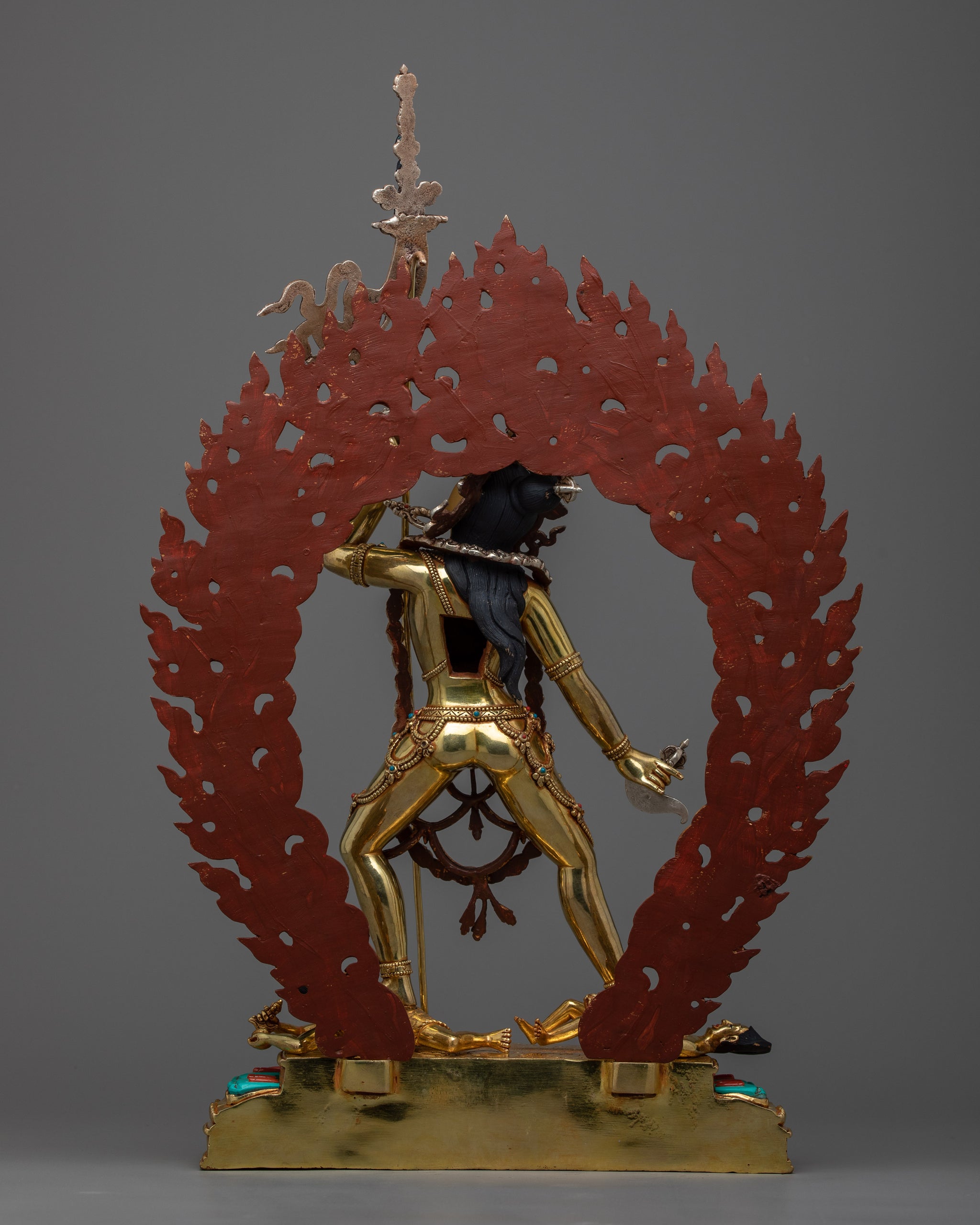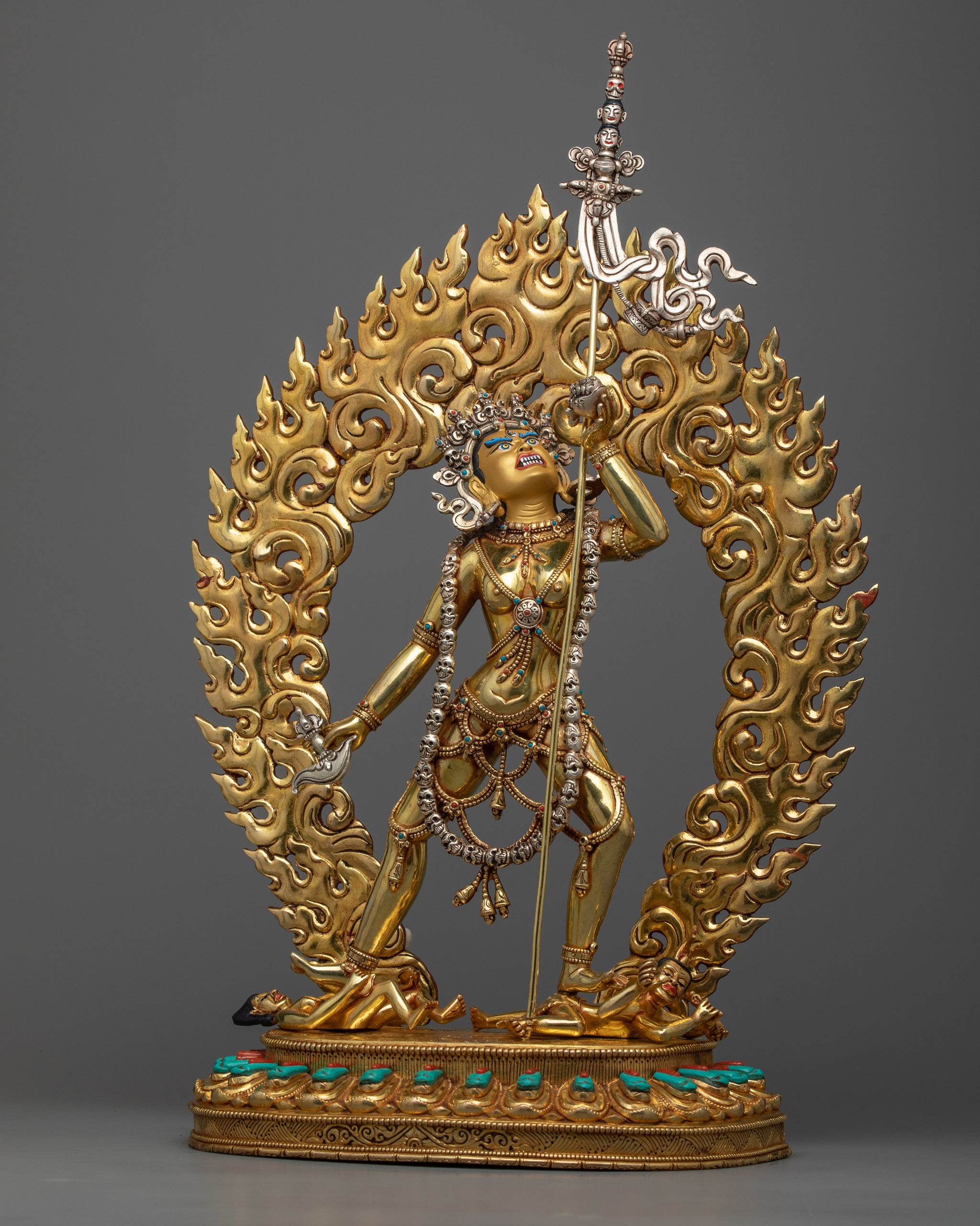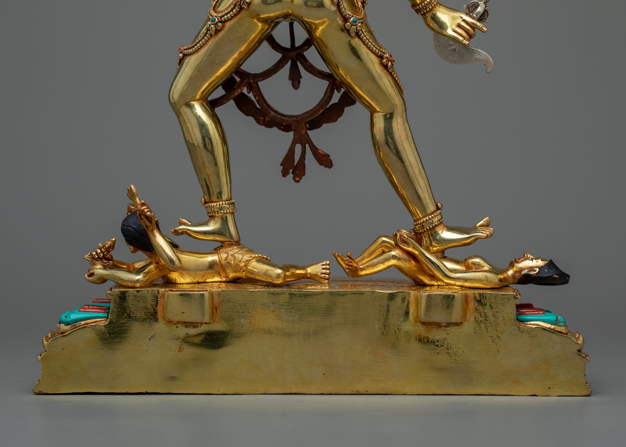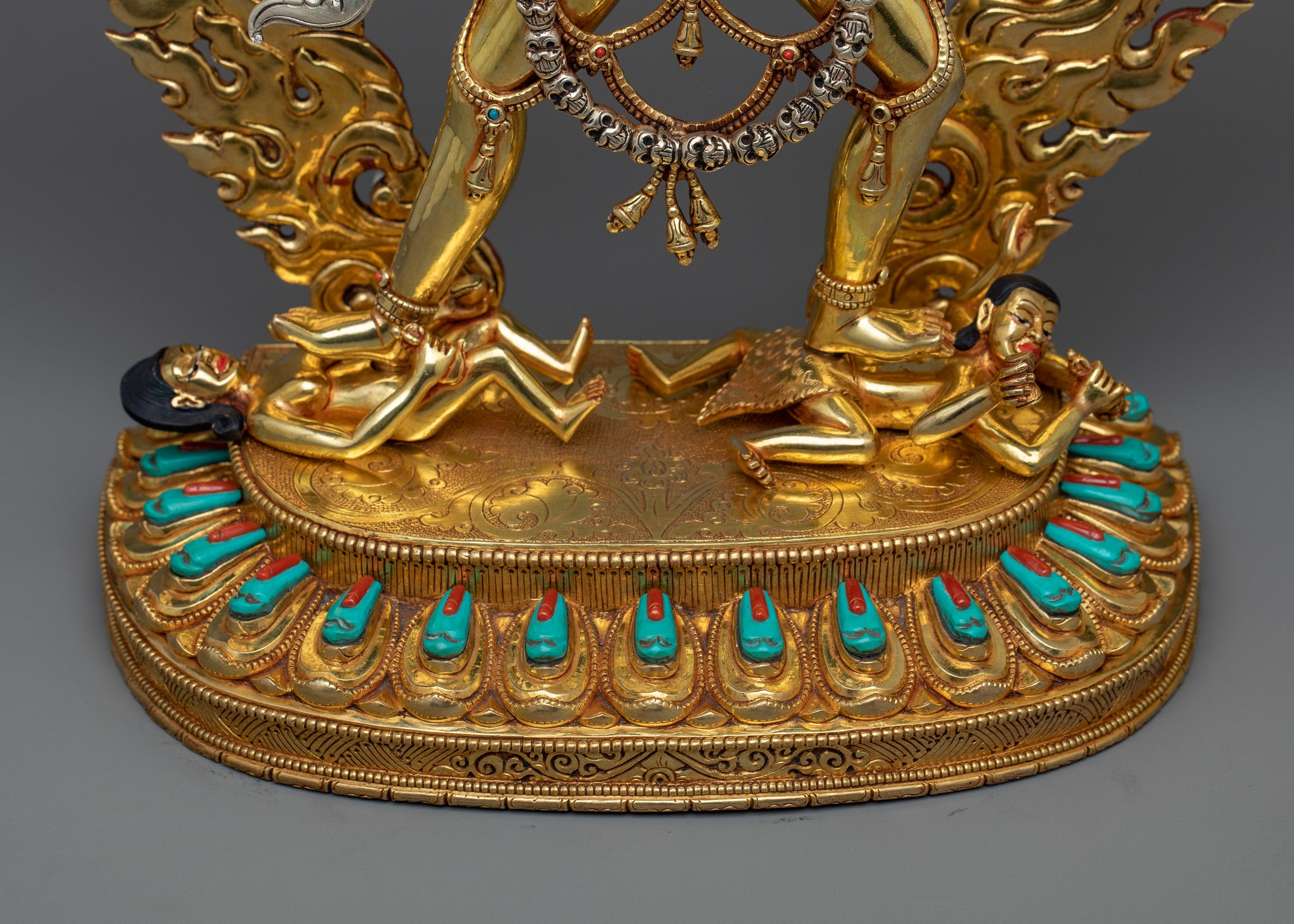 Vajrayogini, often known as the "Diamond Sow," is a major deity in Tibetan Buddhism. She is known as a Dakini, or female embodiment of enlightenment, and is connected with transforming energy and the ability to transcend conventional human constraints. Every detail of our Vajrayogini Dakini statue has been carefully created to reflect the spiritual story of this magnificent figure. It captures the essence of Vajrayogini's teachings and illustrates the path to enlightenment that she represents. This statue not only enhances the aesthetics of your home but it also acts as a powerful reminder of spiritual enlightenment and transformation.