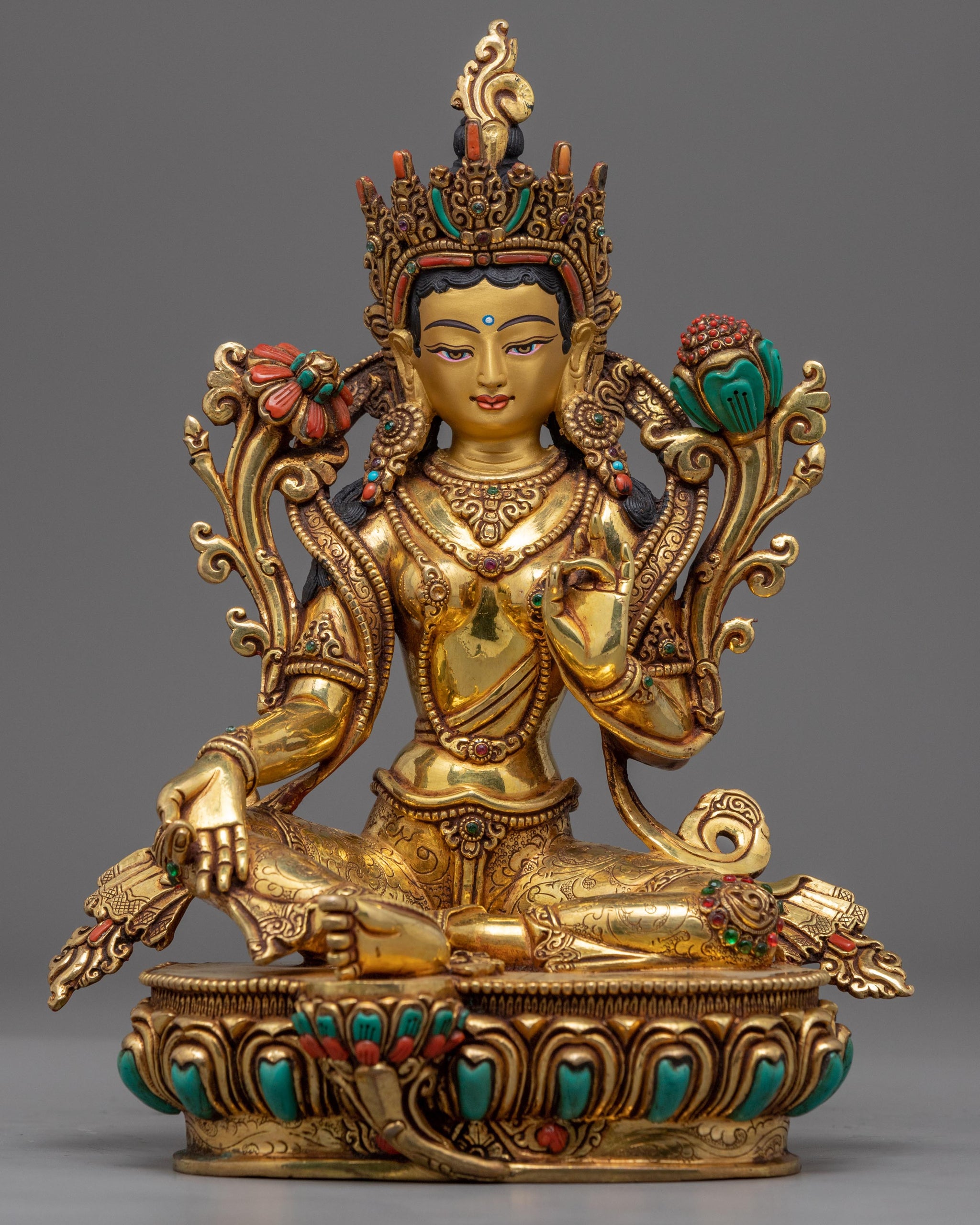 Genuine 24K Gold Gilded Green Tara Statue for Deity Meditation Practice