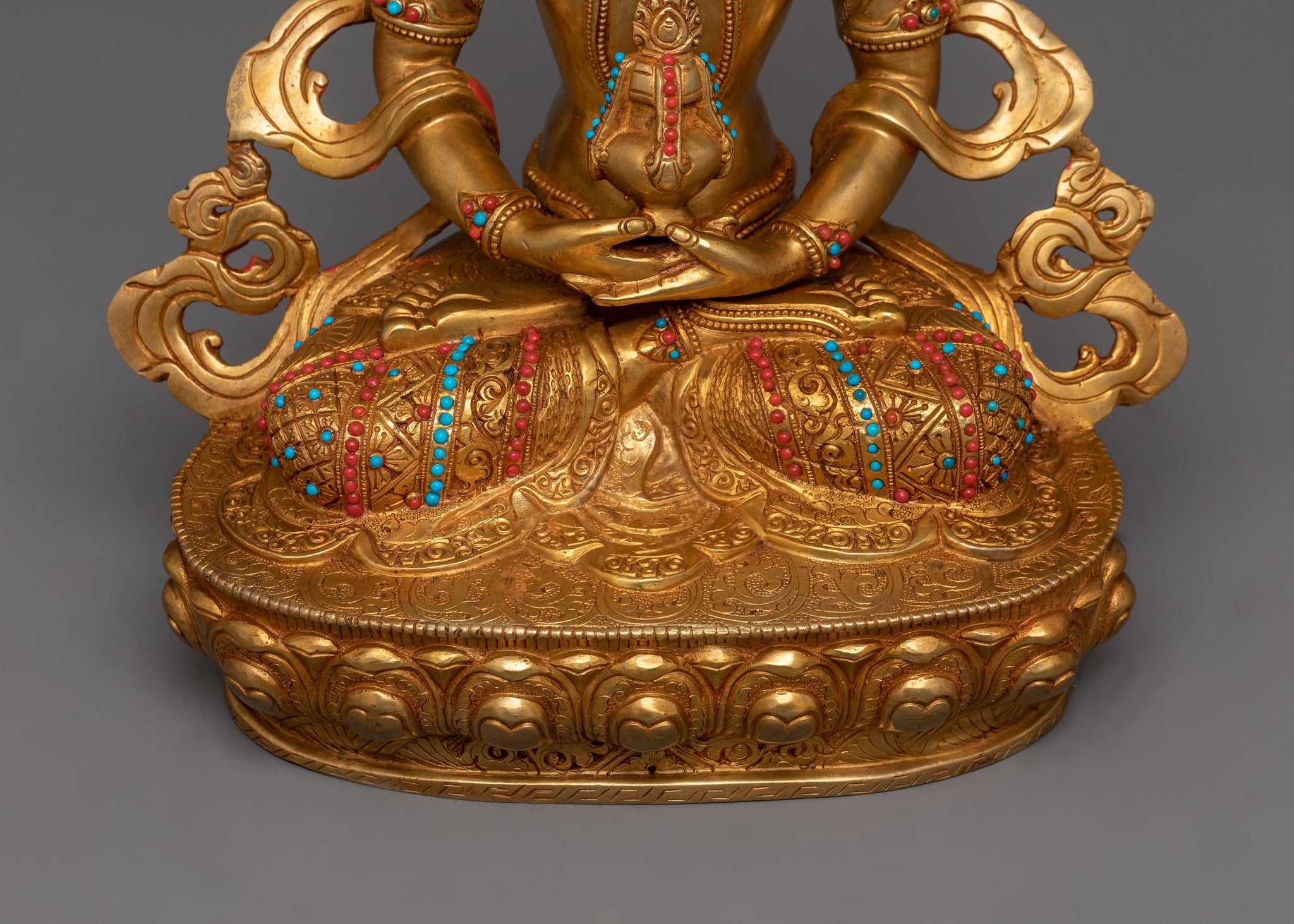 Amitayus Deity of Long Life Statue | 24K Gold Gilded Copper with Gemstones