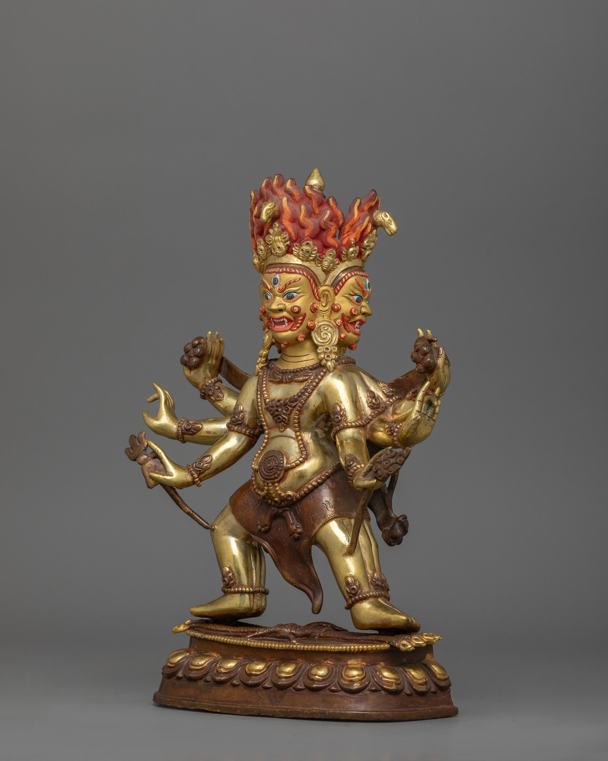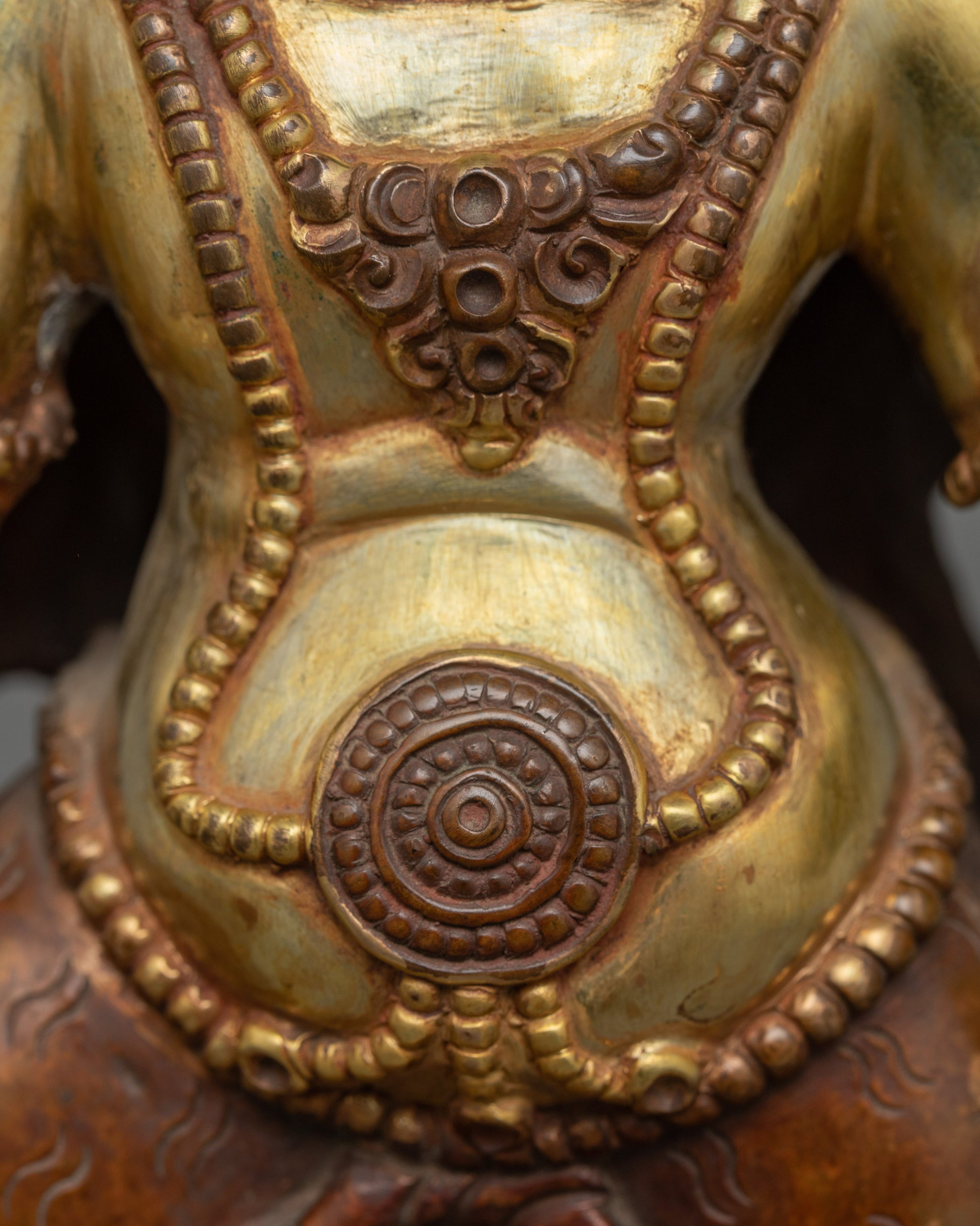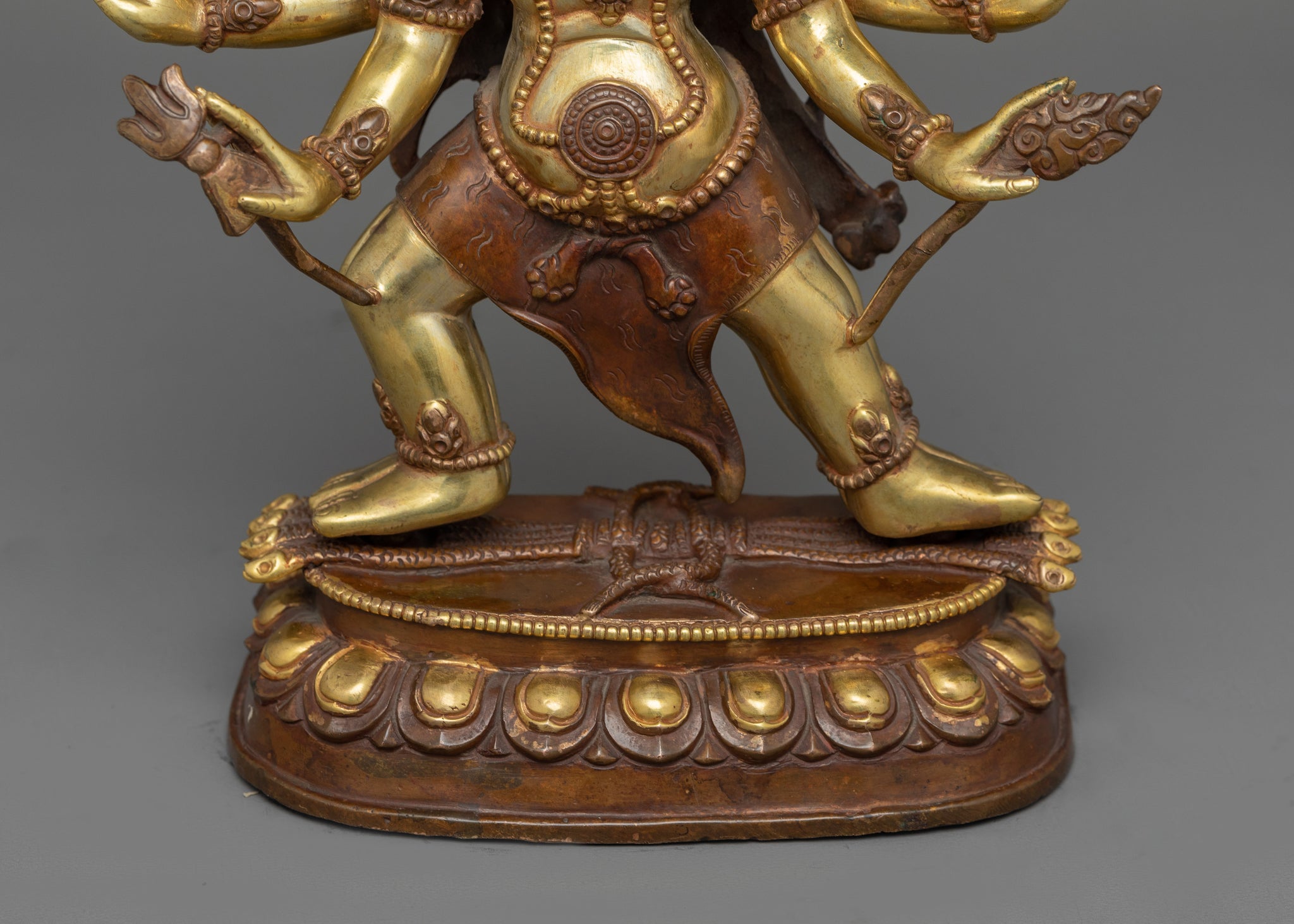 Sacred Dharmapala Statue with 24K Gold Gilding, Oxidized Copper Body and Spiritual Protection
