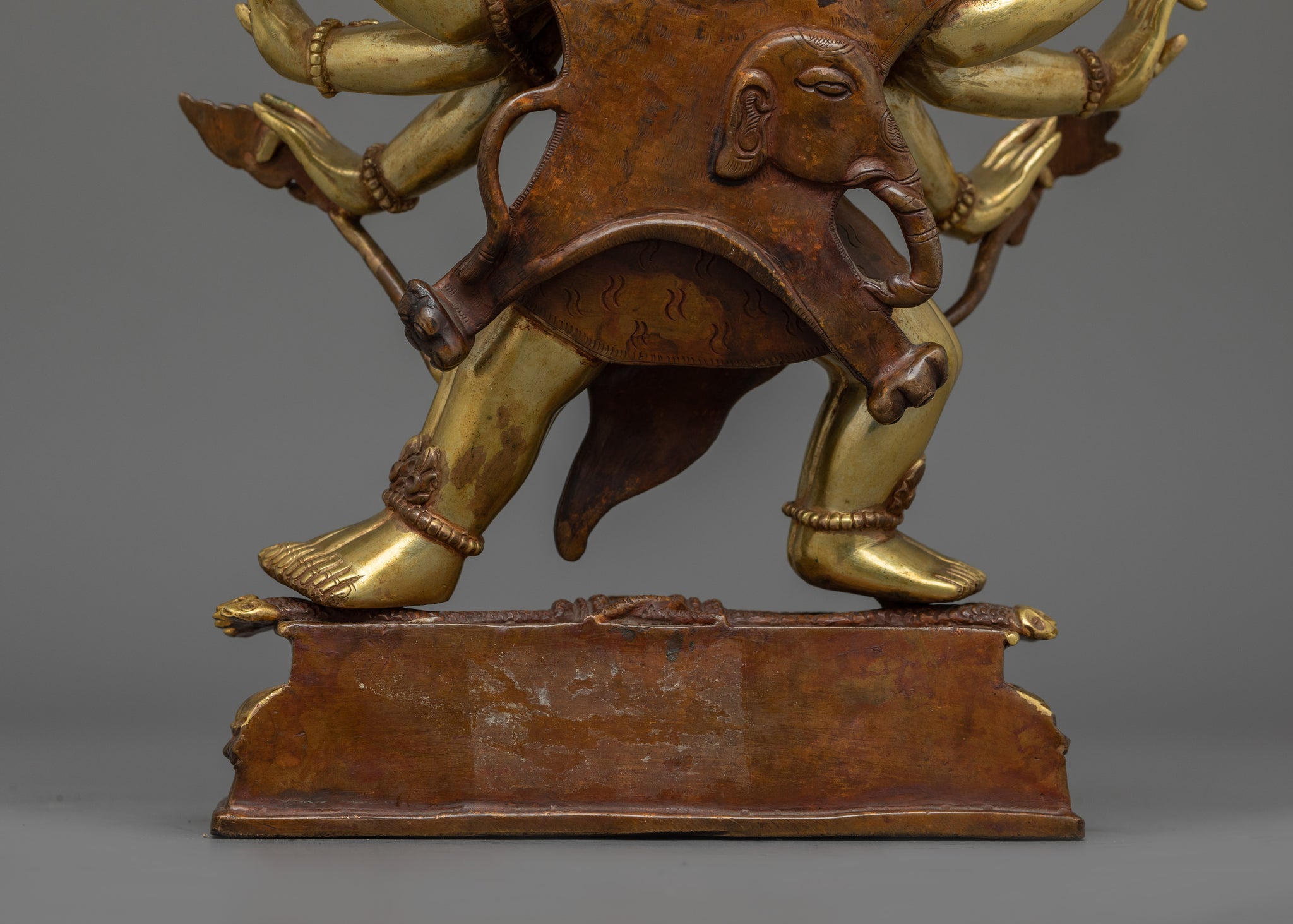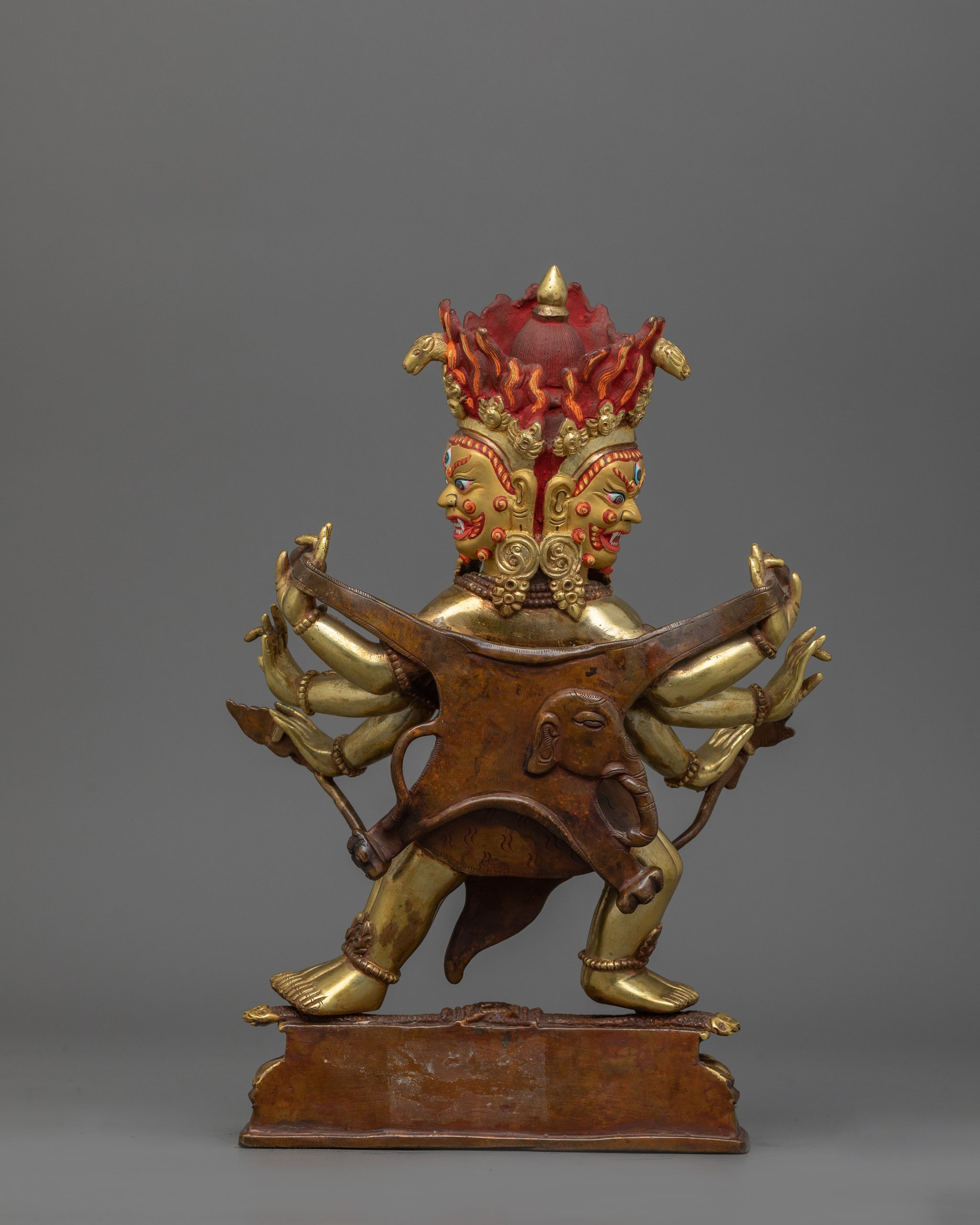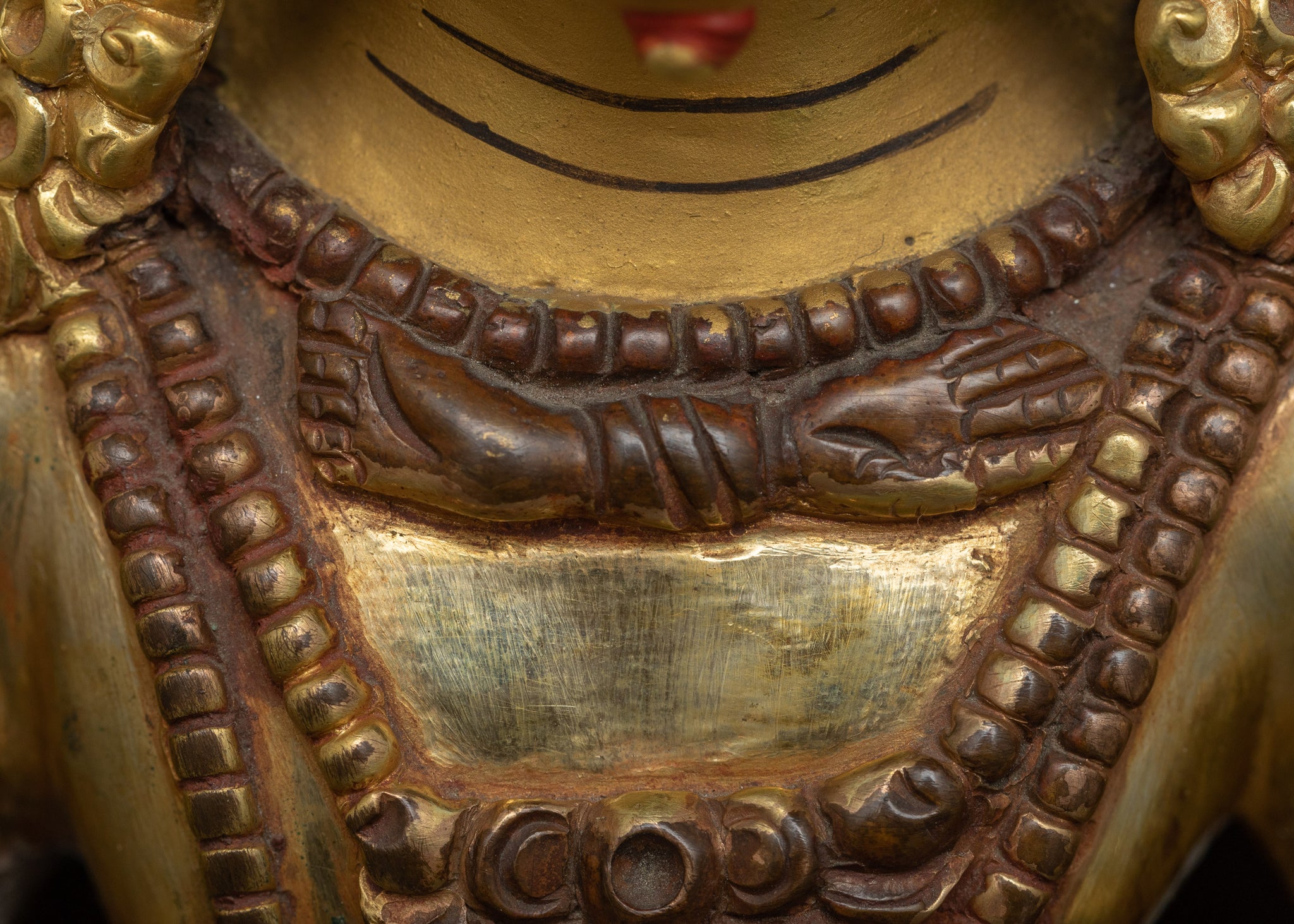 Sacred Dharmapala Statue with 24K Gold Gilding, Oxidized Copper Body and Spiritual Protection