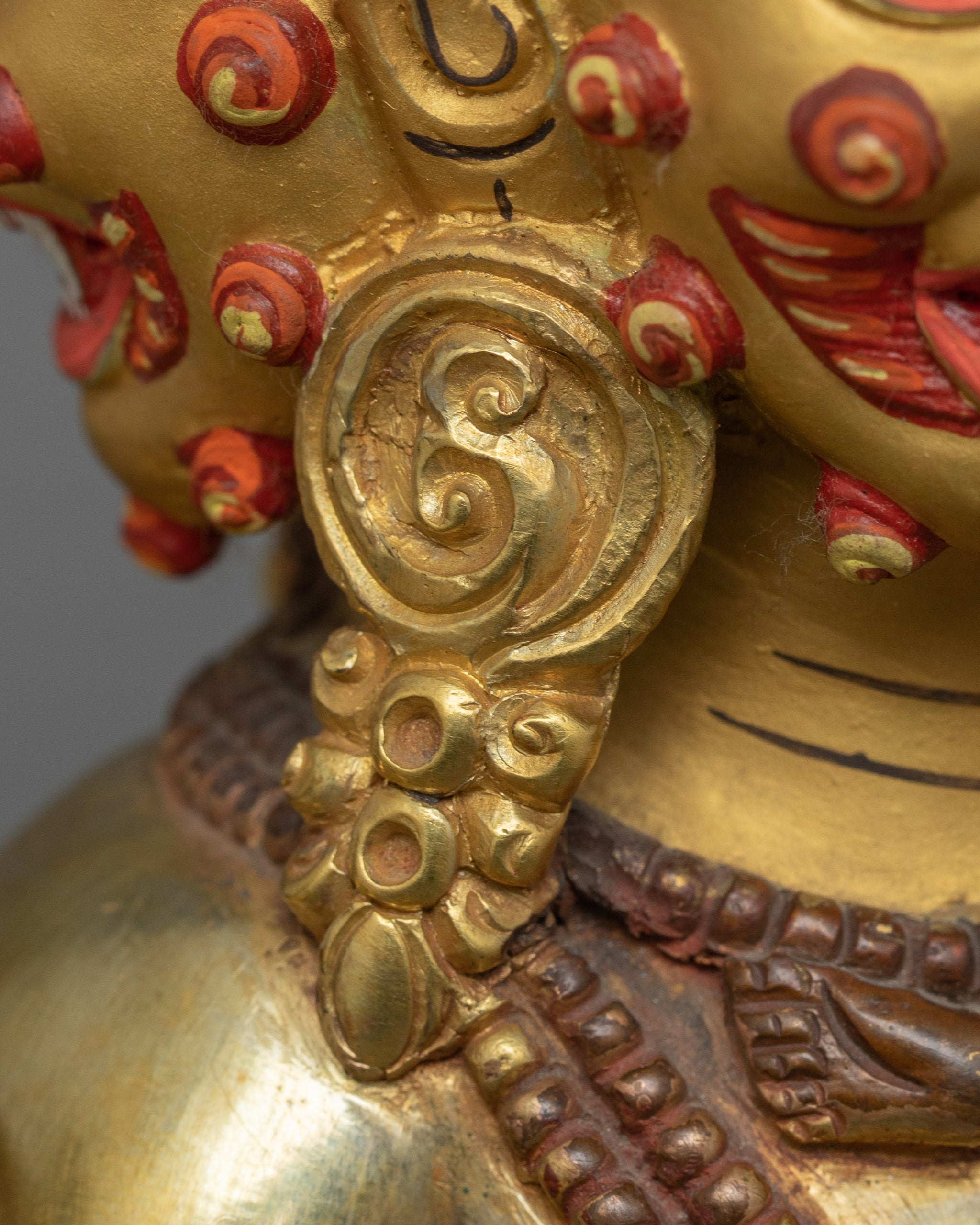 Dorje Lekpa, also known as Vajra Sadhu, is a wrathful Dharmapala, revered for dispelling obstacles and safeguarding spiritual practitioners. His dynamic form, encircled by fiery aureoles, symbolizes the purifying force of wisdom and compassion. Whether placed on an altar or as part of a Buddhist shrine, this statue invites strength, protection, and transformative energy into your meditation practice.