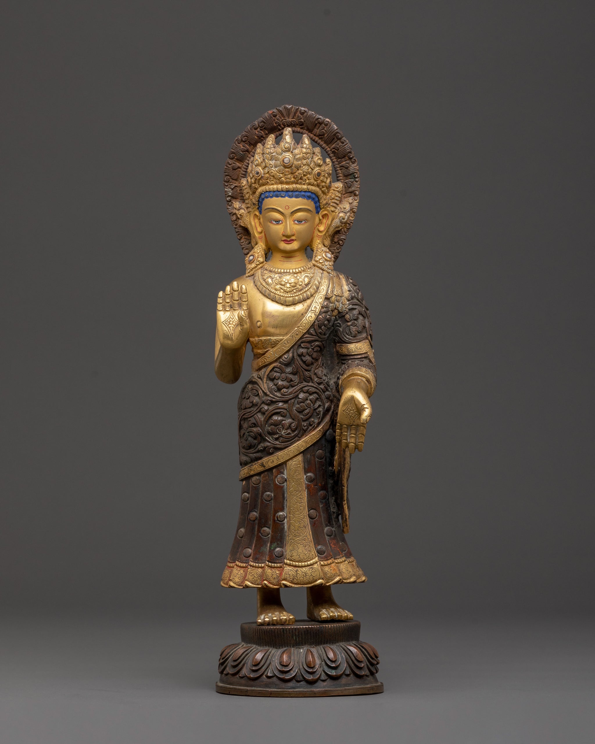 I am thoroughly impressed with the Ratnasambhava statue. The artistic quality is exceptional; the finish is incredibly delicate, and the image itself transmits a profound sense of peace and serenity. It arrived in pristine condition, thanks to the robust wooden crating.