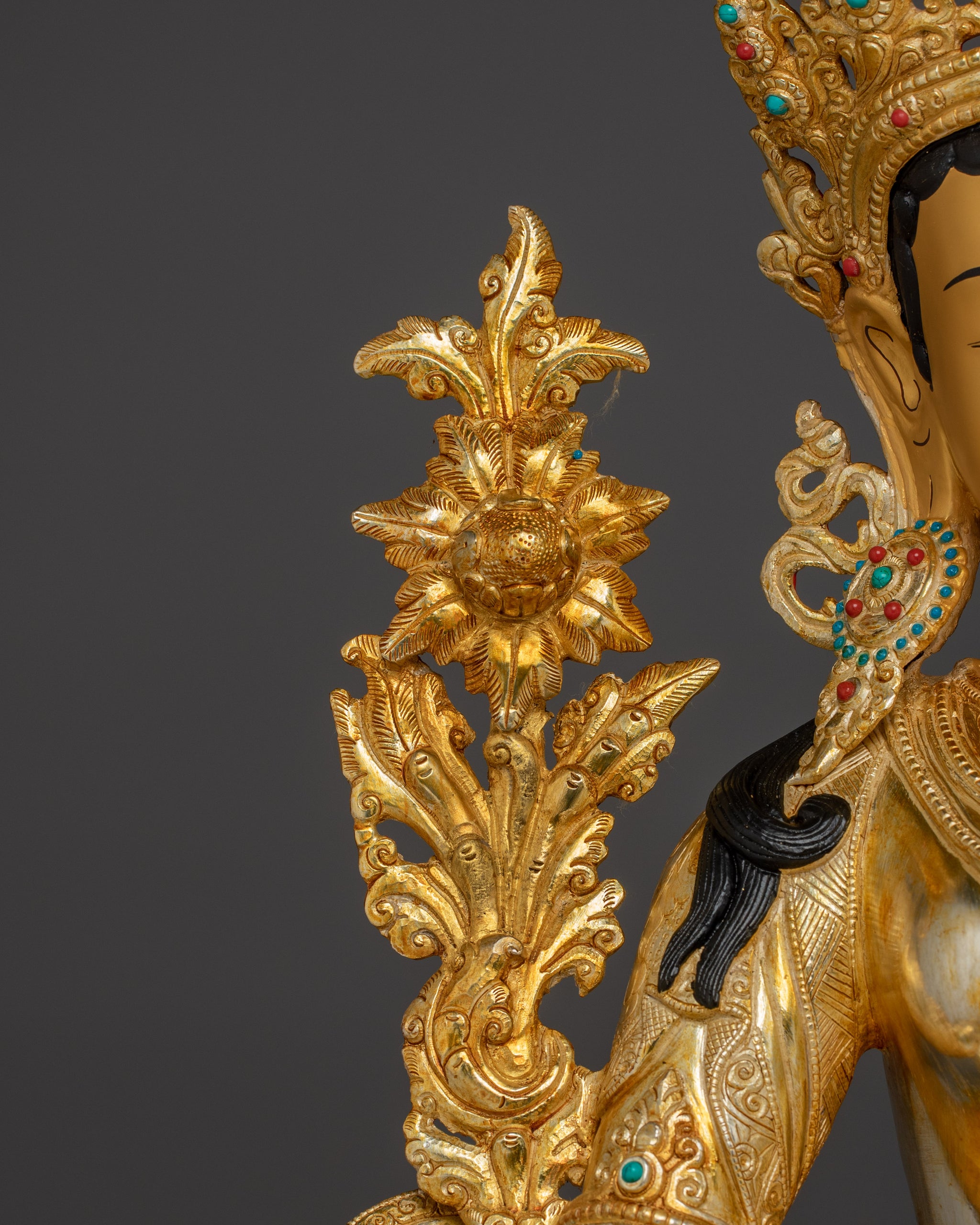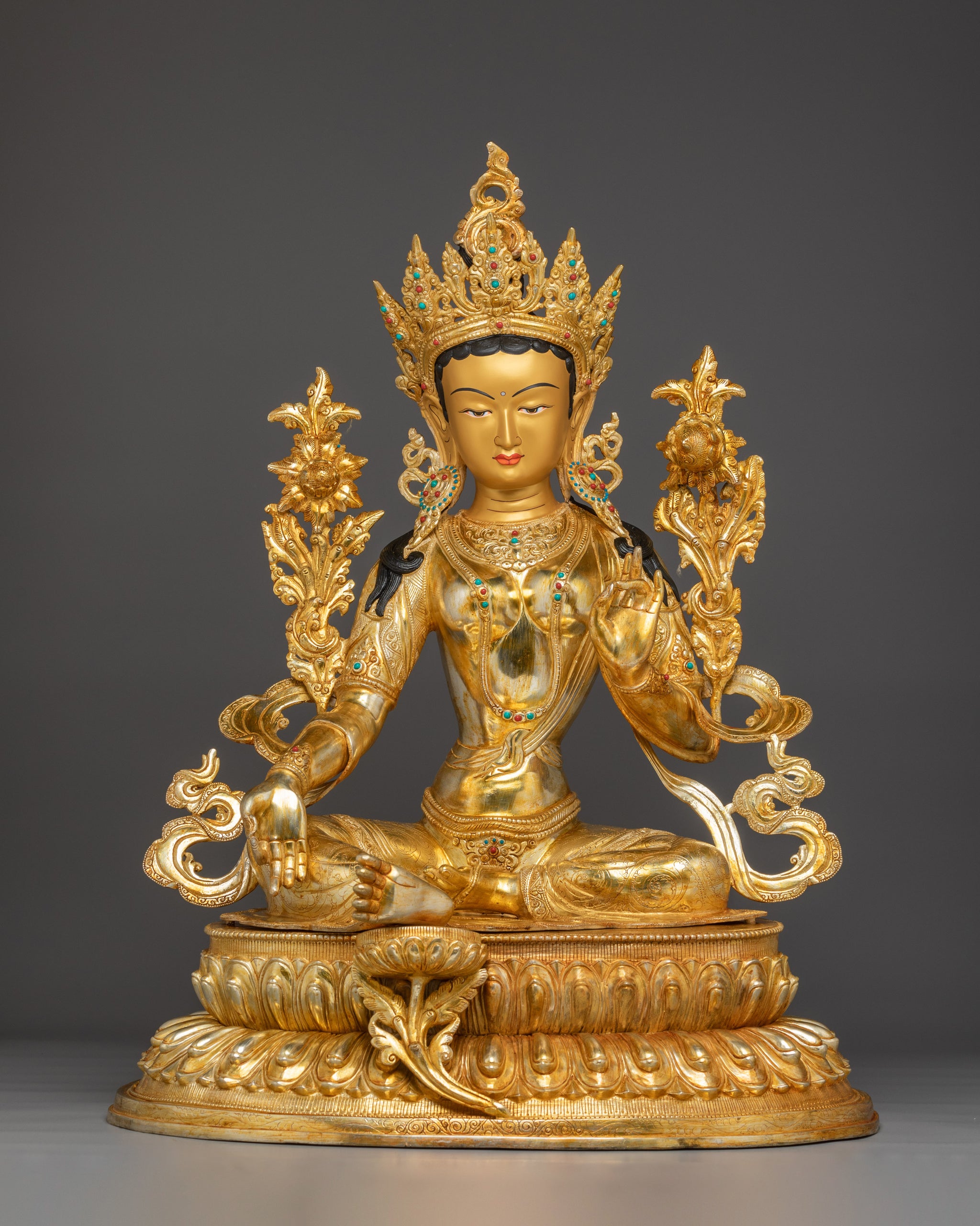 Divine Bodhisattva Green Tara Golden Statue for Meditation and Decor