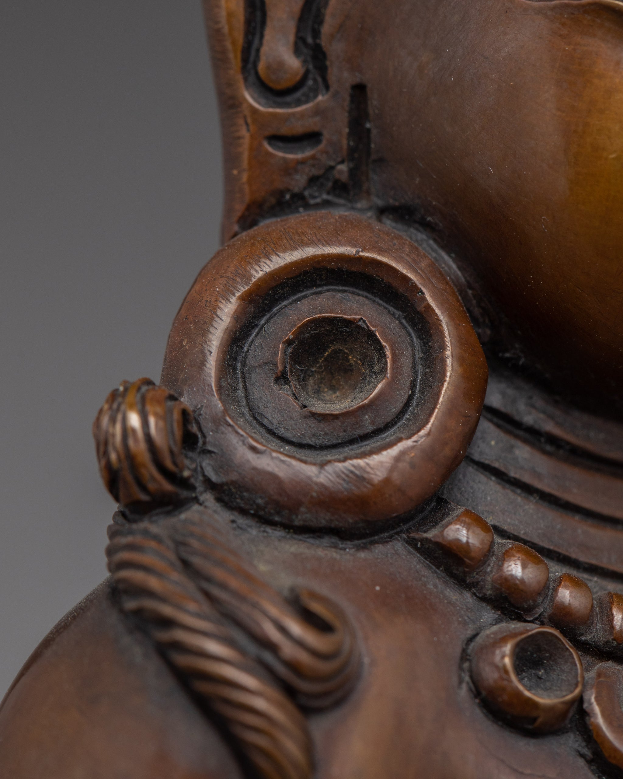 Vajrayogini is stunning. The details are amazing. It's easy to make out her facial expressions, skulls, feet, and the ring of fire around her. You can tell she's handmade. There is a consecration hole in her back.